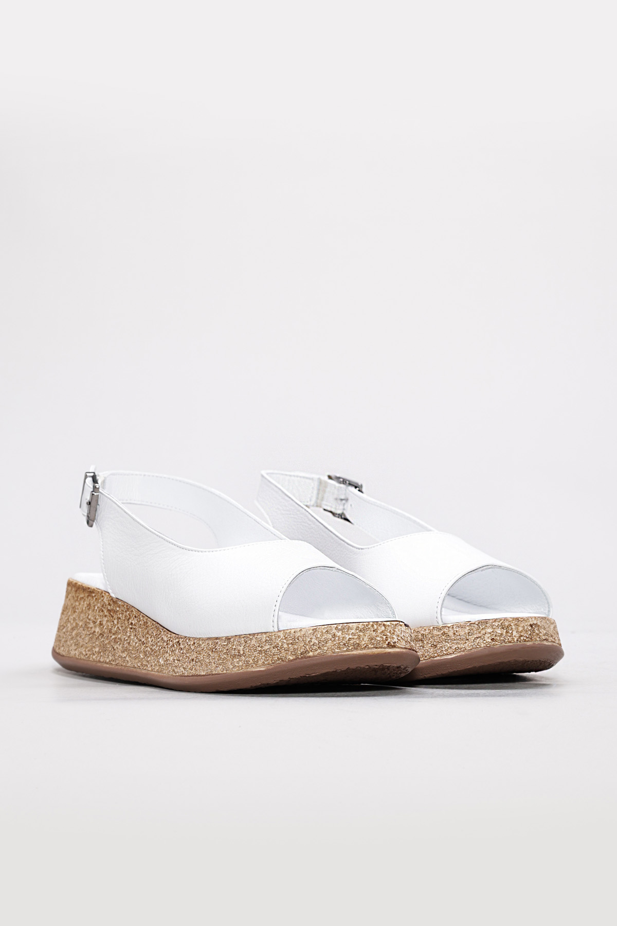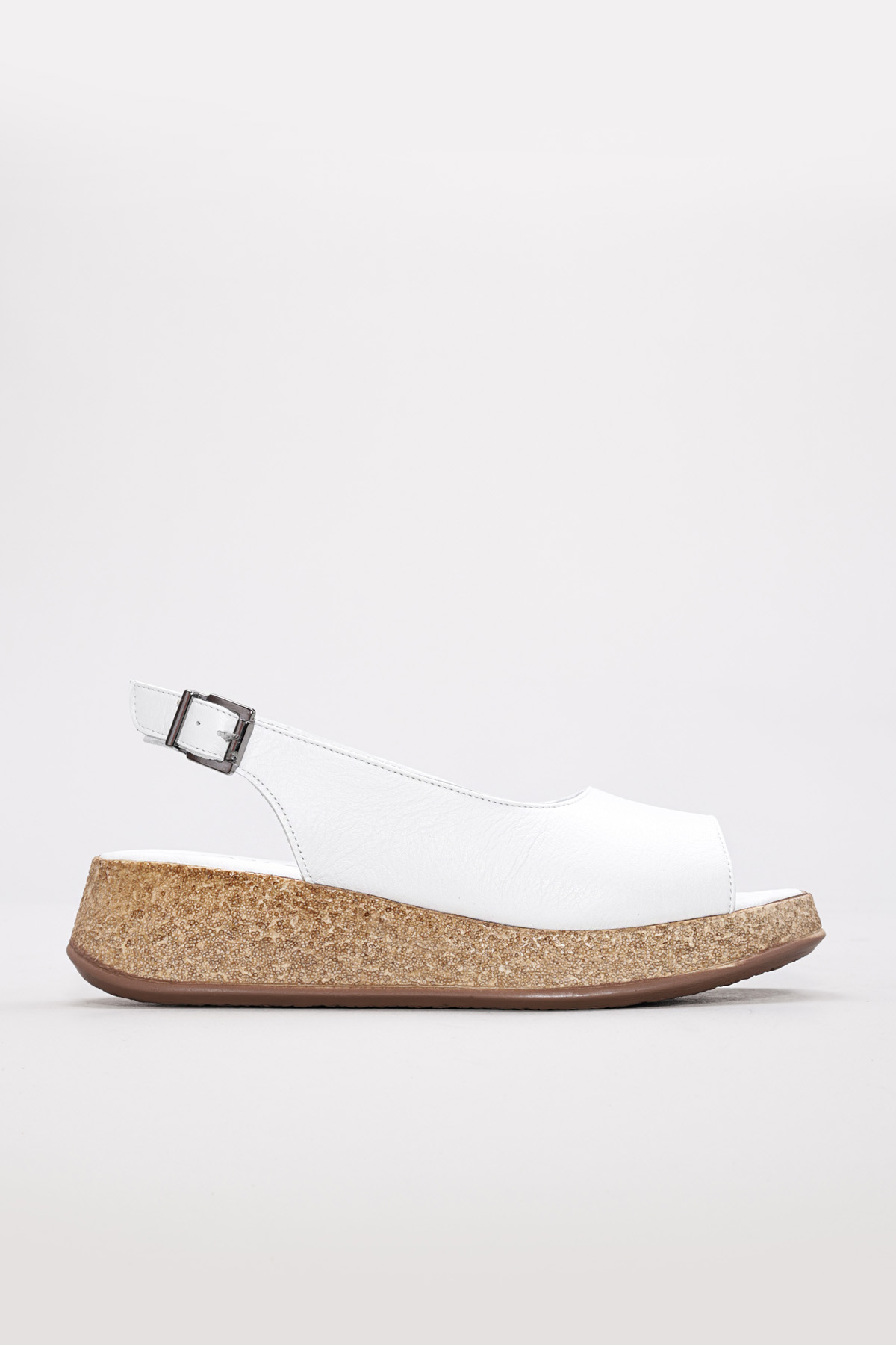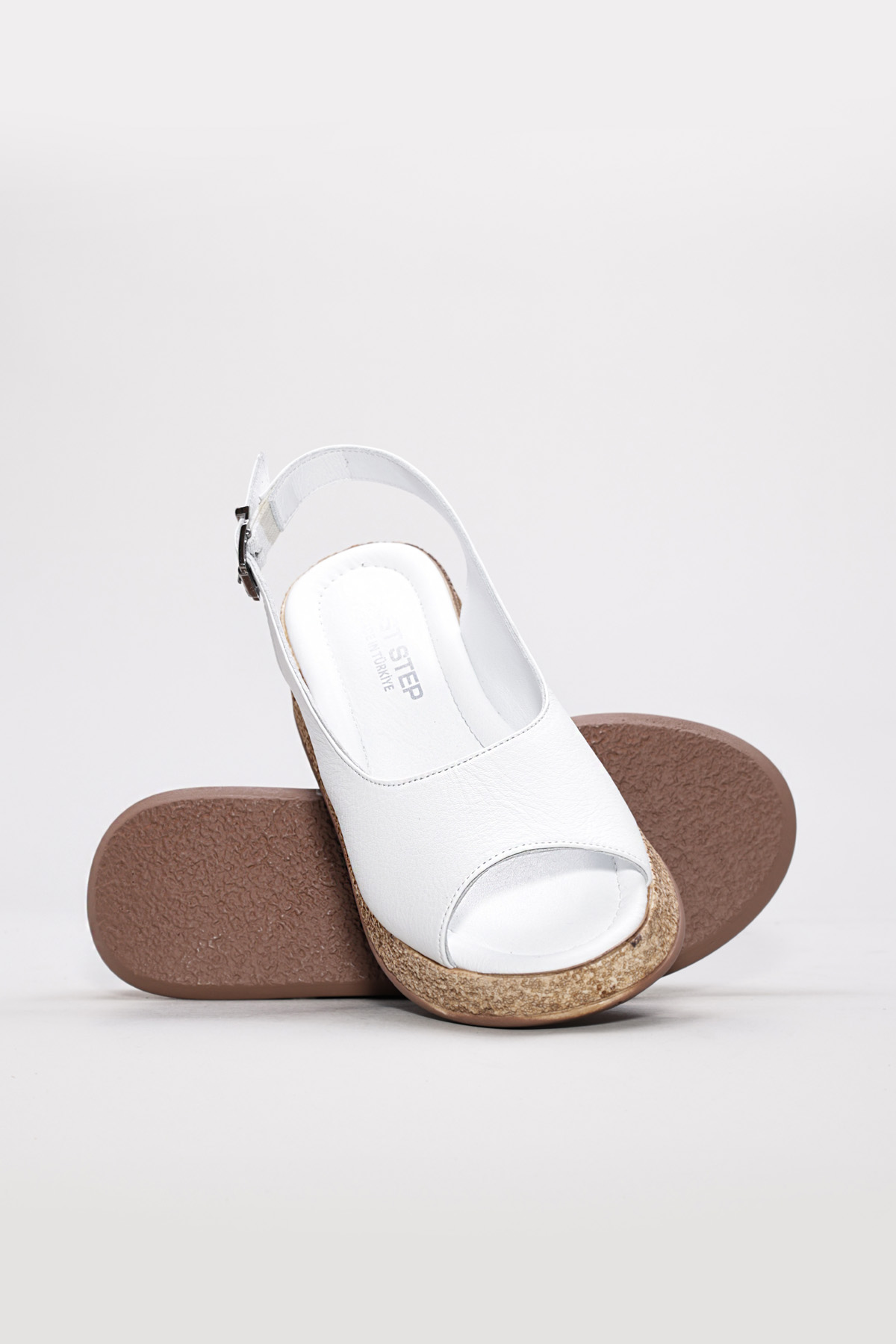 Tugerdi Beyaz Hakiki Deri Termo Taban Dolgu Topuklu Kadın Sandalet TG0922726115729