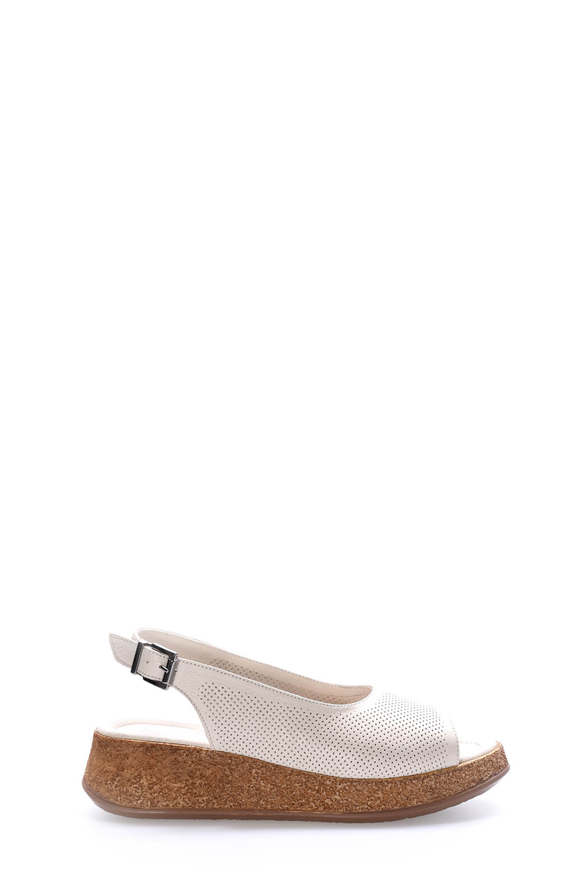 Tugerdi Bej Hakiki Deri Termo Taban Kemerli Kadın Sandalet TG09227261153601