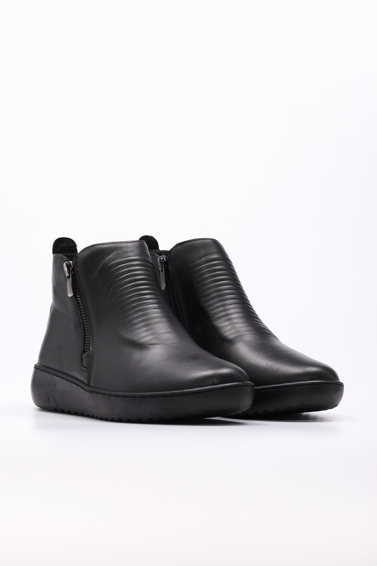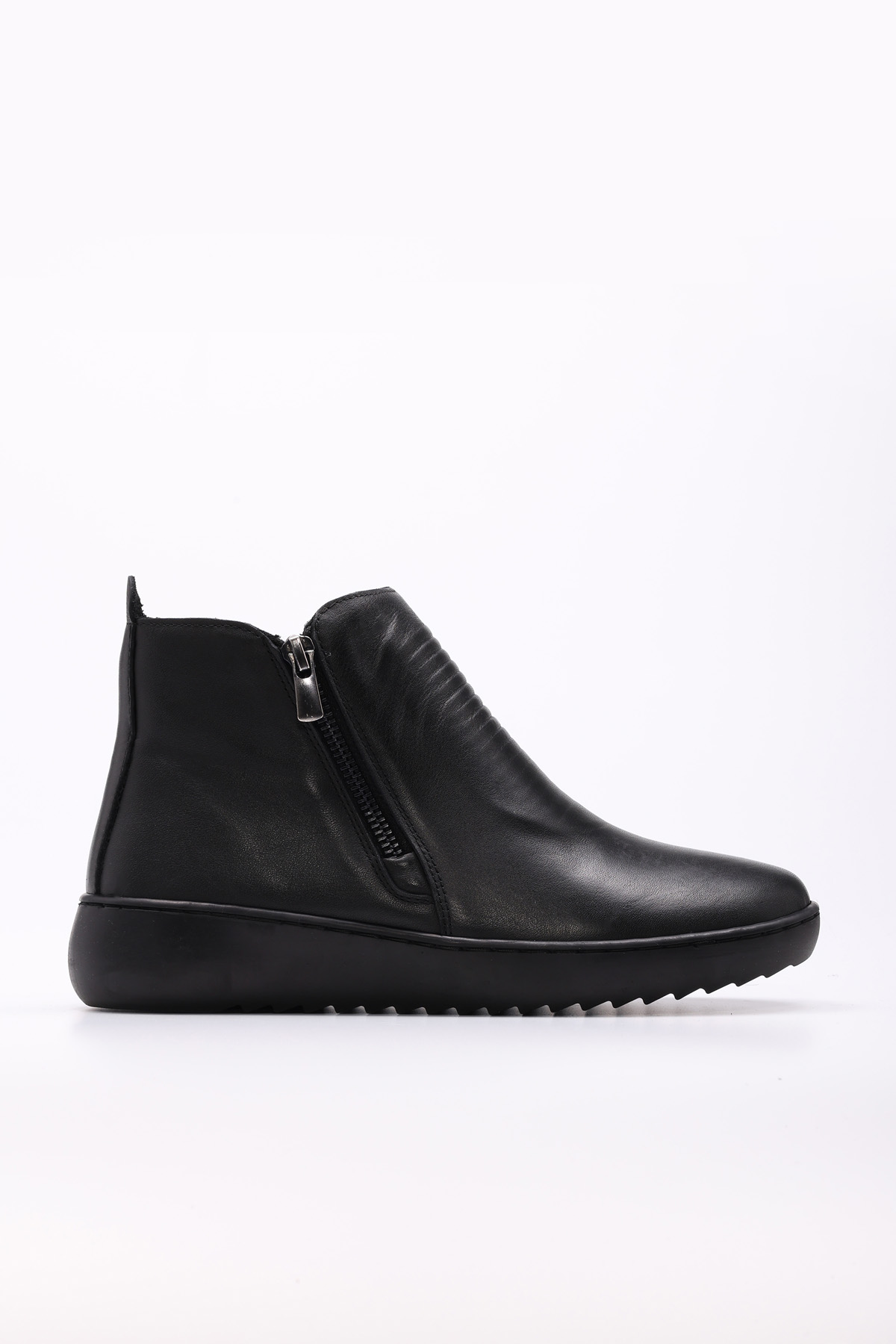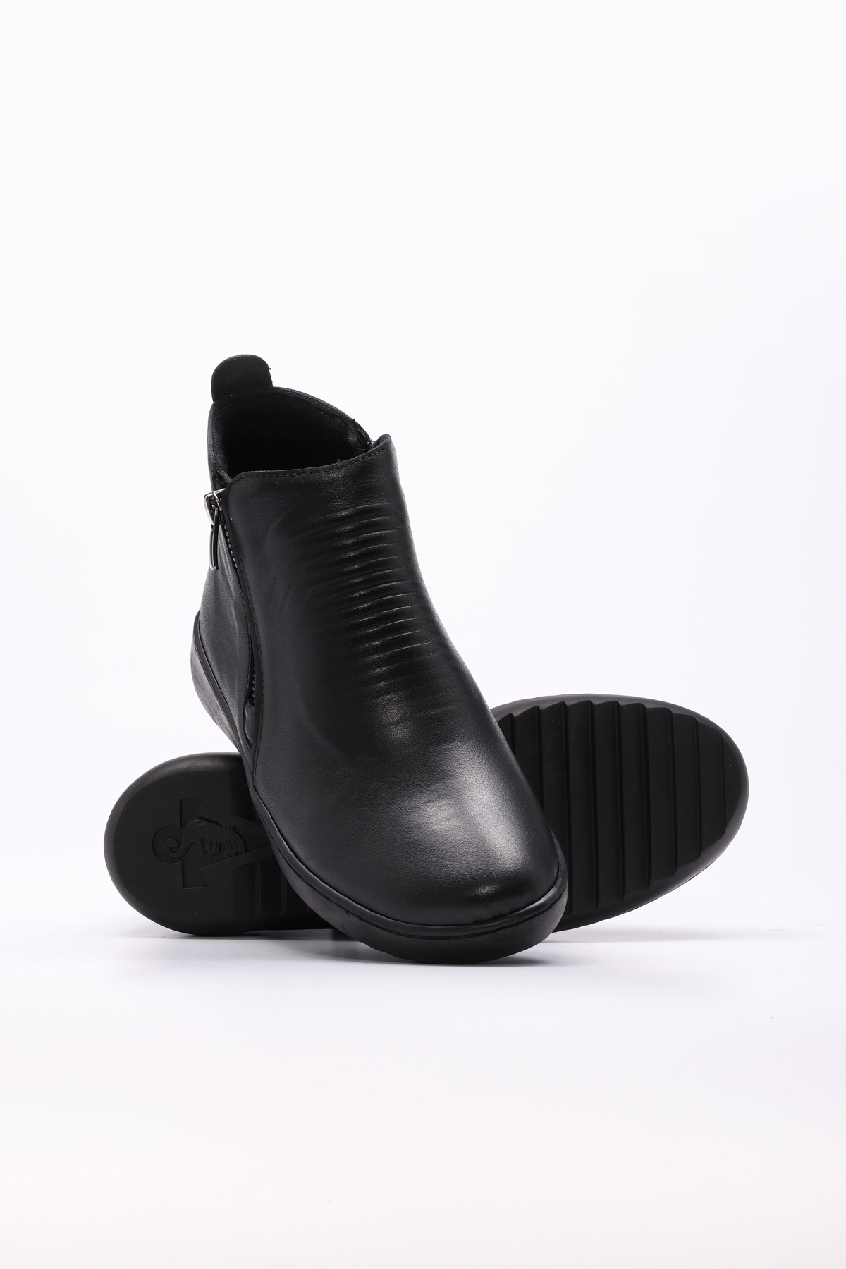 • Tugerdi Siyah Hakiki Deri Hafif Taban Fermuarlı Kaliteli Klasik Kadın Bot TG09864192611615