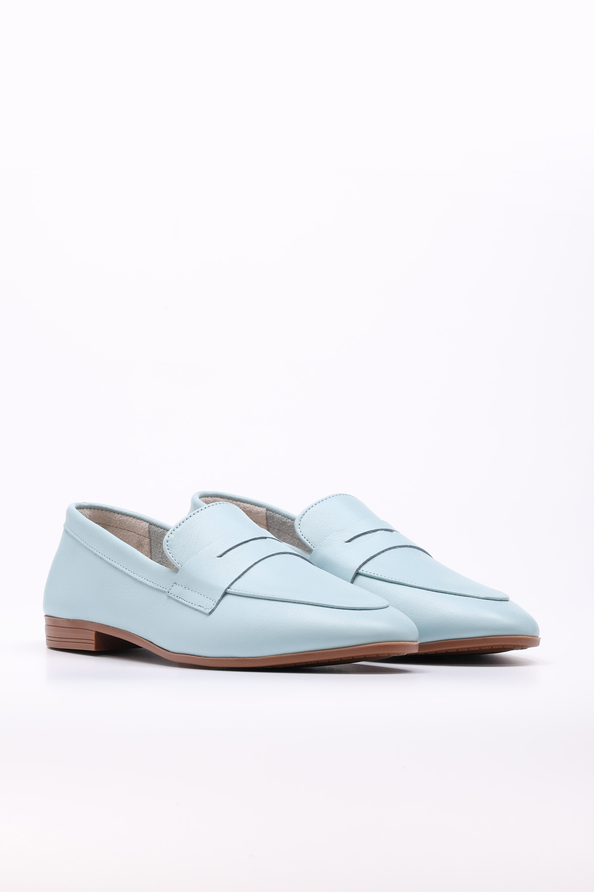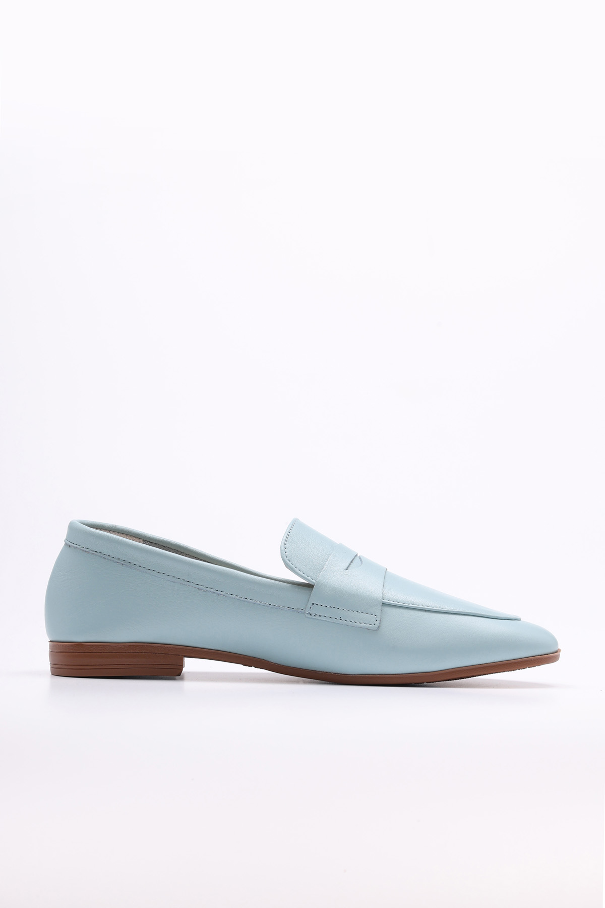 • Tugerdi Mavi Hakiki Deri Tipu Taban Kaiteli Kadın Babet Ayakkabı TG094192615151626