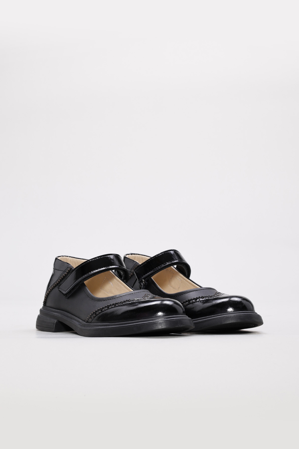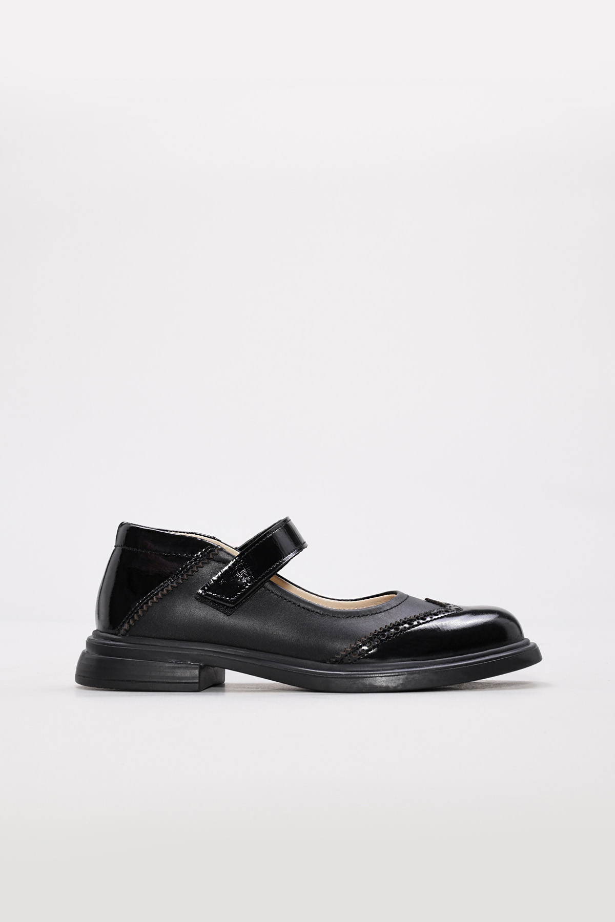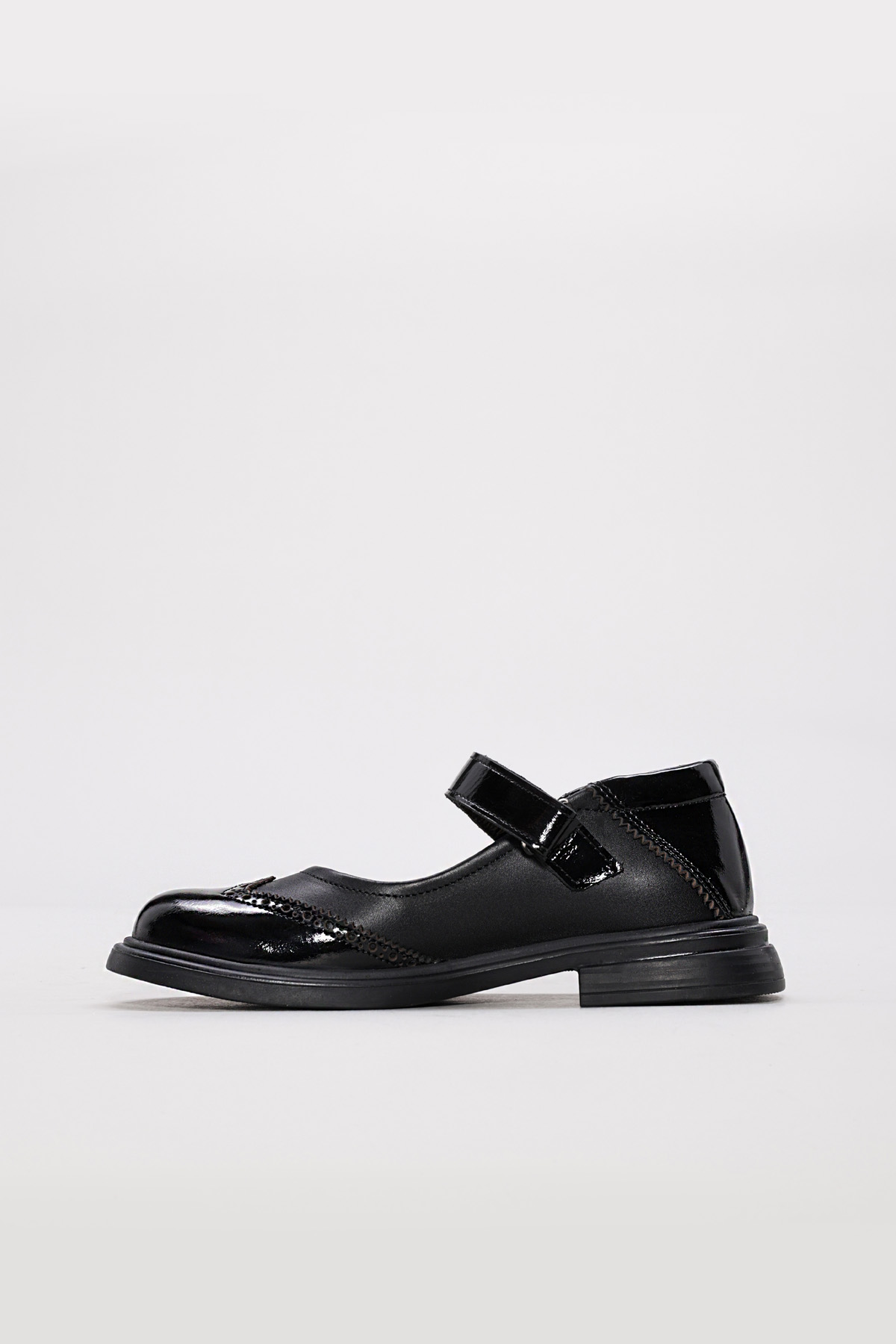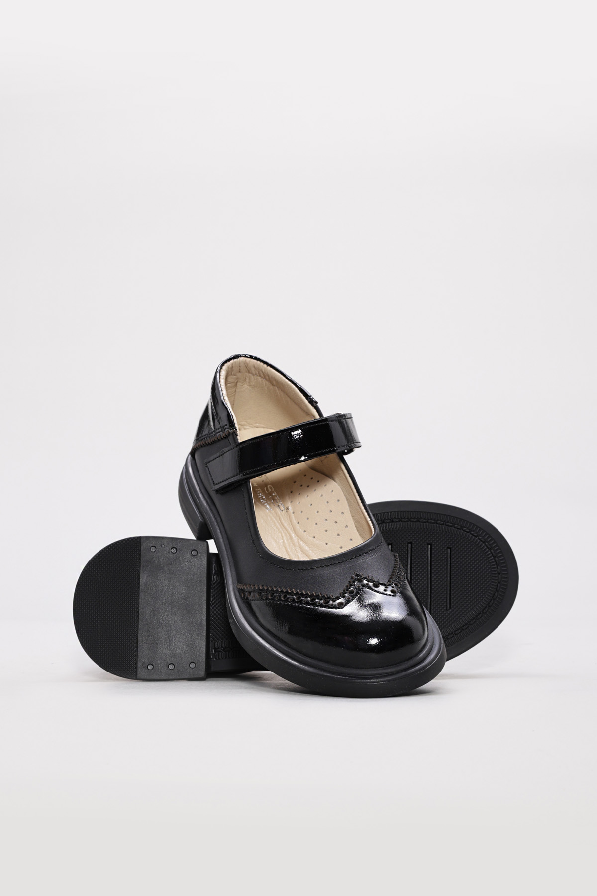 Tugerdi İçi Dışı Hakiki Rugan Deri Siyah Kız Çocuk Casual Ayakkabı AH08157241139