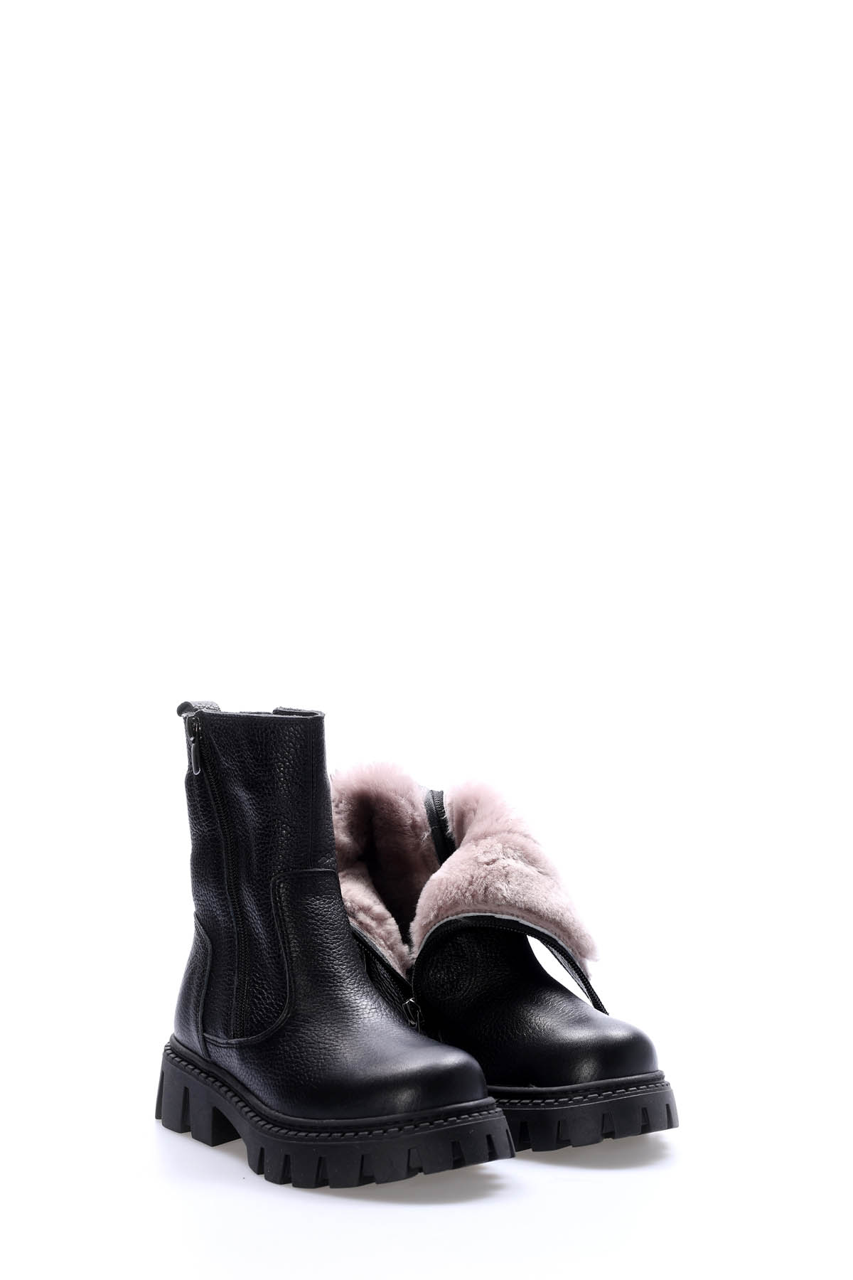 • Tugerdi İçi Kürklü Dışı Hakiki Deri Siyah Unisex Çocuk Kalın Taban Bot AH08612116116447