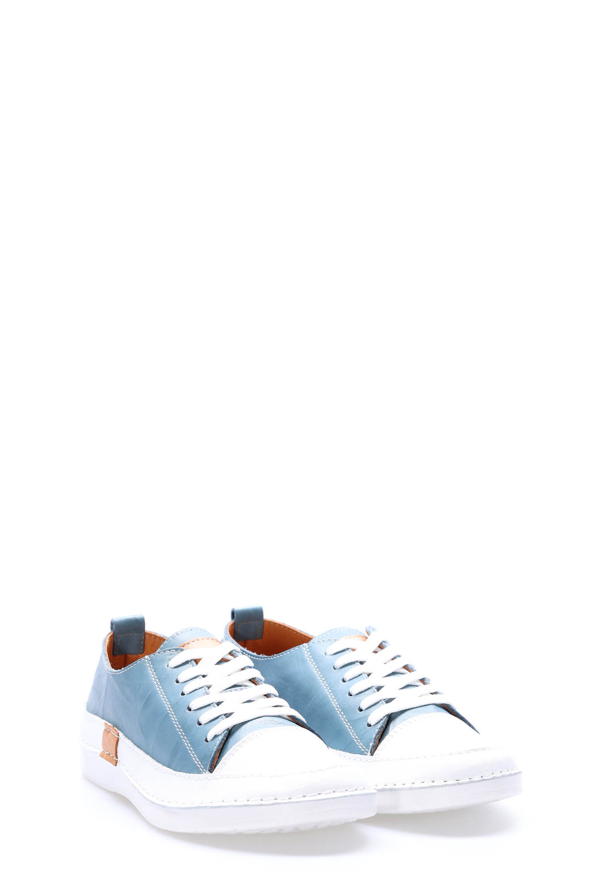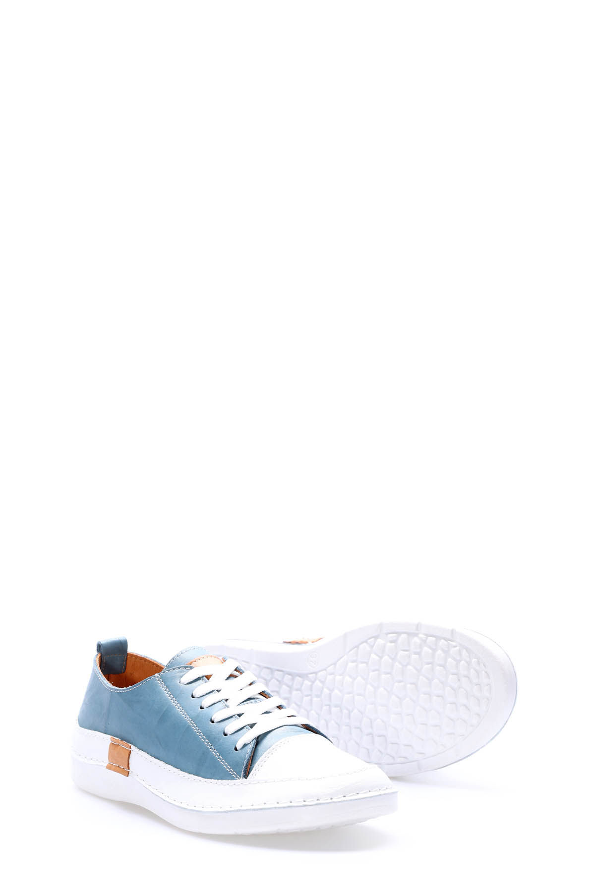 Tugerdi Mavi Kot Hakiki Deri Bağcıklı Hafif Taban Kadın Casual Ayakkabı TG099722618670