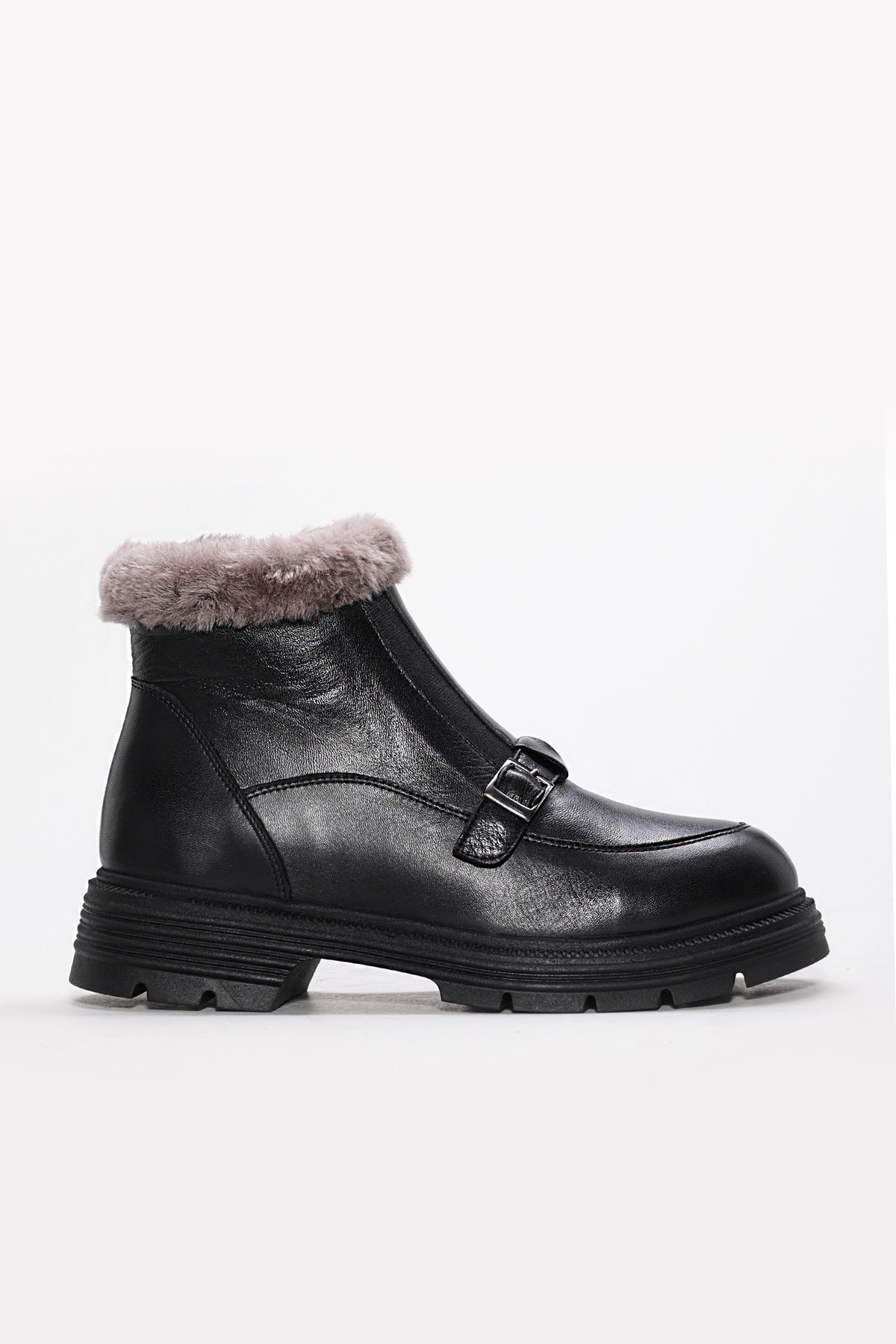 Tugerdi Siyah İçi Kürklü Hakiki Deri Fermuarlı Termo Taban Kaliteli Kadın Bot TG0921711261781344