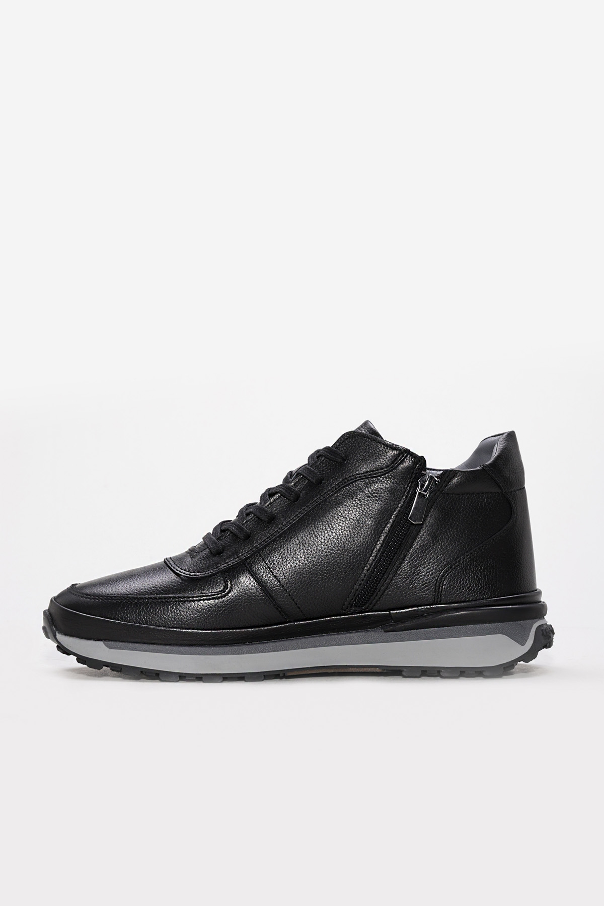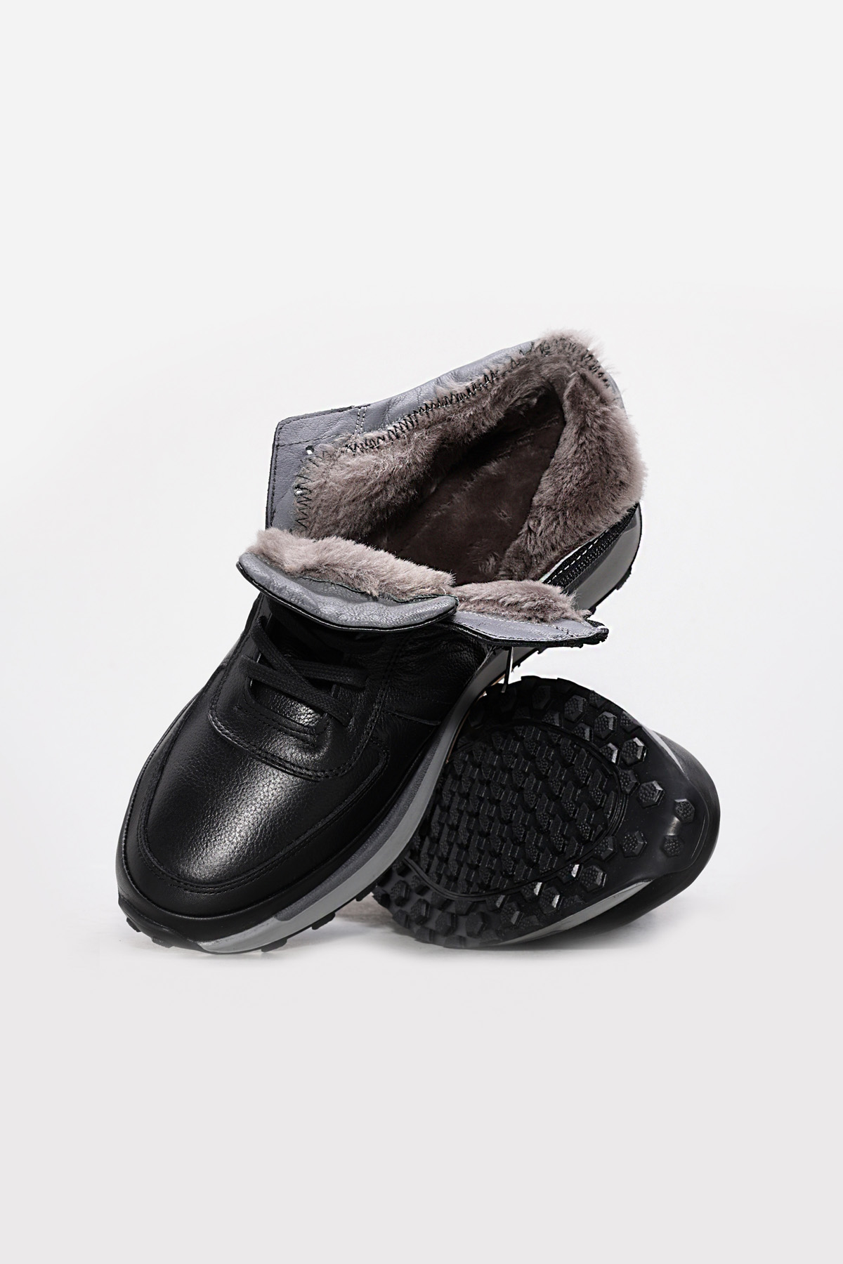 Tugerdi Siyah Hakiki Deri Kürklü Kauçuk Taban Fermuarlı Bağcıklı Spor Erkok Bot TG0960011131739