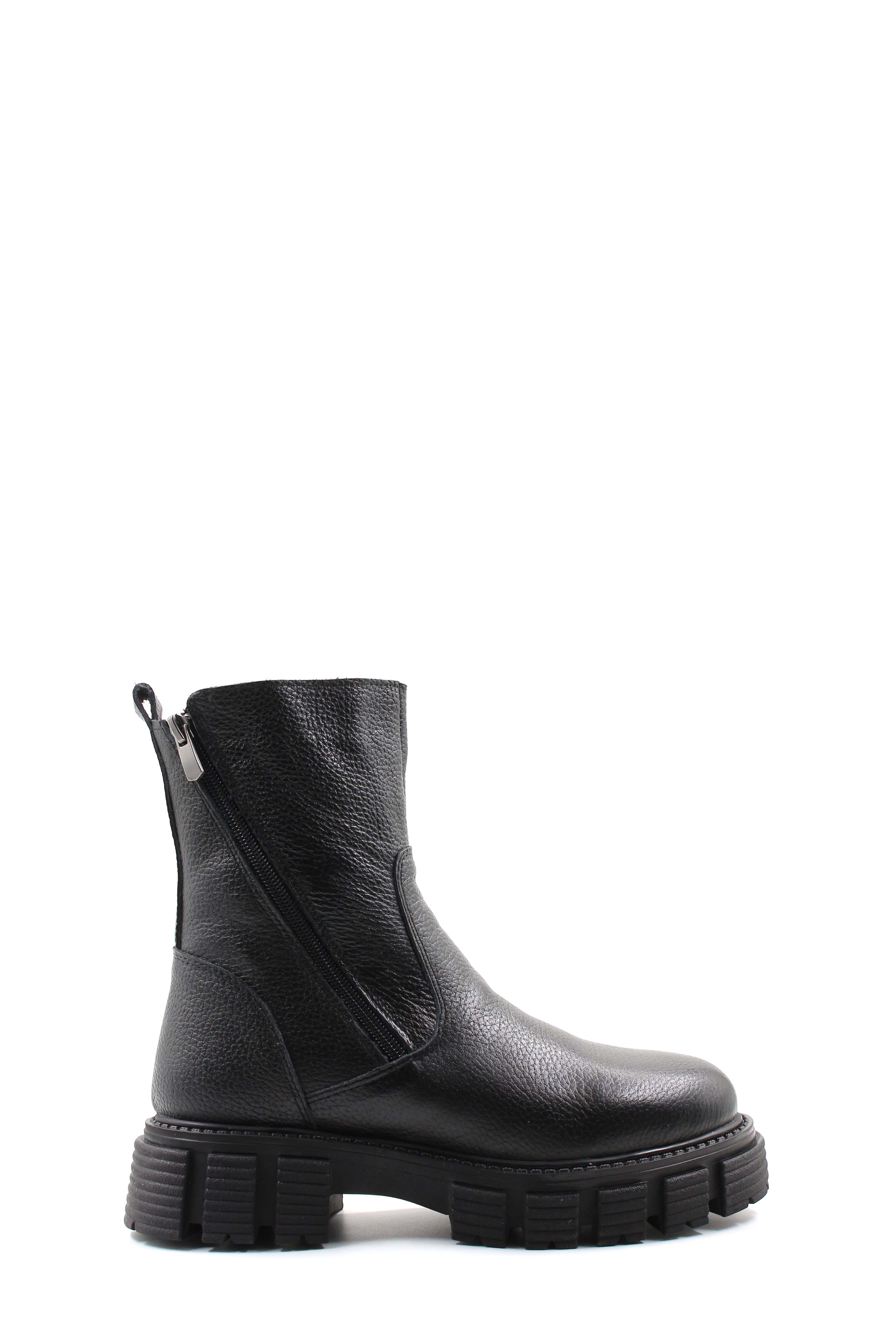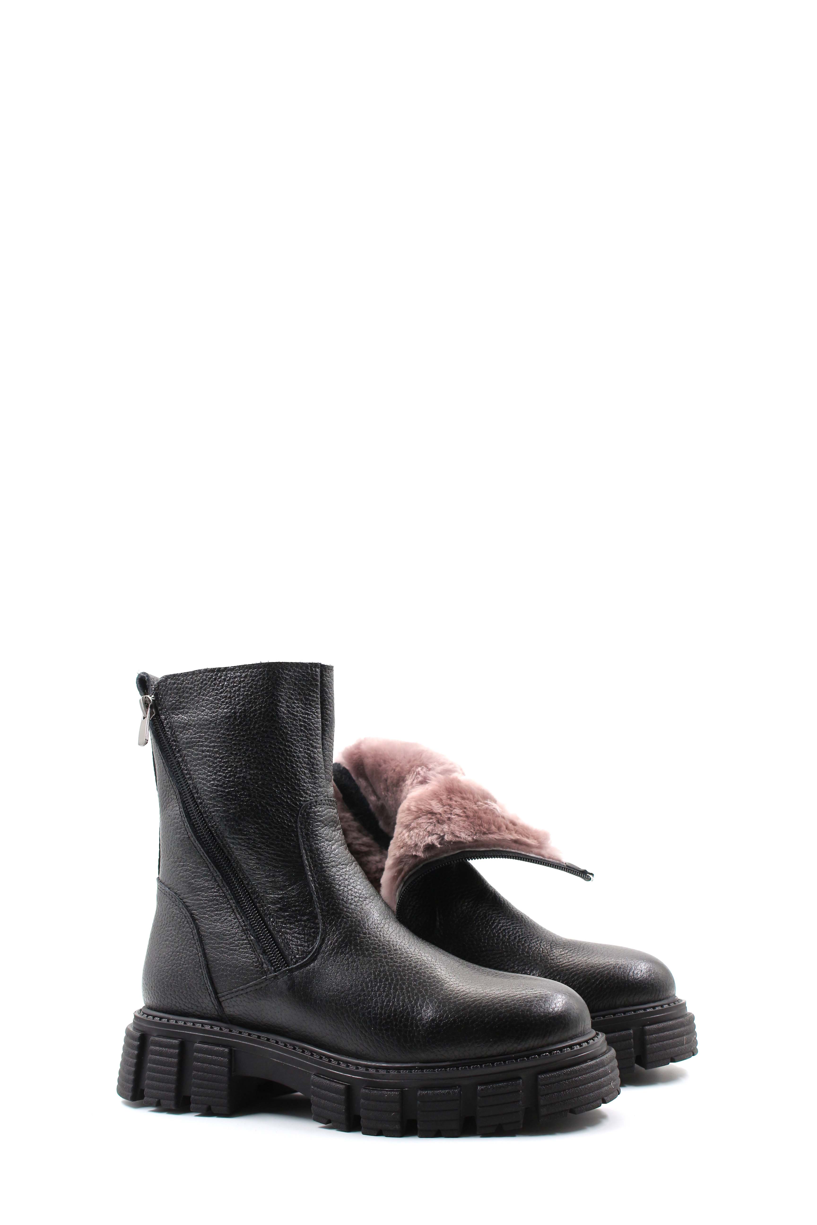 Tugerdi Siyah Floter İçi Kürklü Hakiki Deri Fermuarlı Kauçuk Taban Kadın Bot TG097101126162294