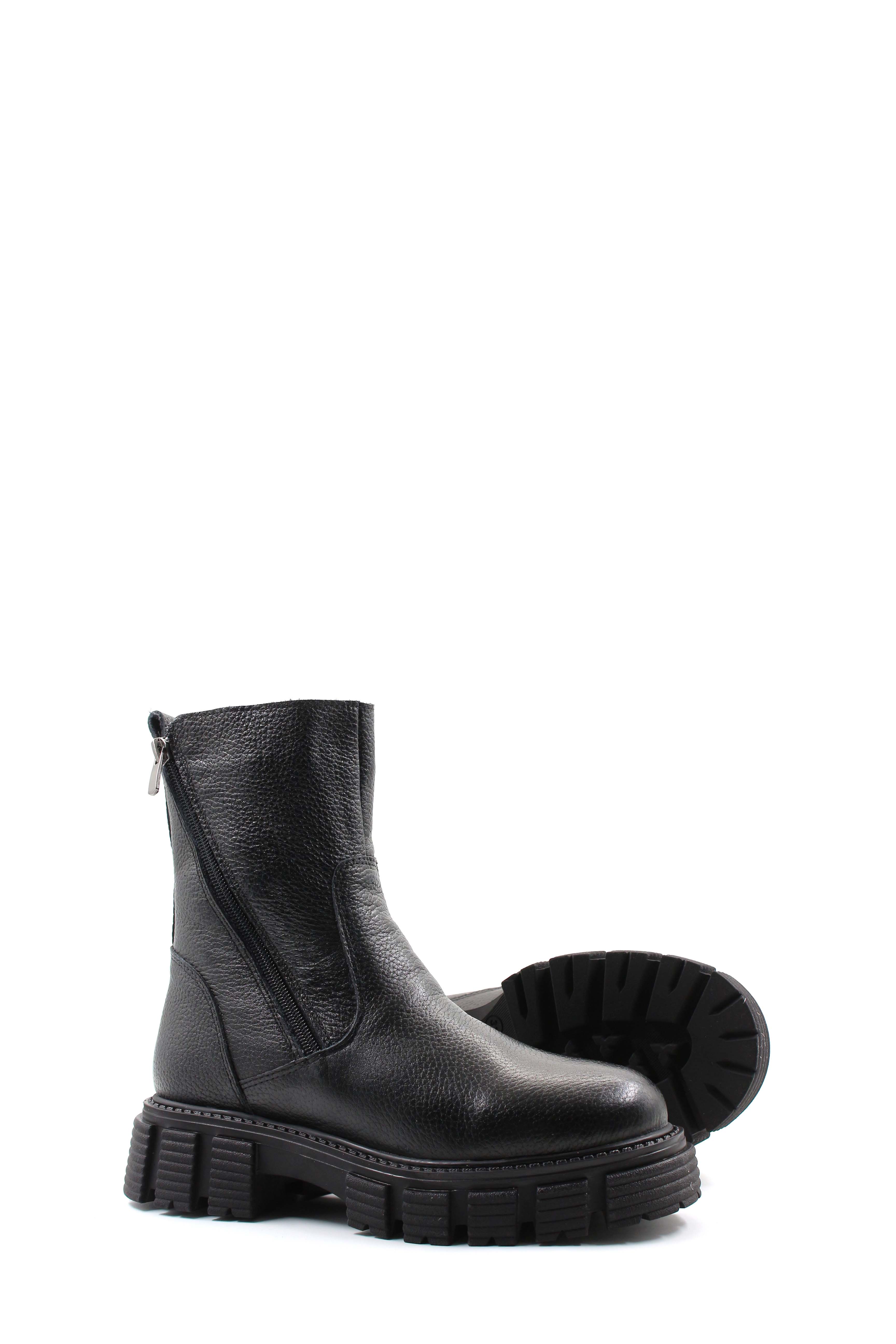 • Tugerdi Siyah Floter İçi Kürklü Hakiki Deri Fermuarlı Kauçuk Taban Kadın Bot TG097101126162294