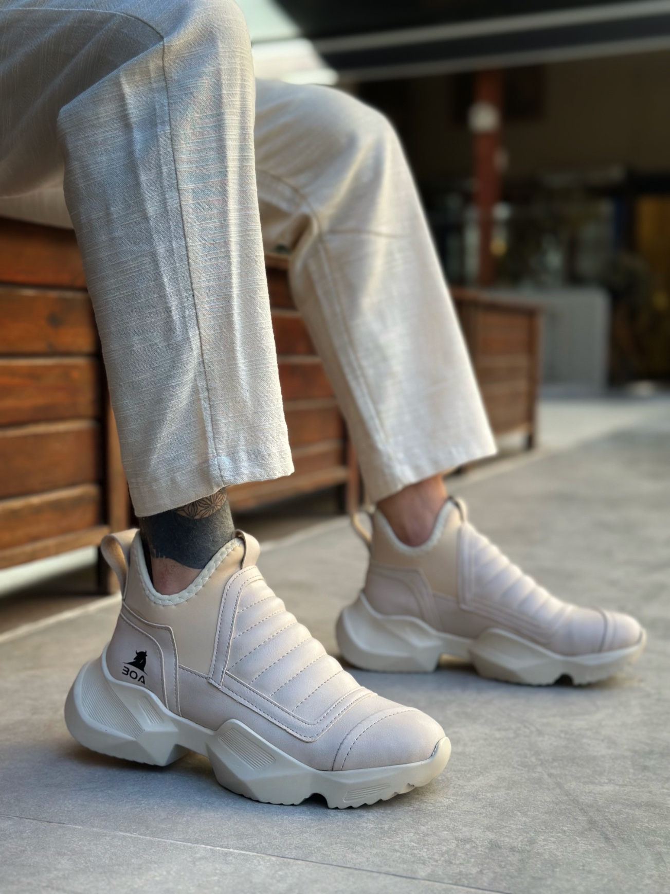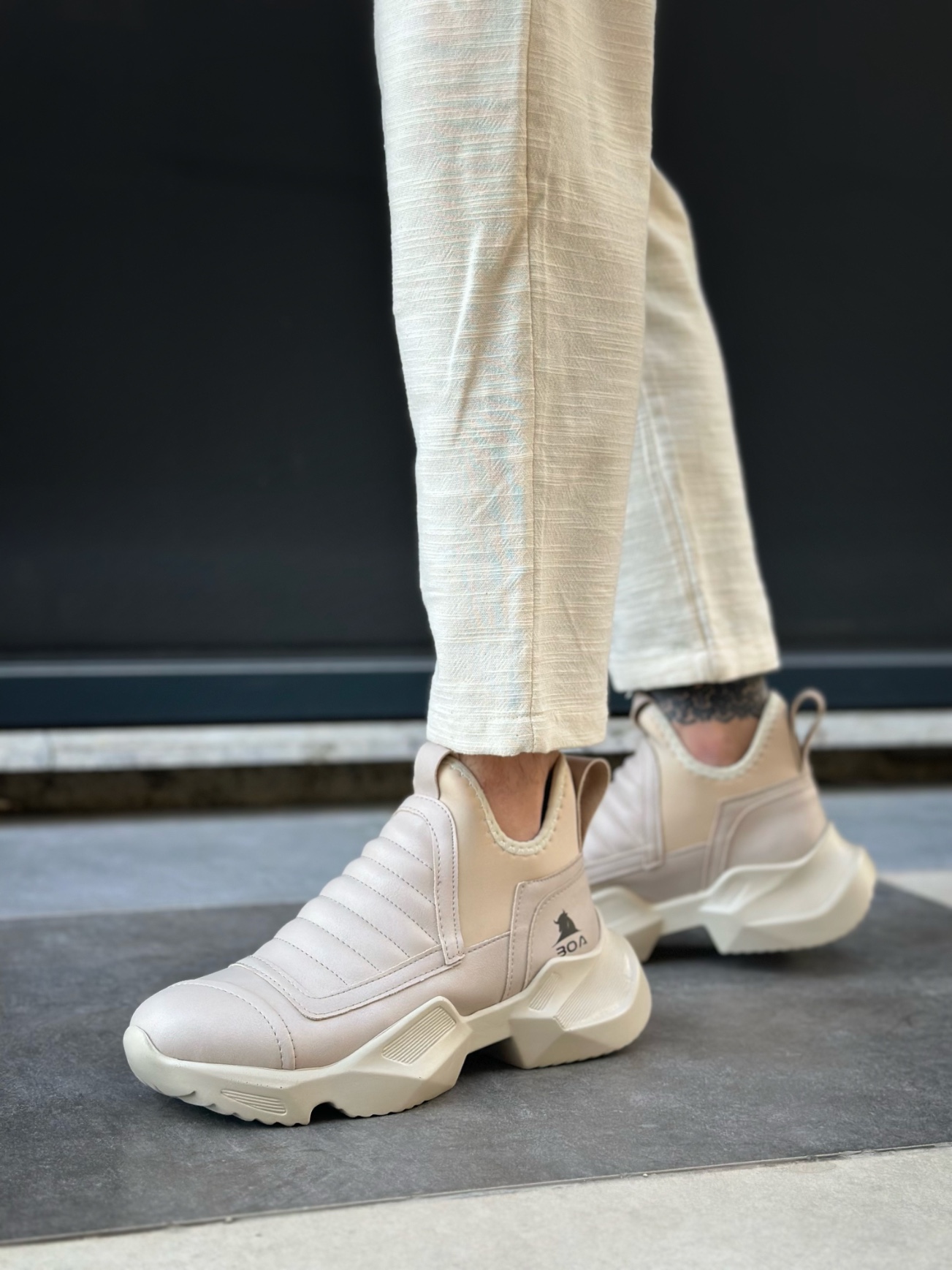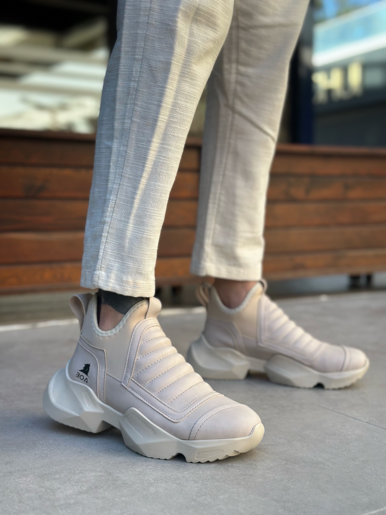 Tugerdi Krem Bağcıksız Rahat Yüksek Taban Tarz Spor Yarım Bilek Erkek Bot TGE230551