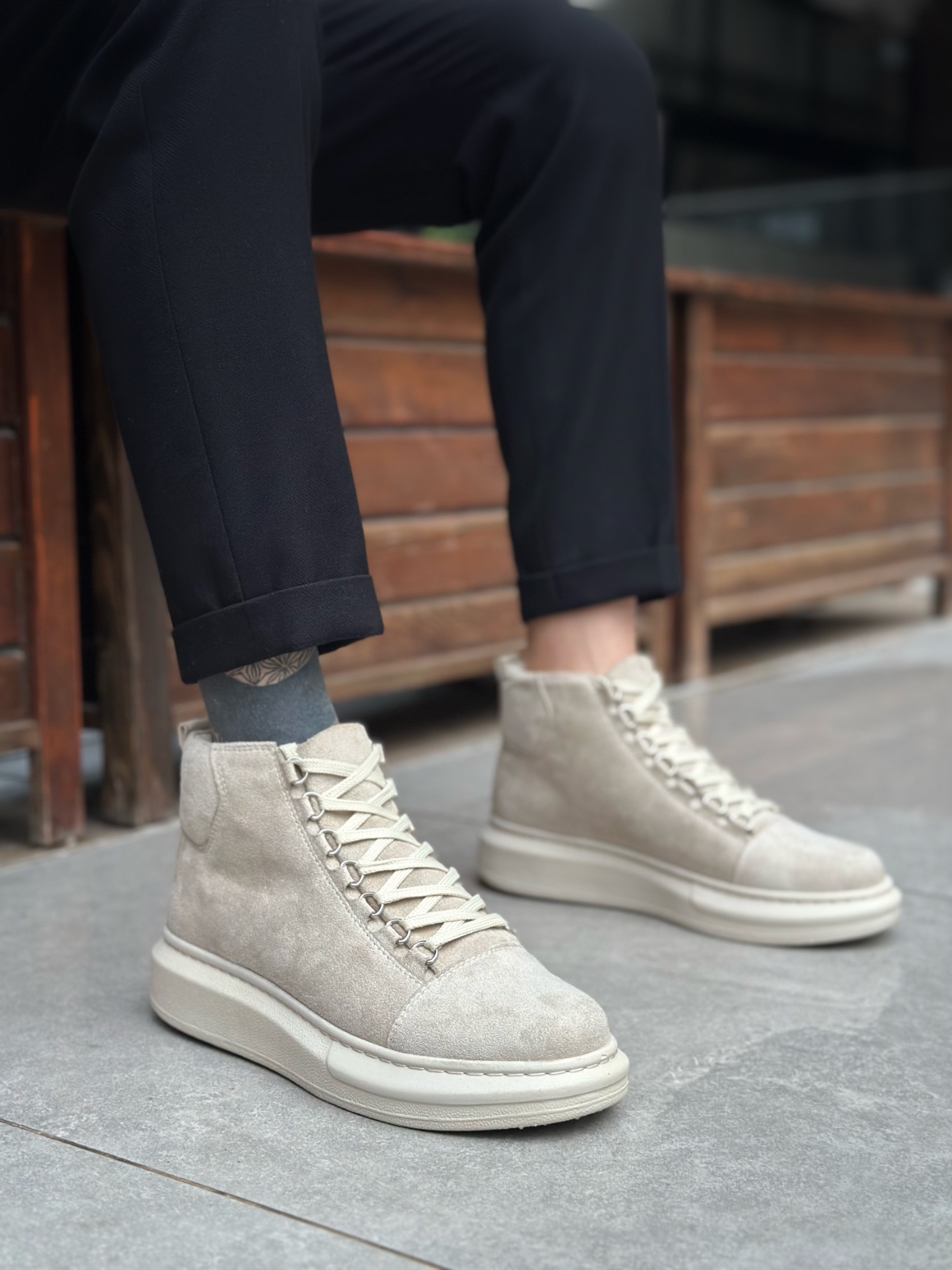 • Tugerdi Bej Süet Bağcıklı Yüksek Hafif Taban Tarz Erkek Spor Bot TGE230863