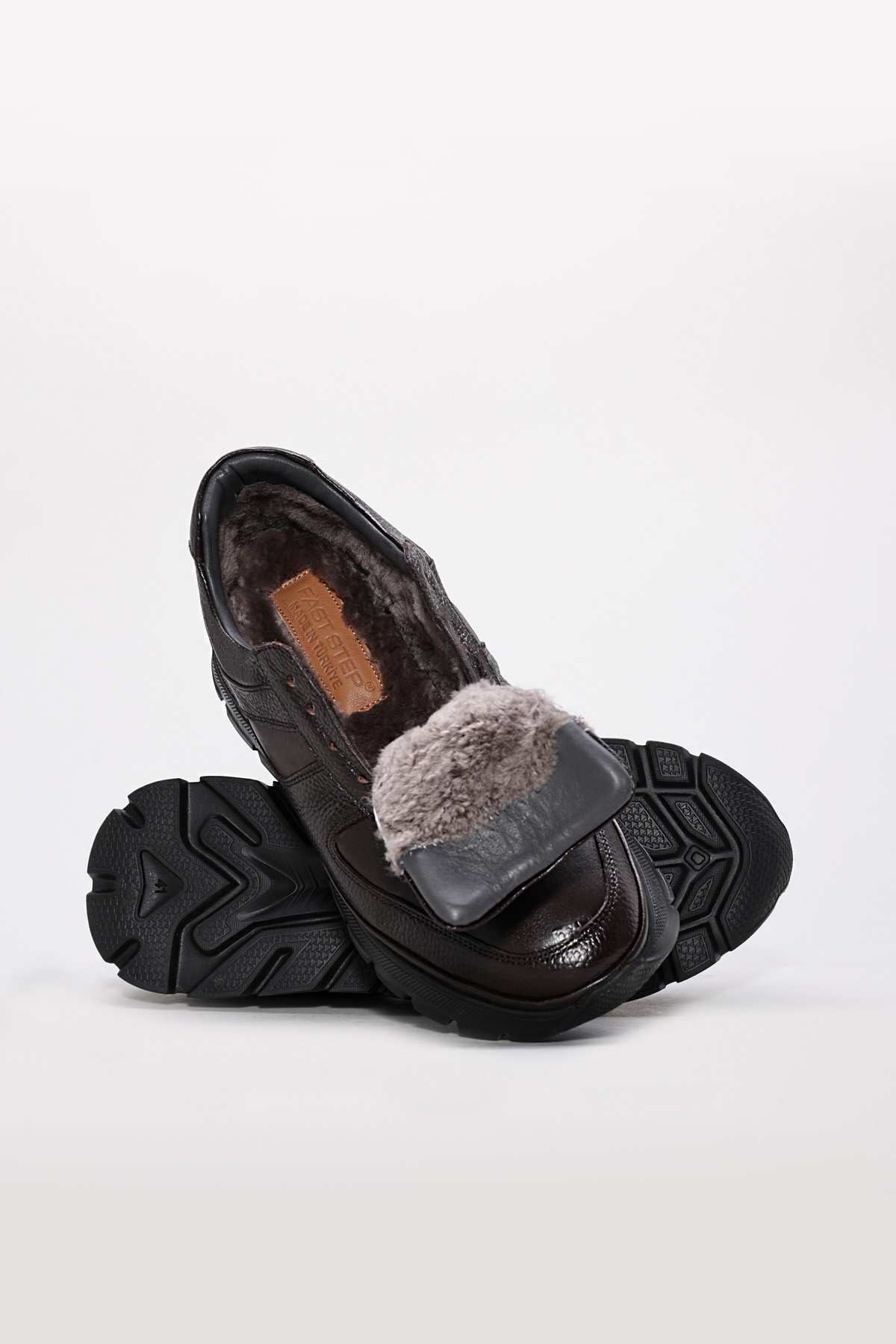 • Tugerdi Kahve Hakiki Deri Kürklü Bağcıklı Kauçuk Taban Günlük Erkek Ayakkabı TG09214111315438