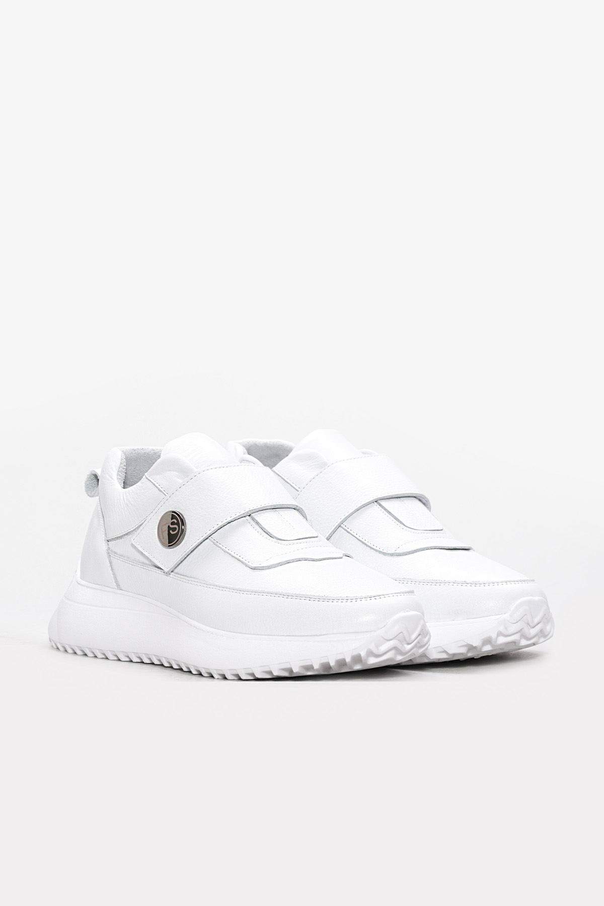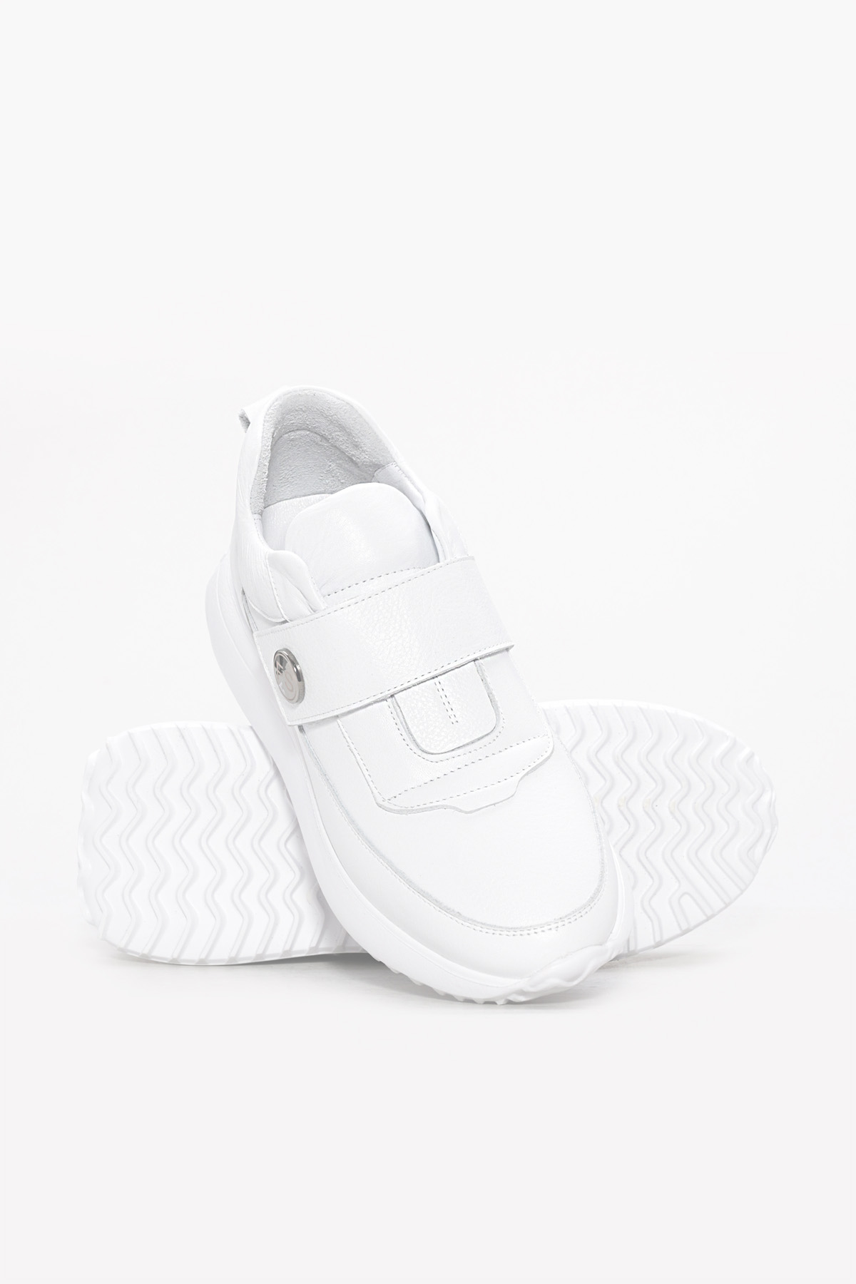 Tugerdi Beyaz İçi Dışı Hakiki Deri Cırtlı Hafif Taban Günlük Kadın Ayakkabı TG0913626191420