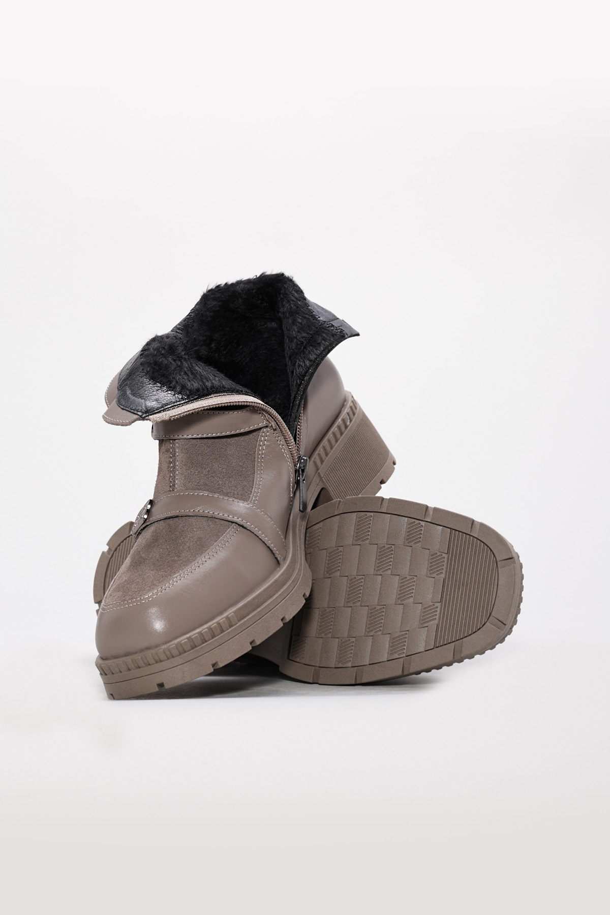 • Tugerdi Vizon Süet Hakiki Deri Fermuarlı Termo Taban Kaliteli Kadın Bot TG09233192611011