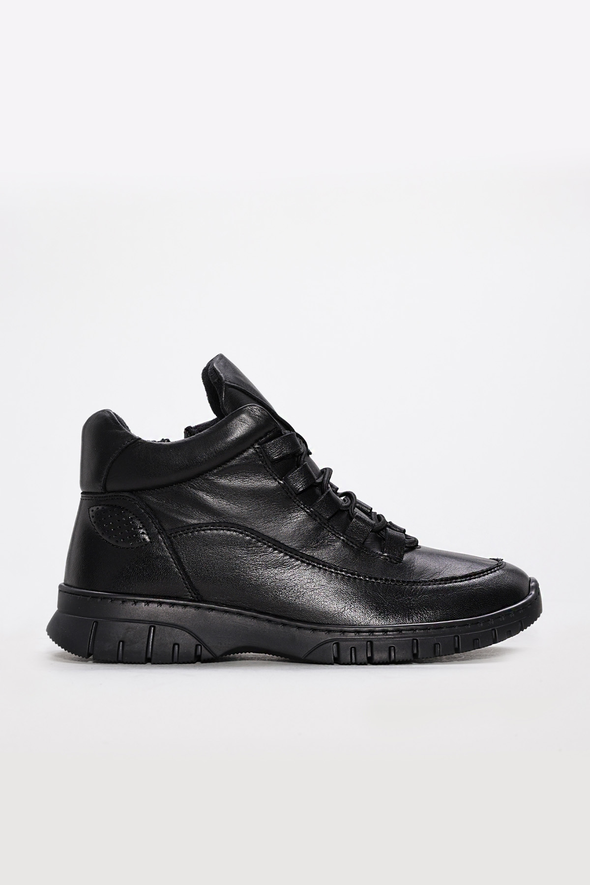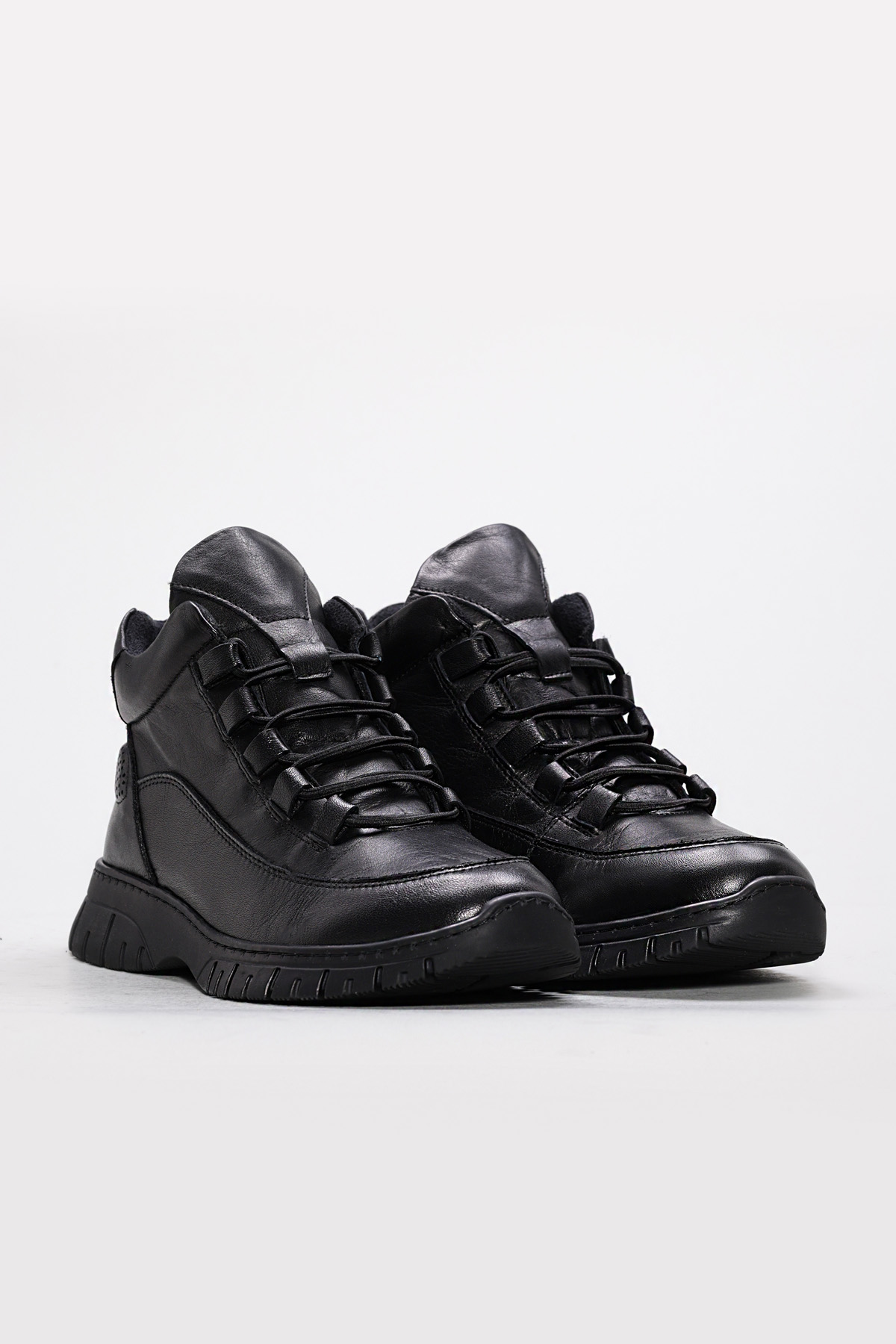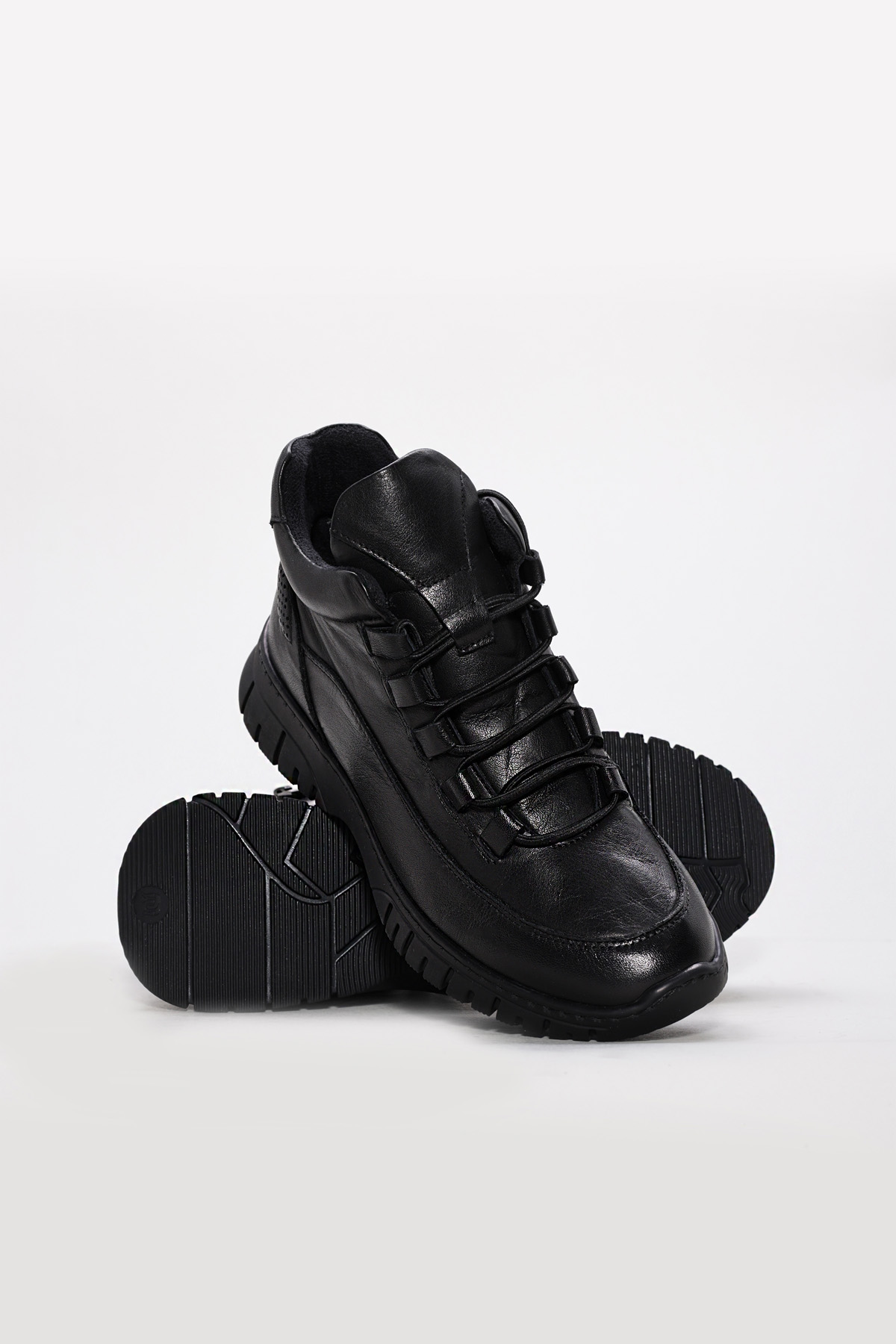 • Tugerdi Siyah İçi Dışı Hakiki Deri Kauçuk Taban Bağcıklı Kadın Spor Bot TG0975719261251014