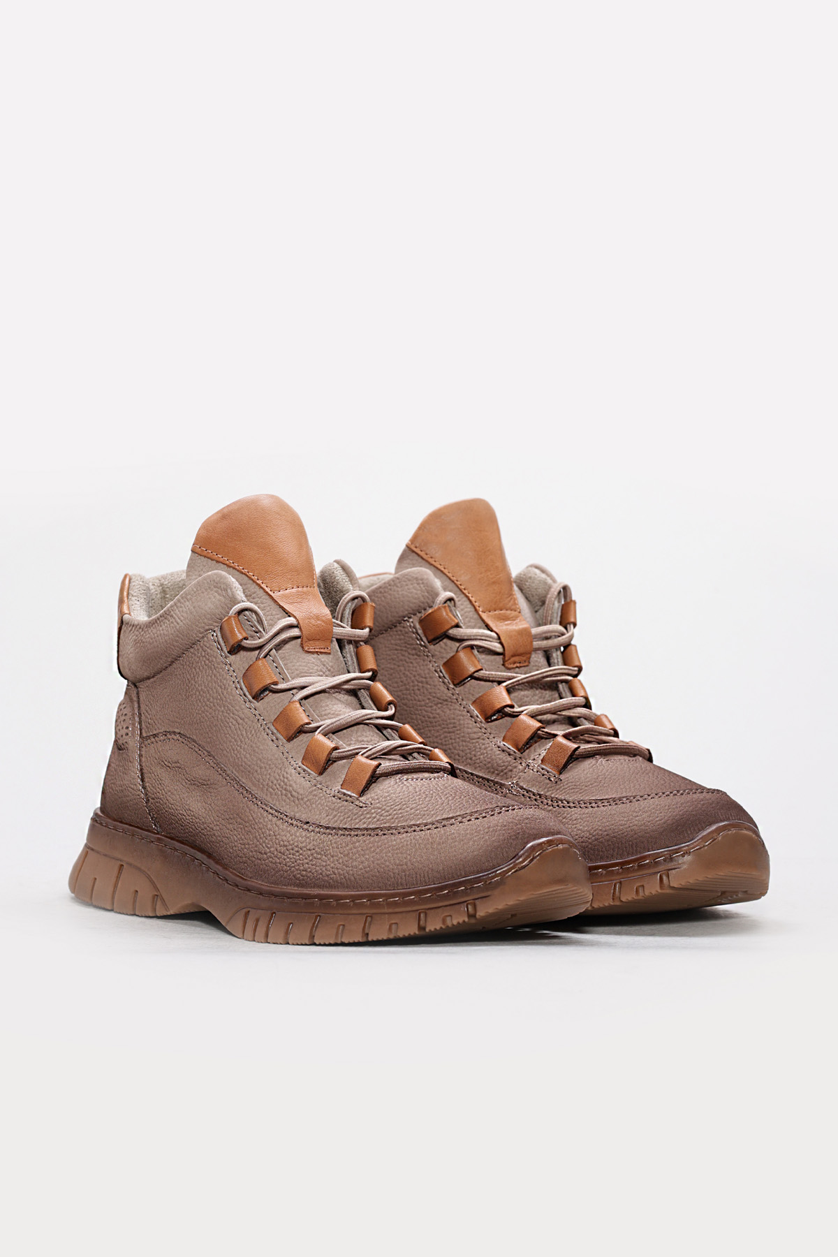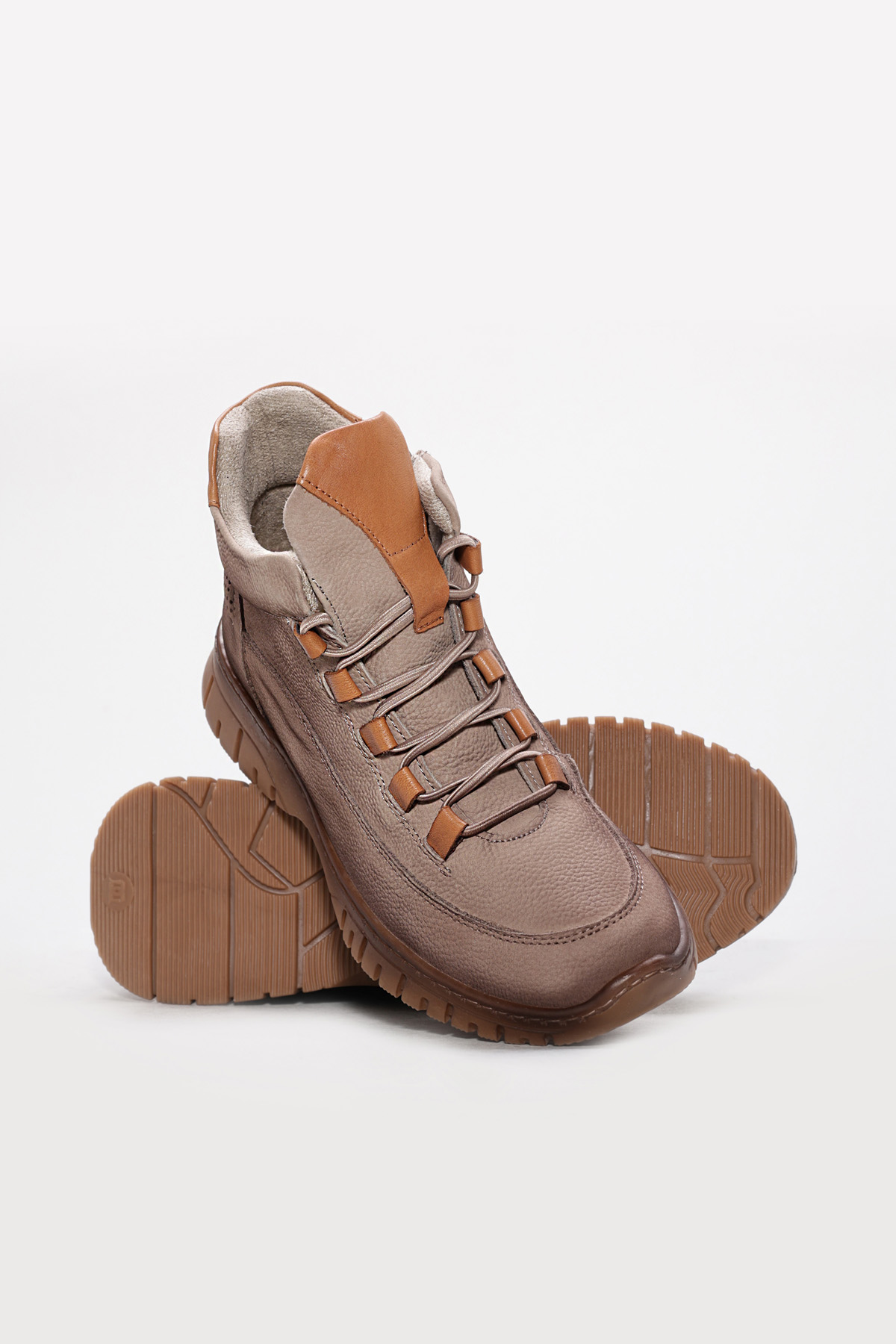 • Tugerdi Vizon Nubuk Hakiki Deri Bağcıklı Fermuarlı Kauçuk Taban Kadın Spor Bot TG0975719261251014