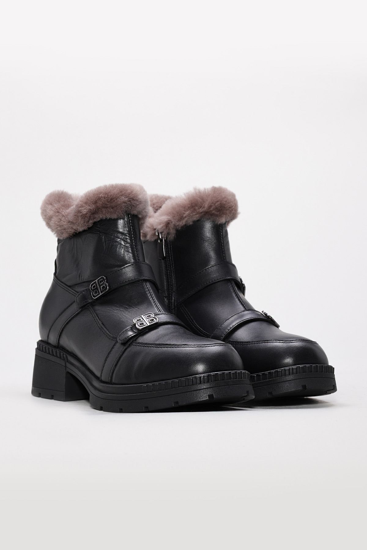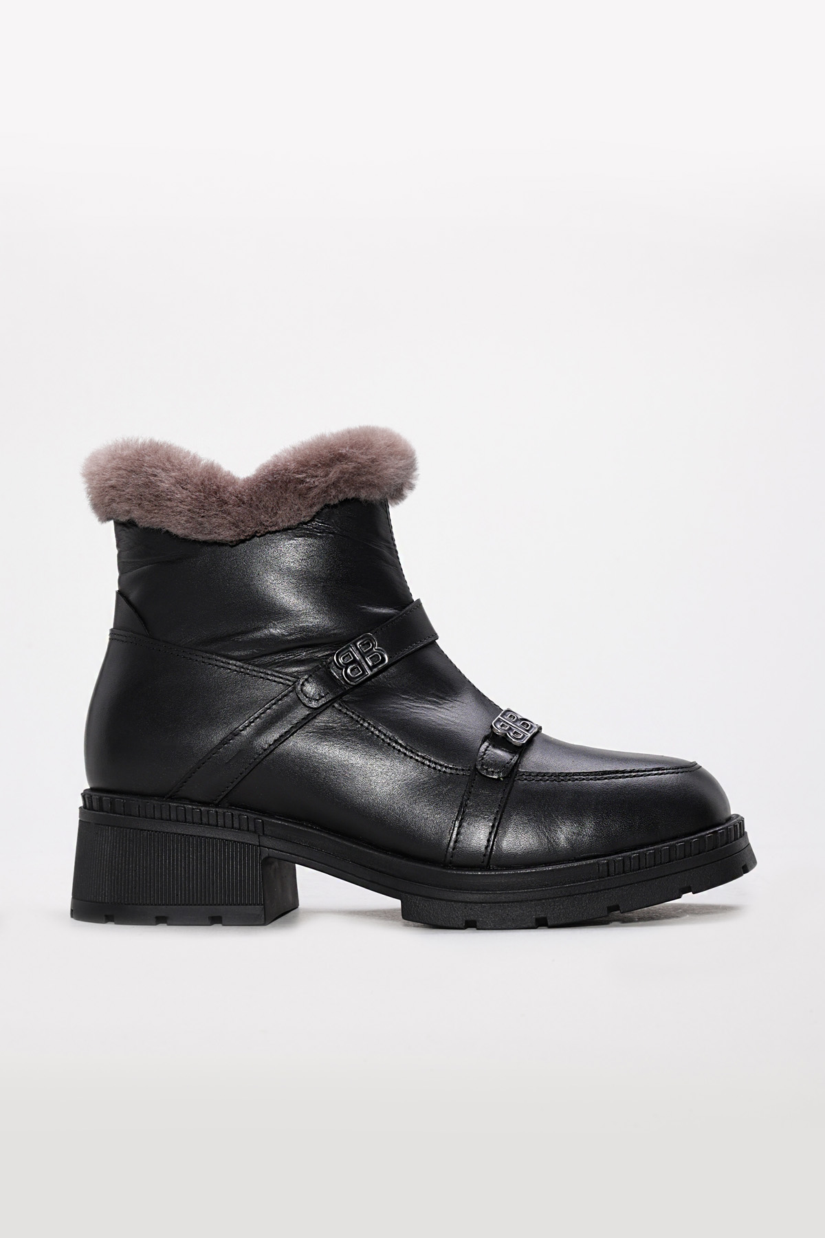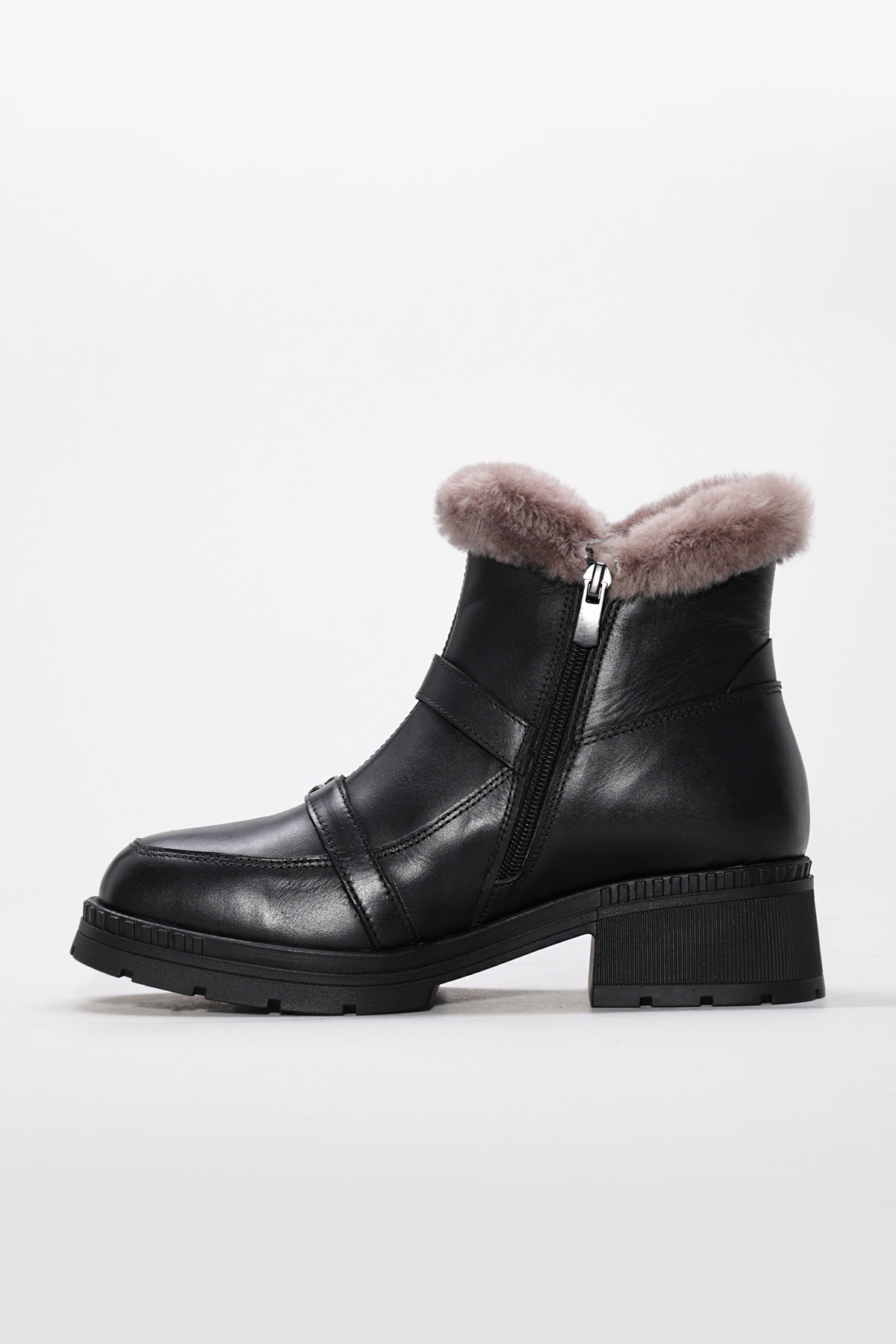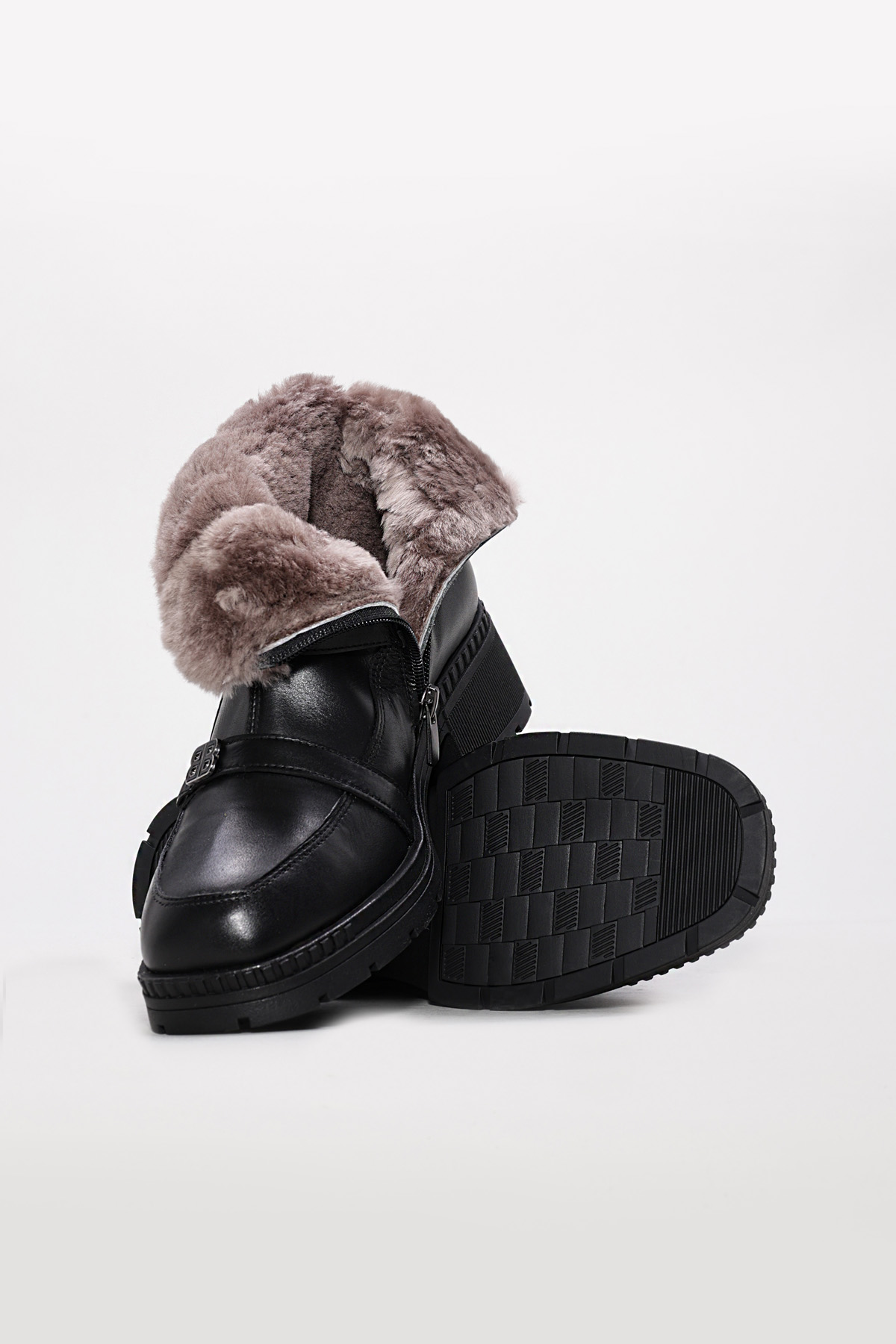 Tugerdi Siyah İçi Dışı Hakiki Deri Termo Taban Fermuarlı Kadın Bot TG09233112611011