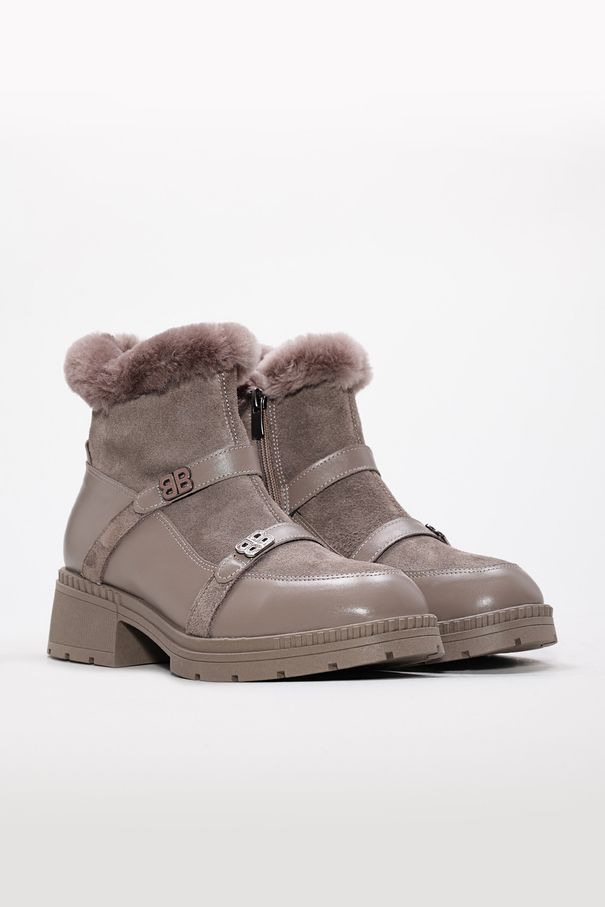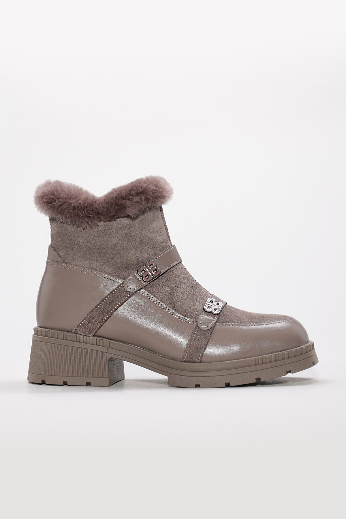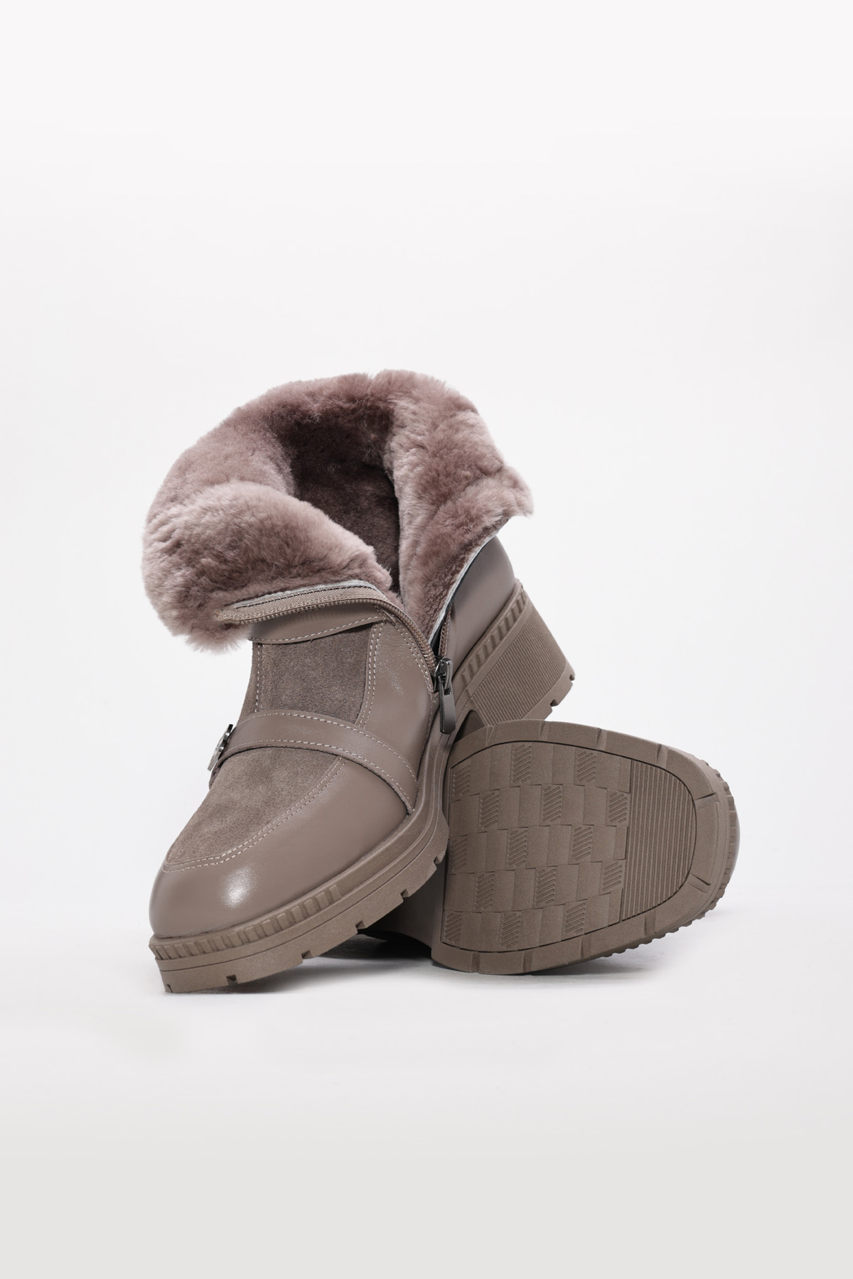 Tugerdi Vizon Süet İçi Dışı Hakiki Deri Fermuarlı Termo Taban Kadın Bot TG09233112611011