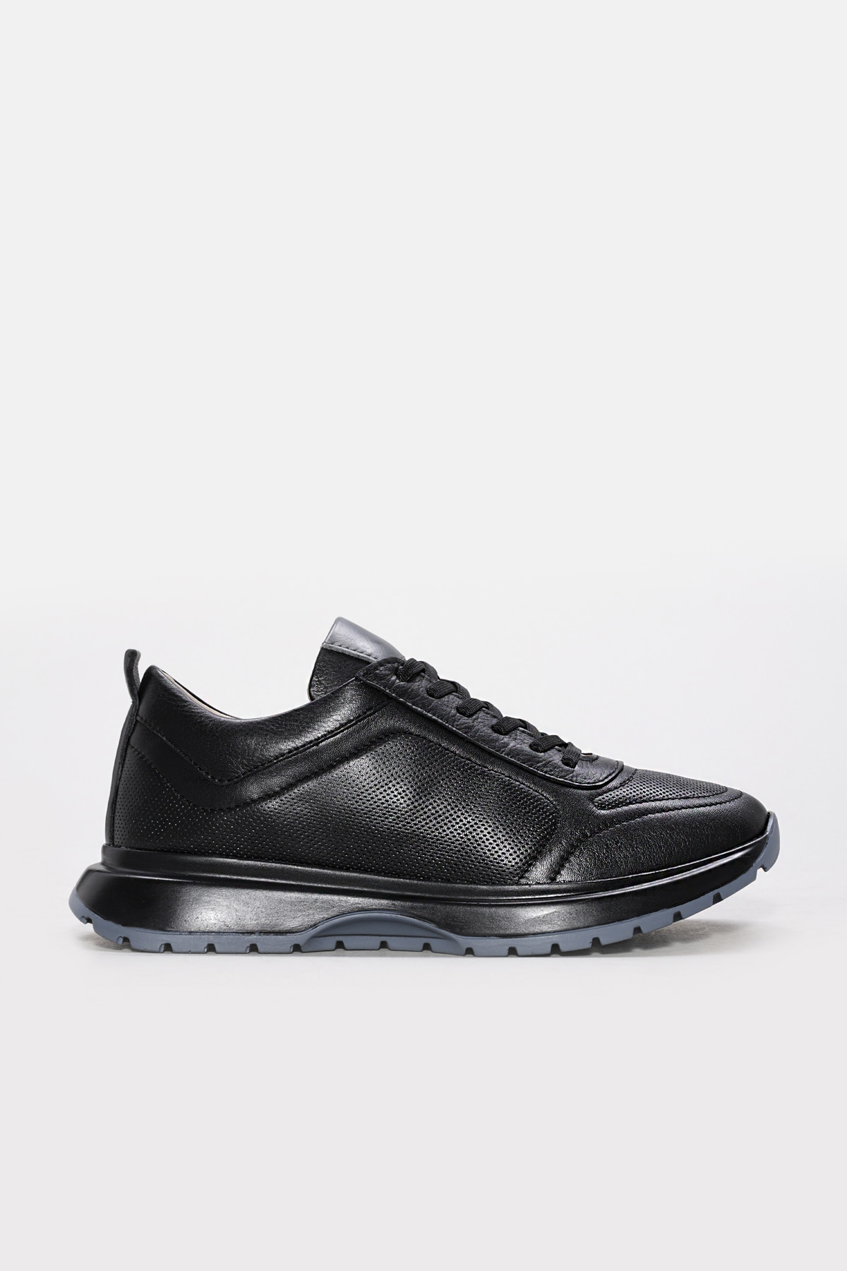 Tugerdi Siyah İçi Dışı Hakiki Deri Termo Taban Bağcıklı Kadın Spor Ayakkabı TG091692616723