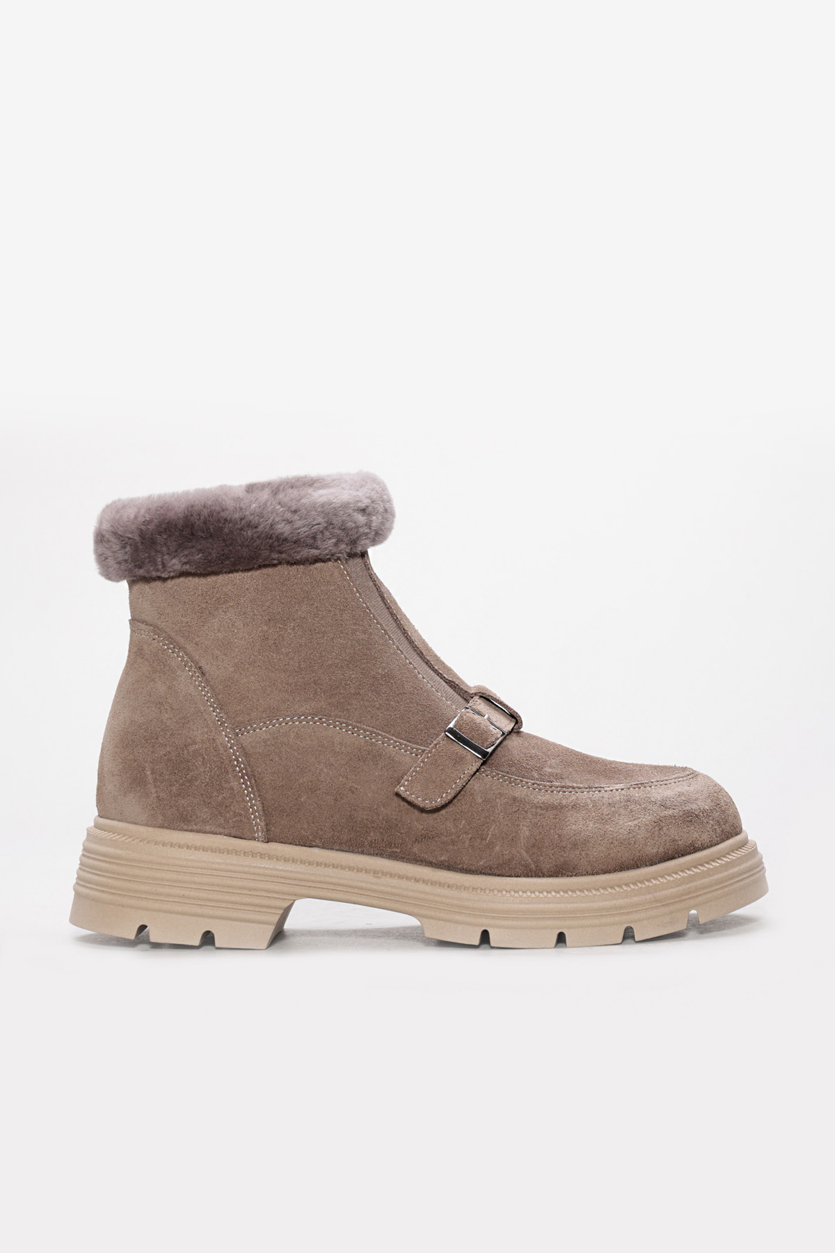 Tugerdi Vizon Süet İçi Kürklü Hakiki Deri Fermuarlı Termo Taban Kaliteli Kadın Bot TG0921711261781344