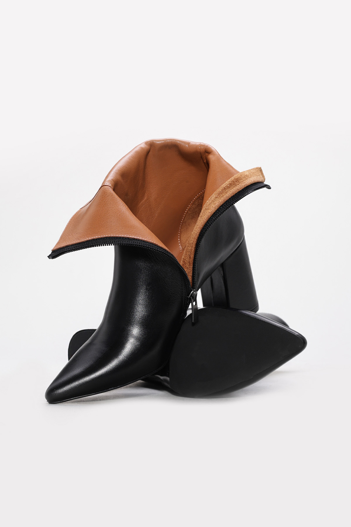 Tugerdi Siyah Hakiki Deri Fermuarlı Jurdan Taban Kaliteli Kalın Topuklu Kadın Bot TG0921542613621