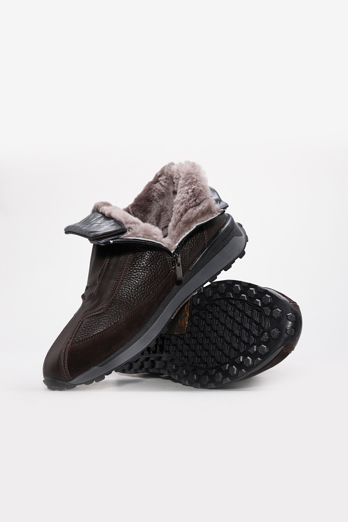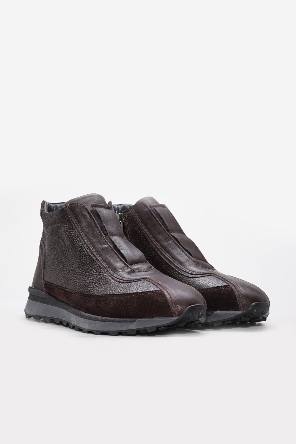 Tugerdi Kahve İçi Kürklü Hakiki Deri Fermuarlı Termo Taban Kaliteli Erkek Spor Bot TG0985611131938