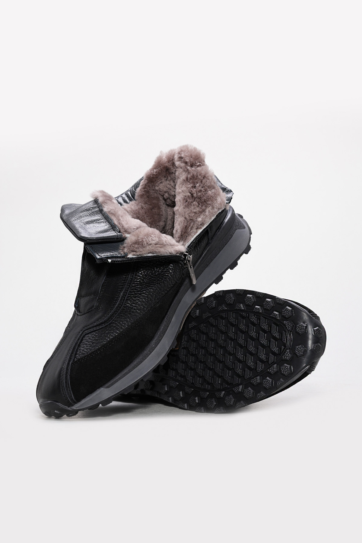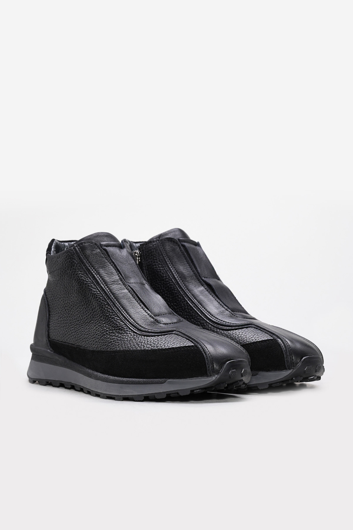 Tugerdi Siyah İçi Kürklü Hakiki Deri Fermuarlı Termo Taban Kaliteli Erkek Spor Bot TG0985611131938