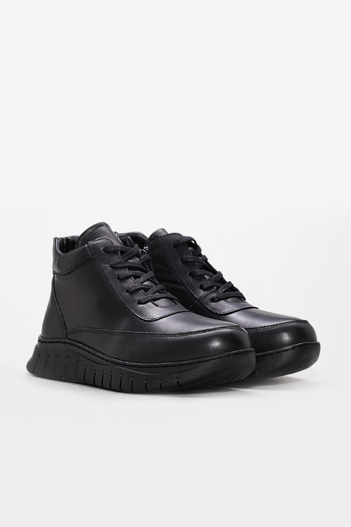 • Tugerdi Siyah Hakiki Deri Bağcıklı Fermuarlı Termo Taban Kaliteli Klasik Kadın Bot TG095831926121010