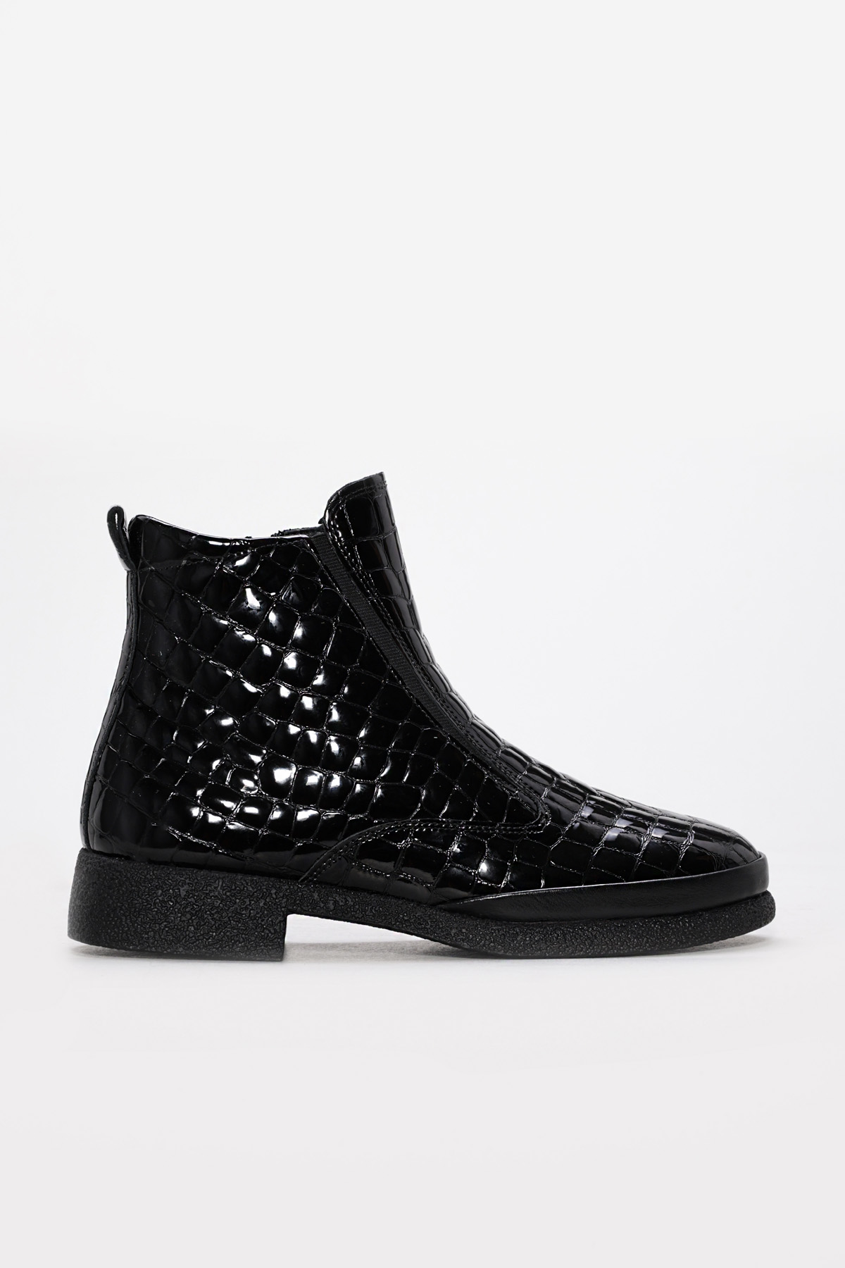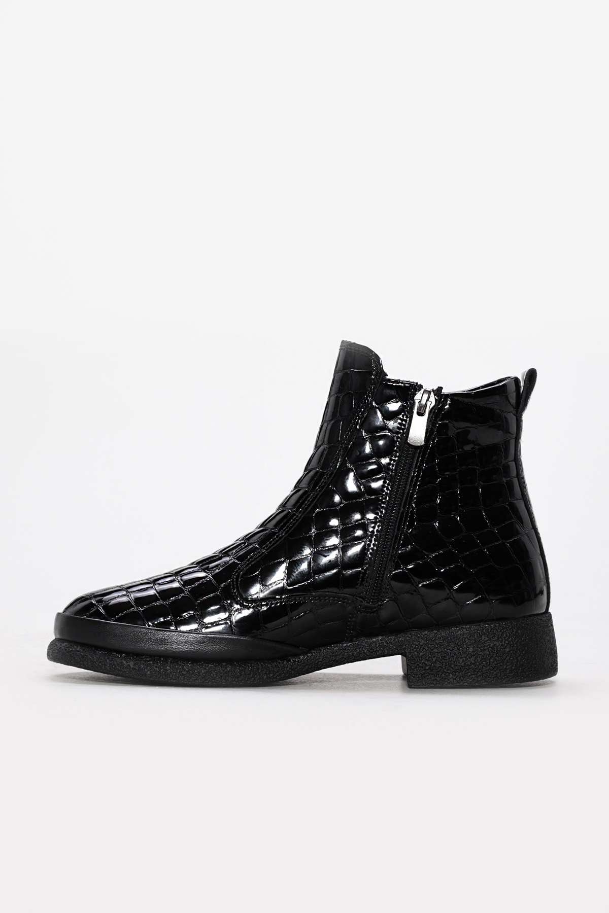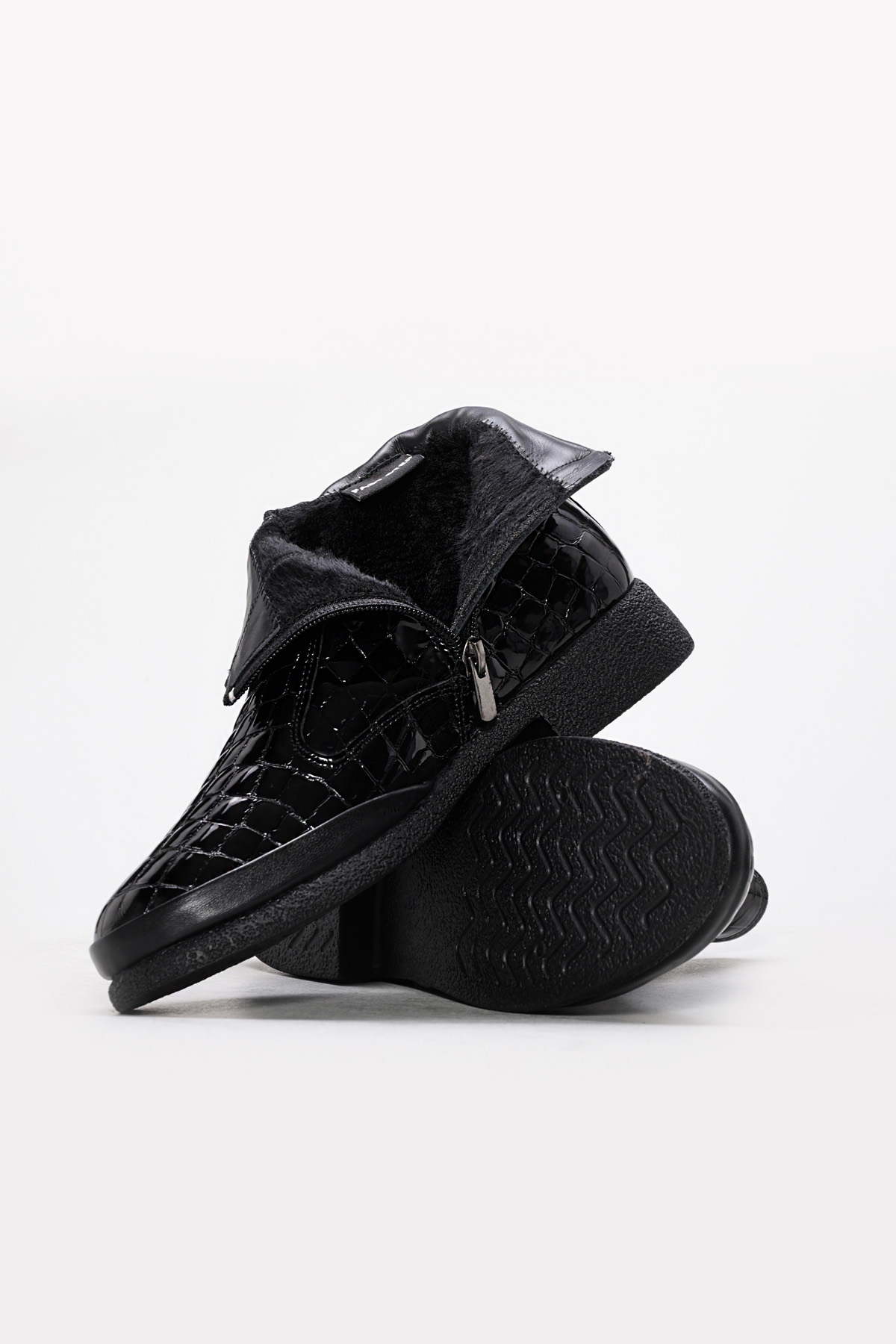 • Tugerdi Siyah Kroko İçi Dışı Hakiki Deri Fermuarlı Termo Taban Klasik Kadın Bot TG0921719261668664