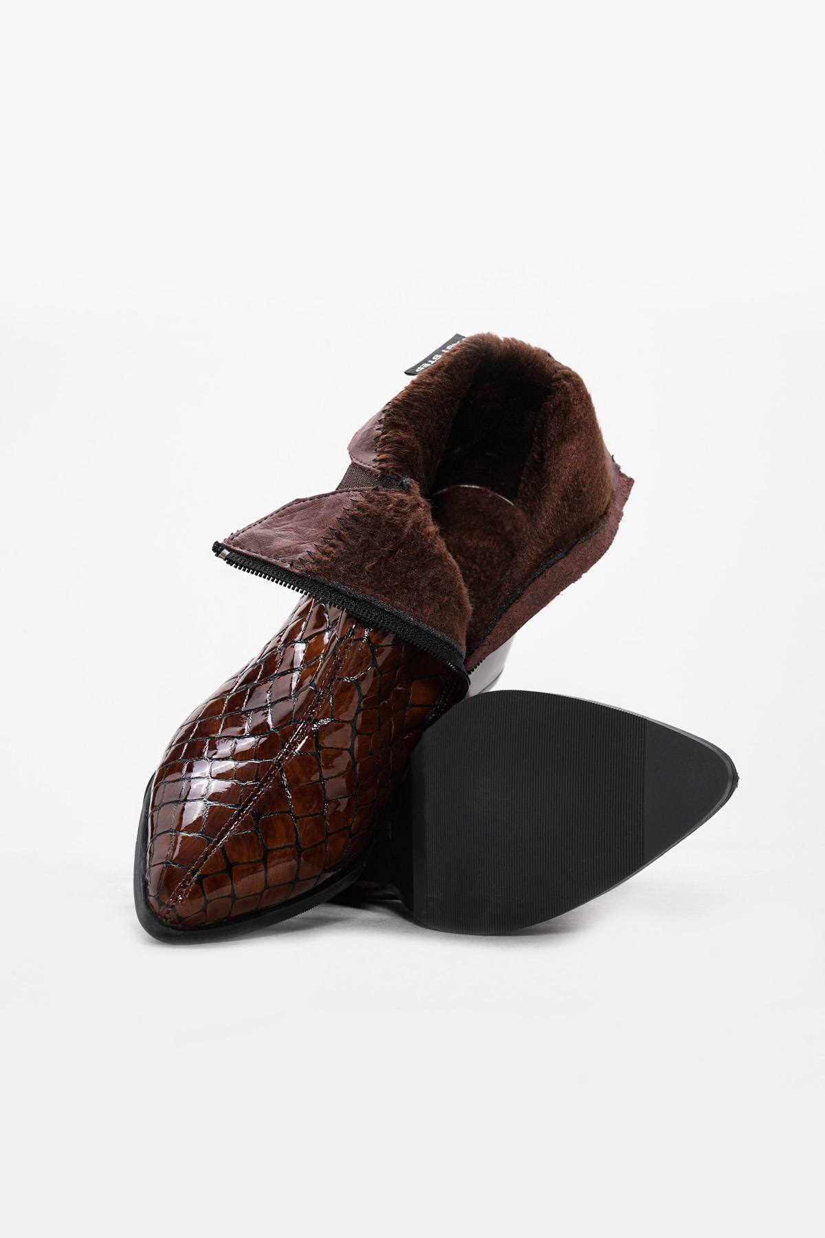 • Tugerdi Kahve İçi Kürklü Hakiki Deri Fermuarlı Jurdan Taban Kalın Topuklu Kadın Bot TG09064192611215