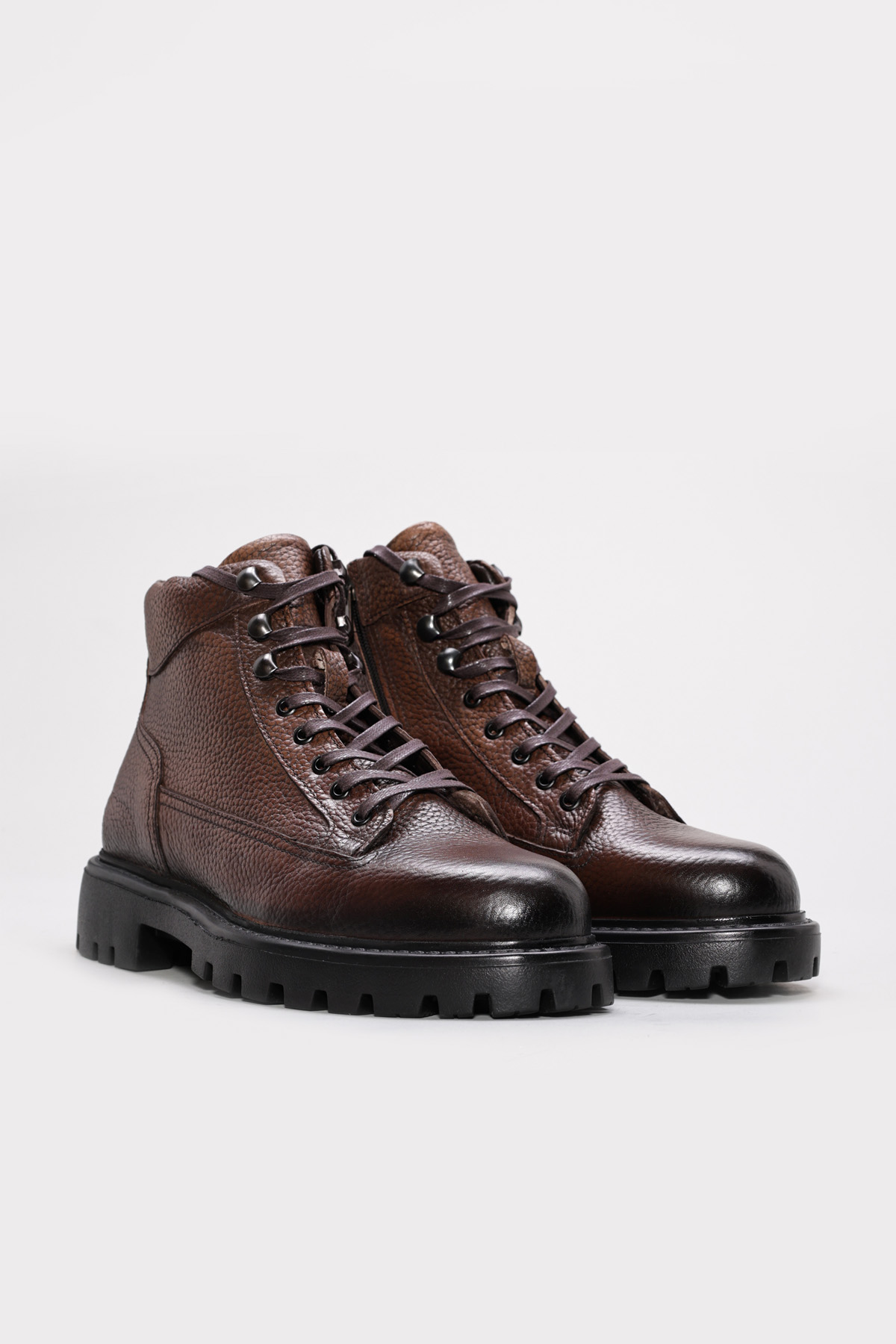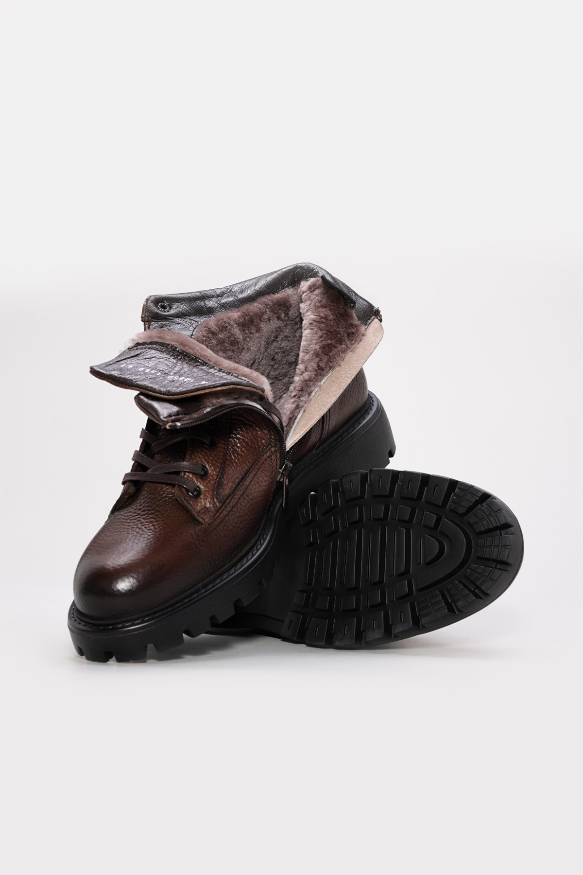 Tugerdi Kahve İçi Kürklü Hakiki Deri Bağcıklı Fermuarlı Kauçuk Taban Erkek Bot TG0924911131121260