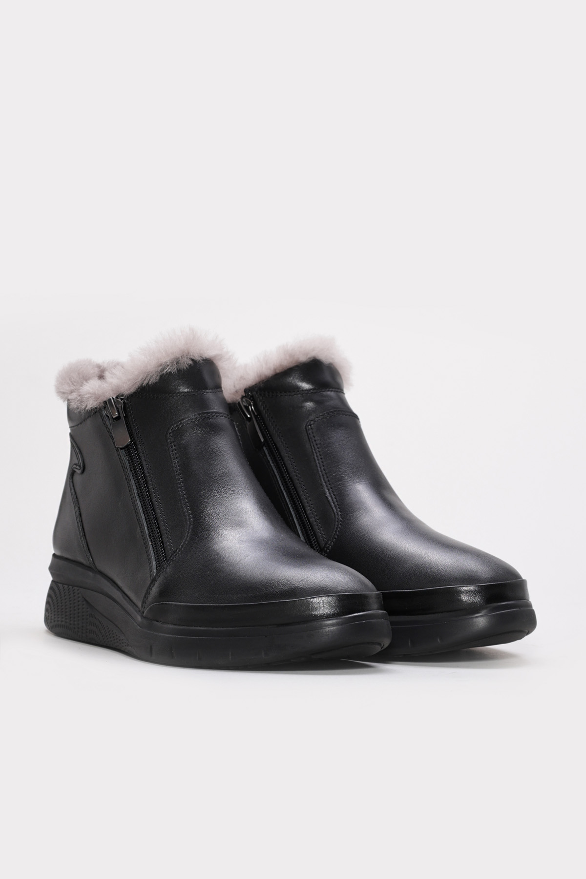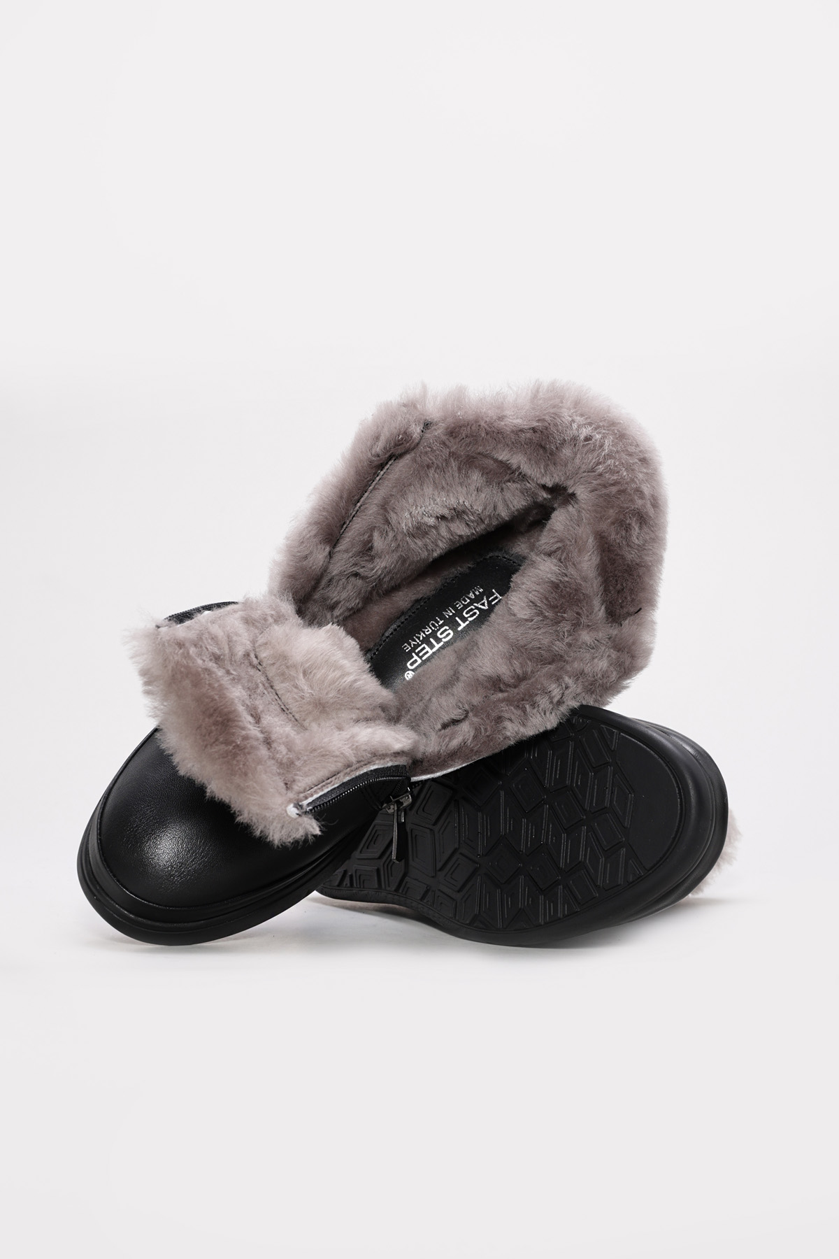 • Tugerdi Siyah İçi Kürklü Hakiki Deri Termo Taban Fermuarlı Kaliteli Tarz Kadın Bot TG09411112611405