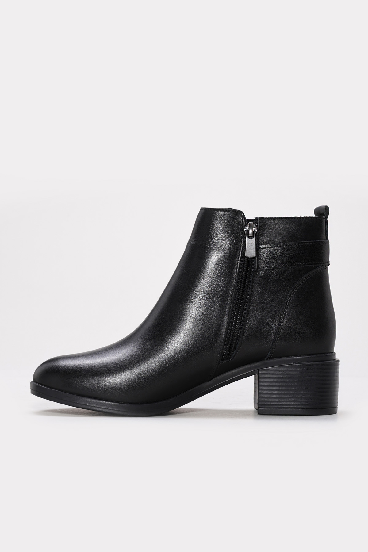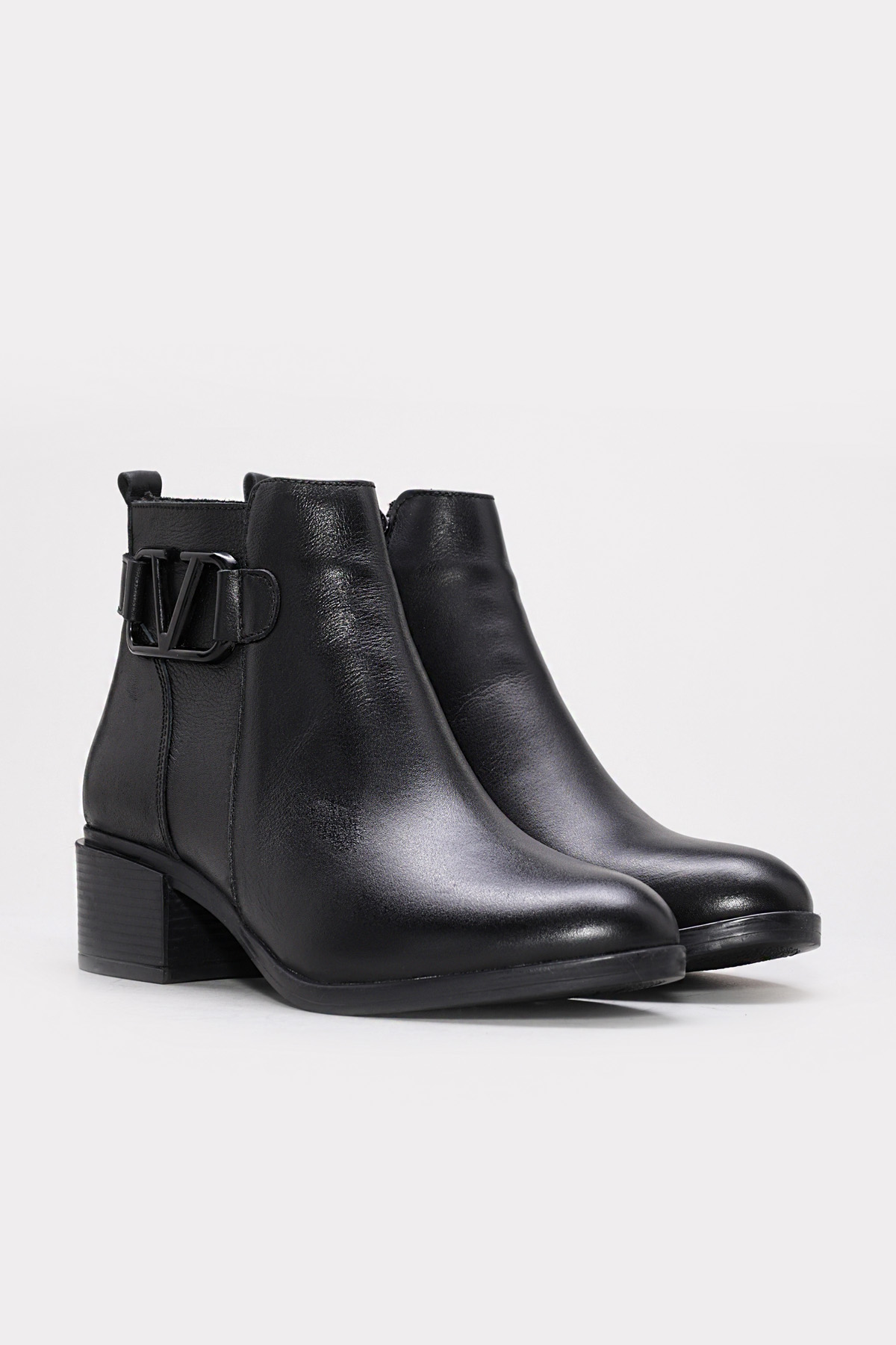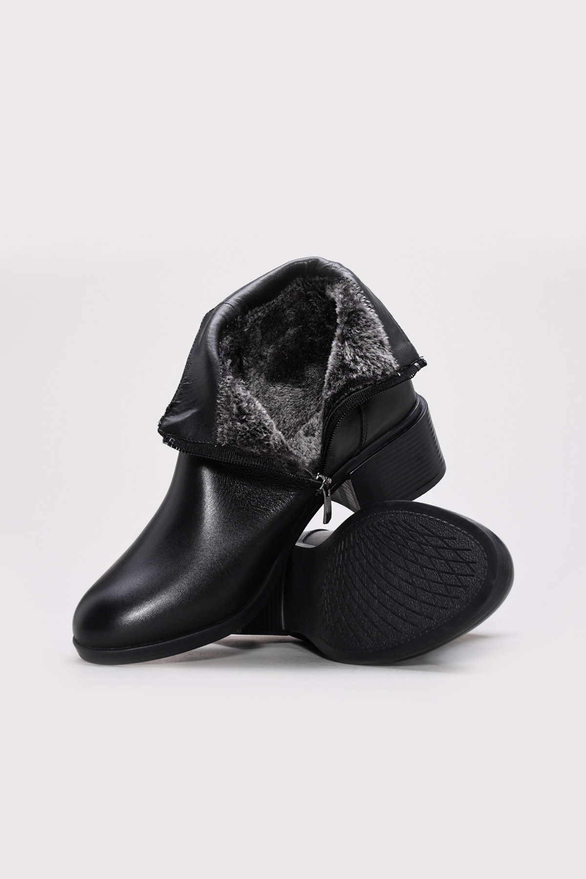 • Tugerdi Siyah İçi Dışı Hakiki Deri Fermuarlı Termo Taban Kalın Topuklu Kadın Bot TG091641926517