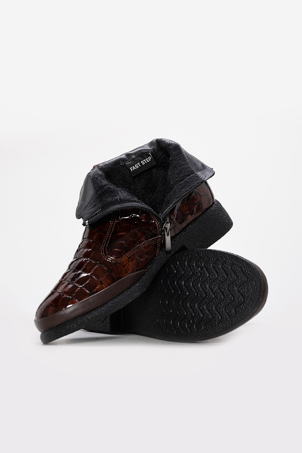 • Tugerdi Kahve Kroko Hakiki Deri Fermuarlı Termo Taban Kaliteli Tarz Kadın Bot TG0921719261668664