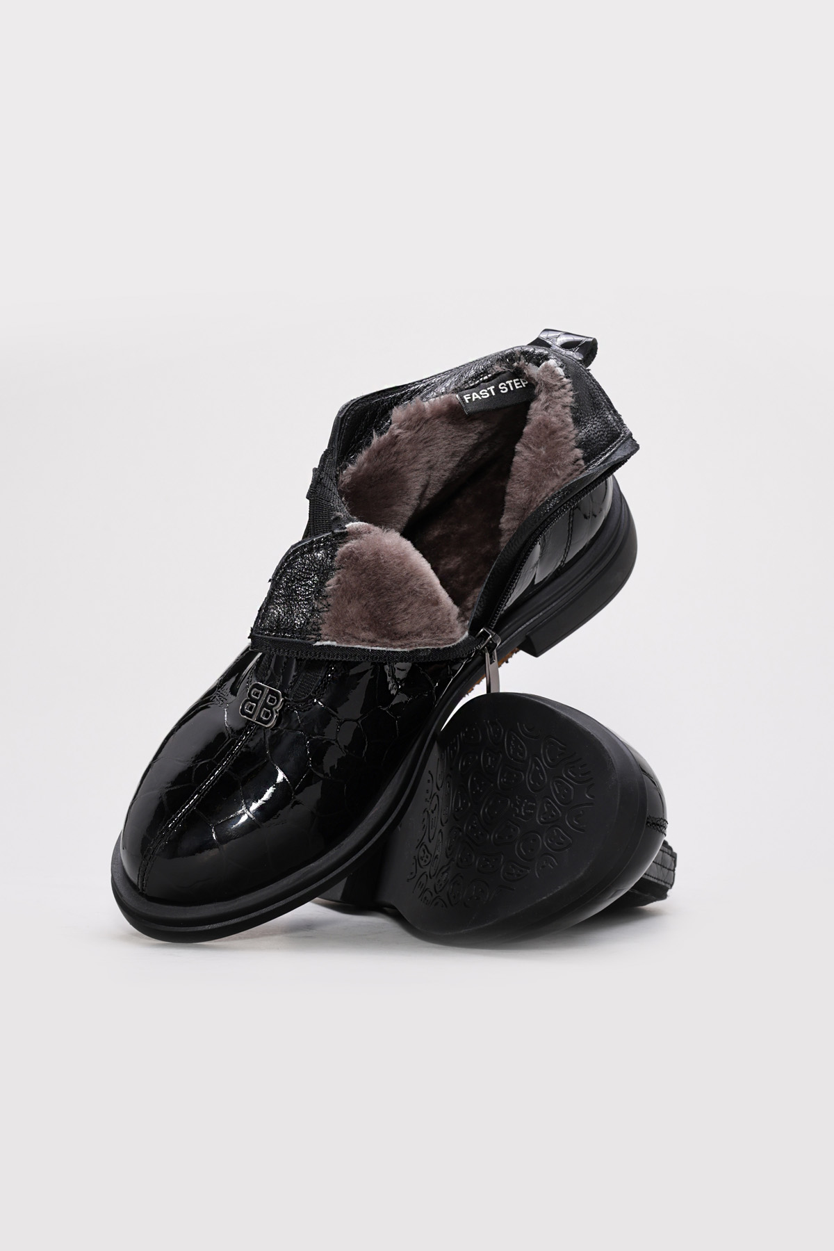 • Tugerdi Siyah Kroko İçi Kürklü Hakiki Deri Fermuarlı Kauçuk Taban Kaliteli Kadın Bot TG0923811261526