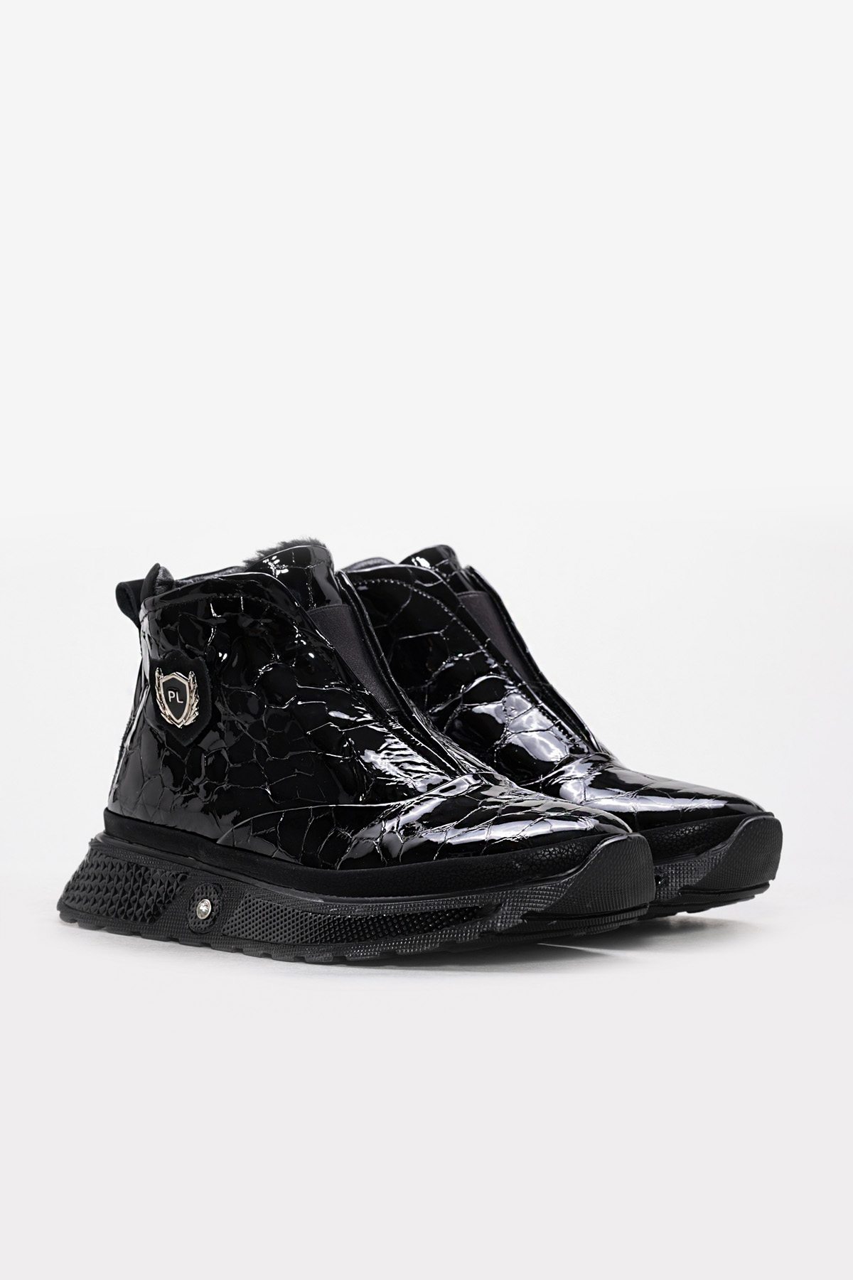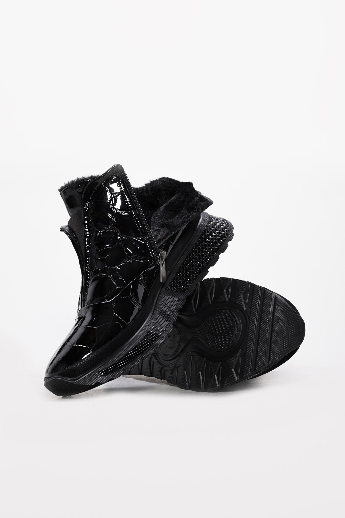 Tugerdi Siyah Kroko İçi Dışı Hakiki Deri Fermuarlı Termo Taban Kadın Spor Bot TG0925419261530