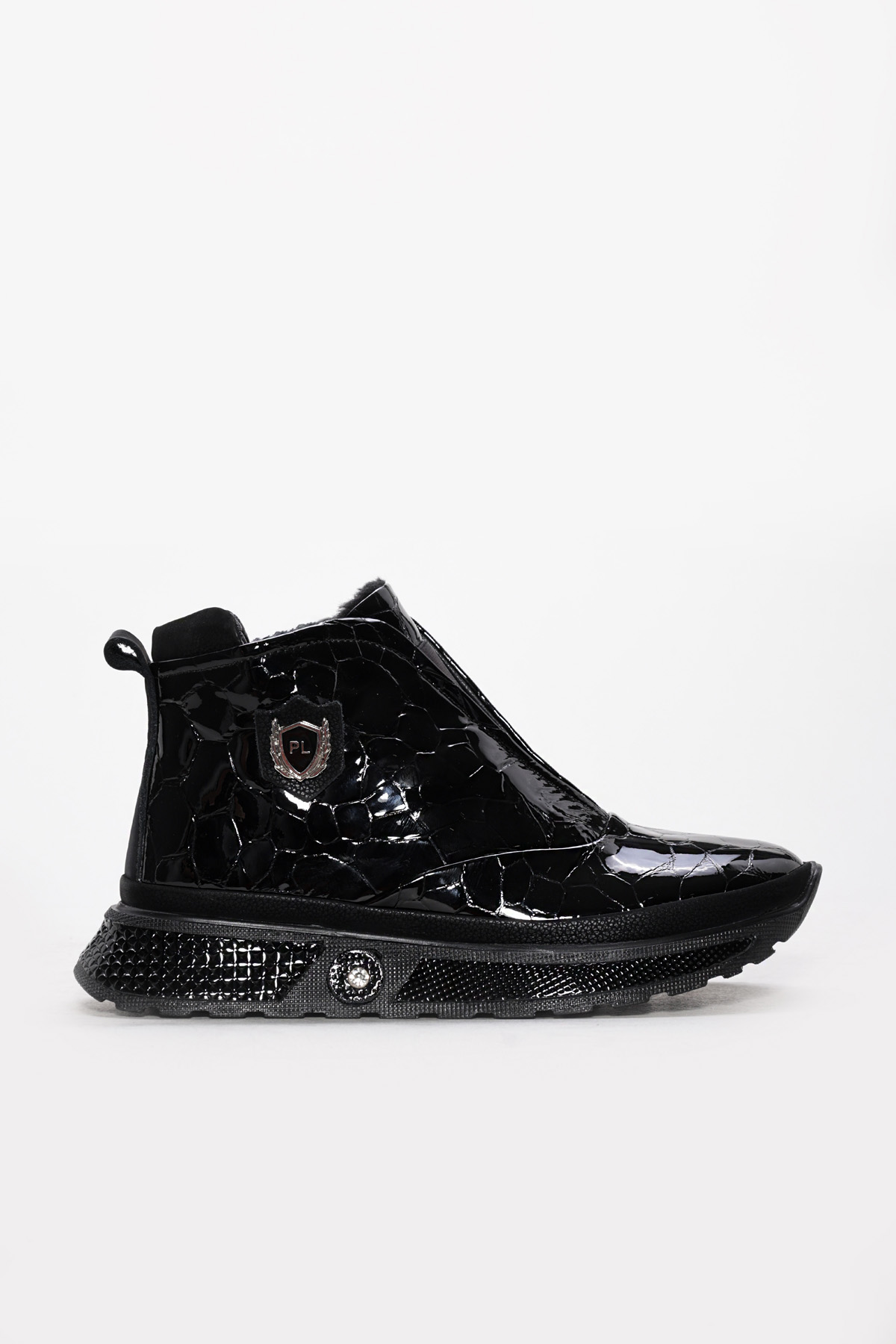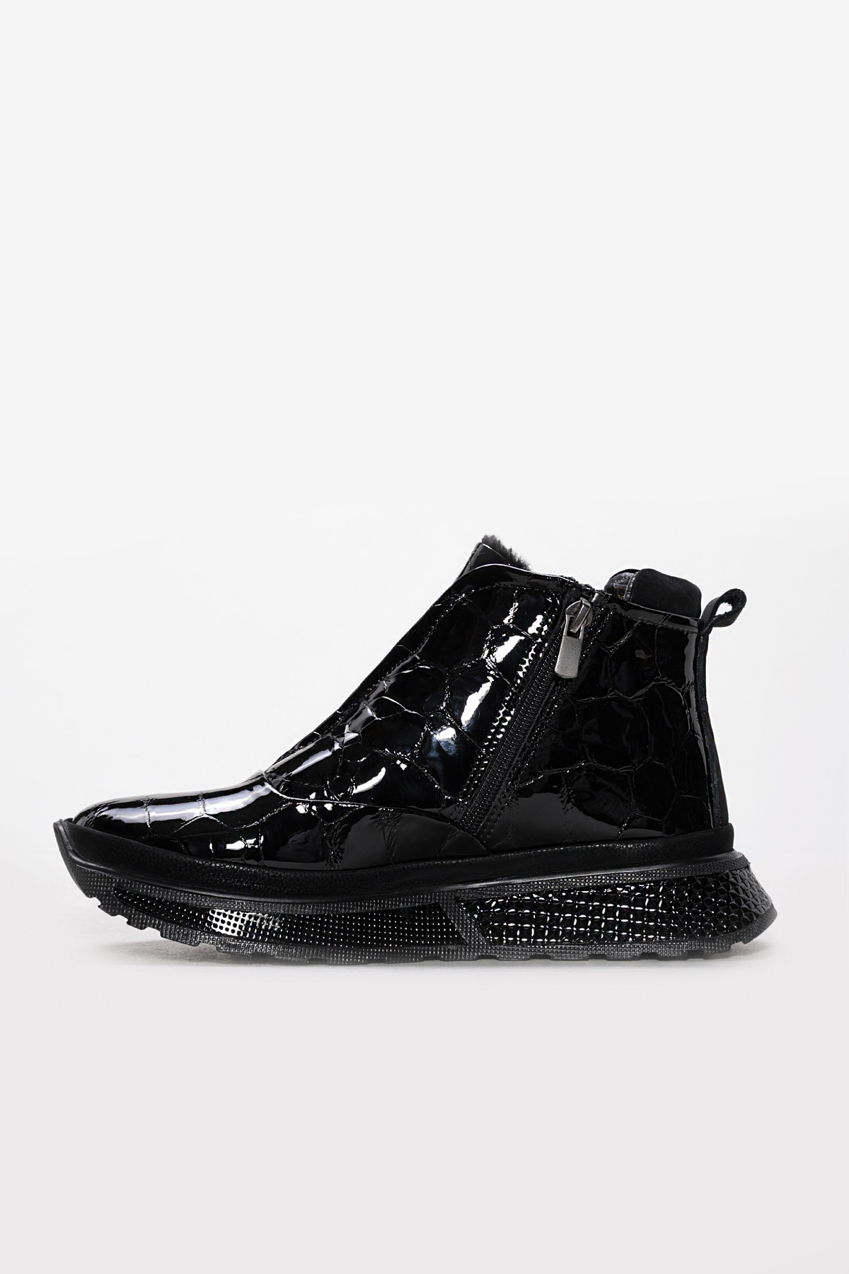 • Tugerdi Siyah Kroko İçi Dışı Hakiki Deri Fermuarlı Termo Taban Kadın Spor Bot TG0925419261530