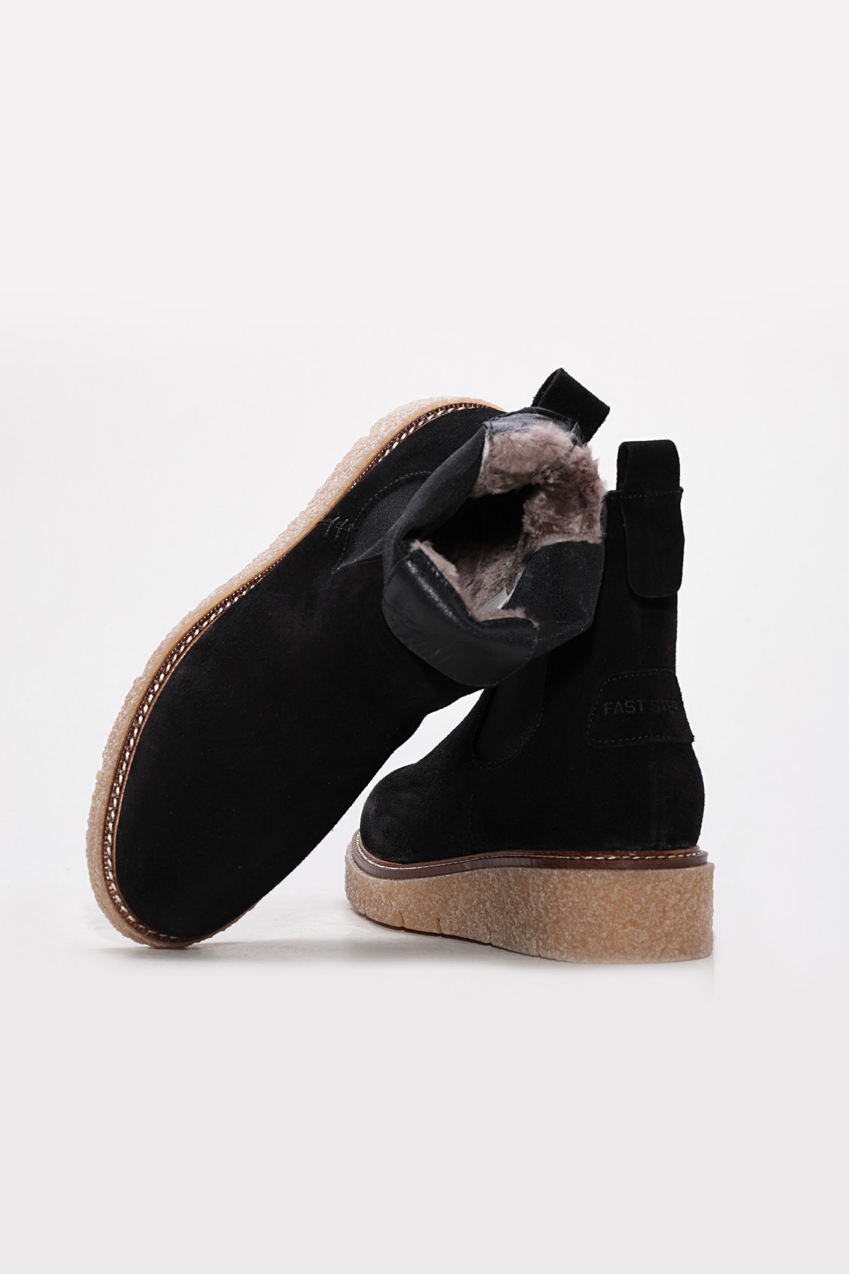 • Tugerdi Siyah Süet İçi Kürklü Hakiki Deri Kauçuk Taban Chelsea Kadın Bot TG09657112612911