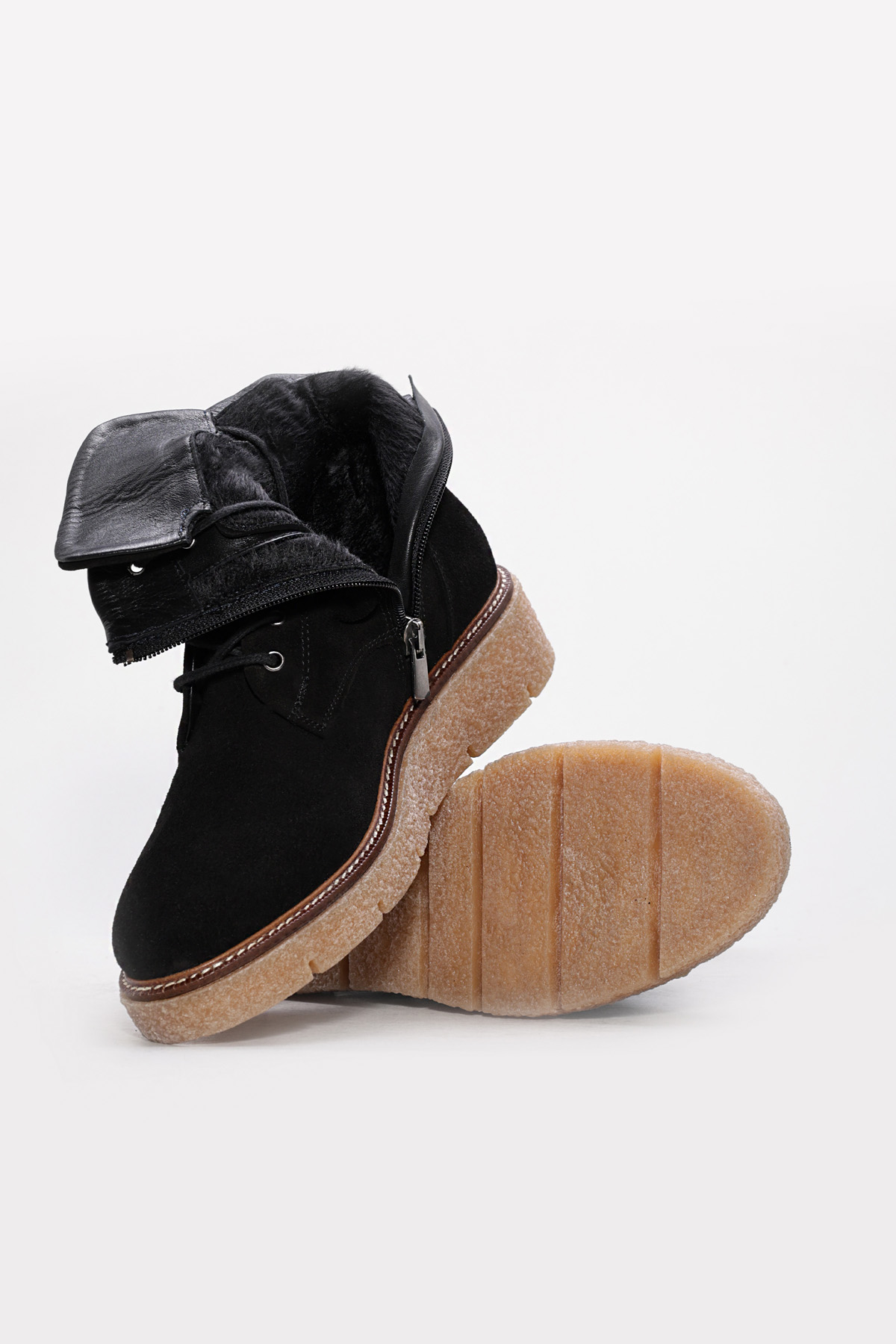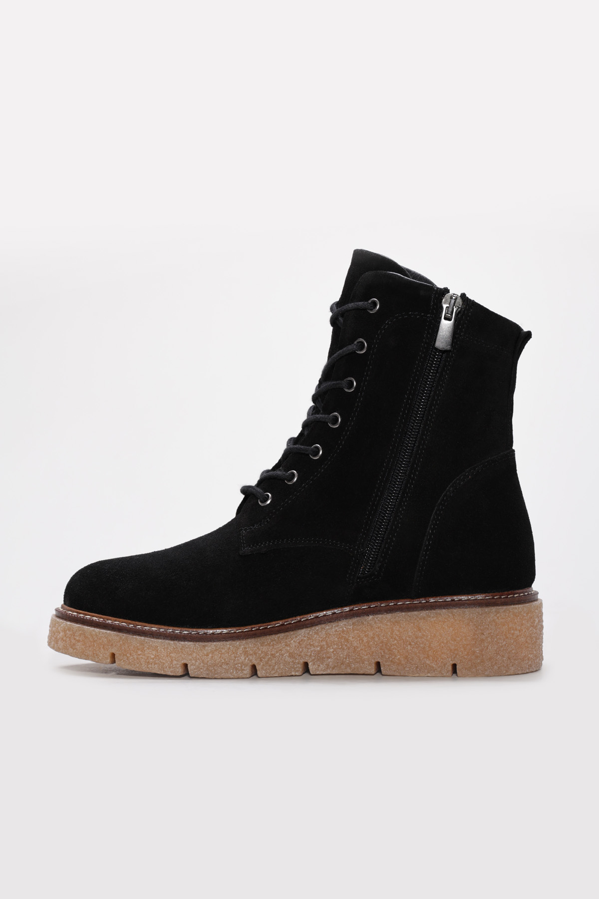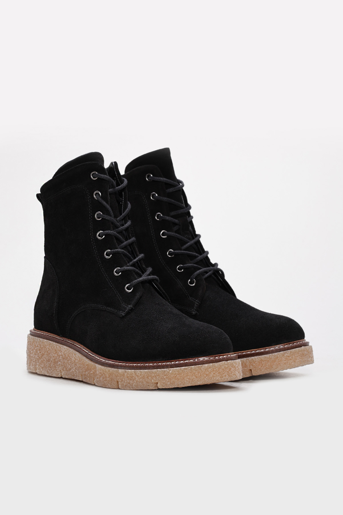 Tugerdi Siyah Süet İçi Dışı Hakiki Deri Bağcıklı Fermuarlı Kauçuk Taban Kadın Bot TG09657192612913