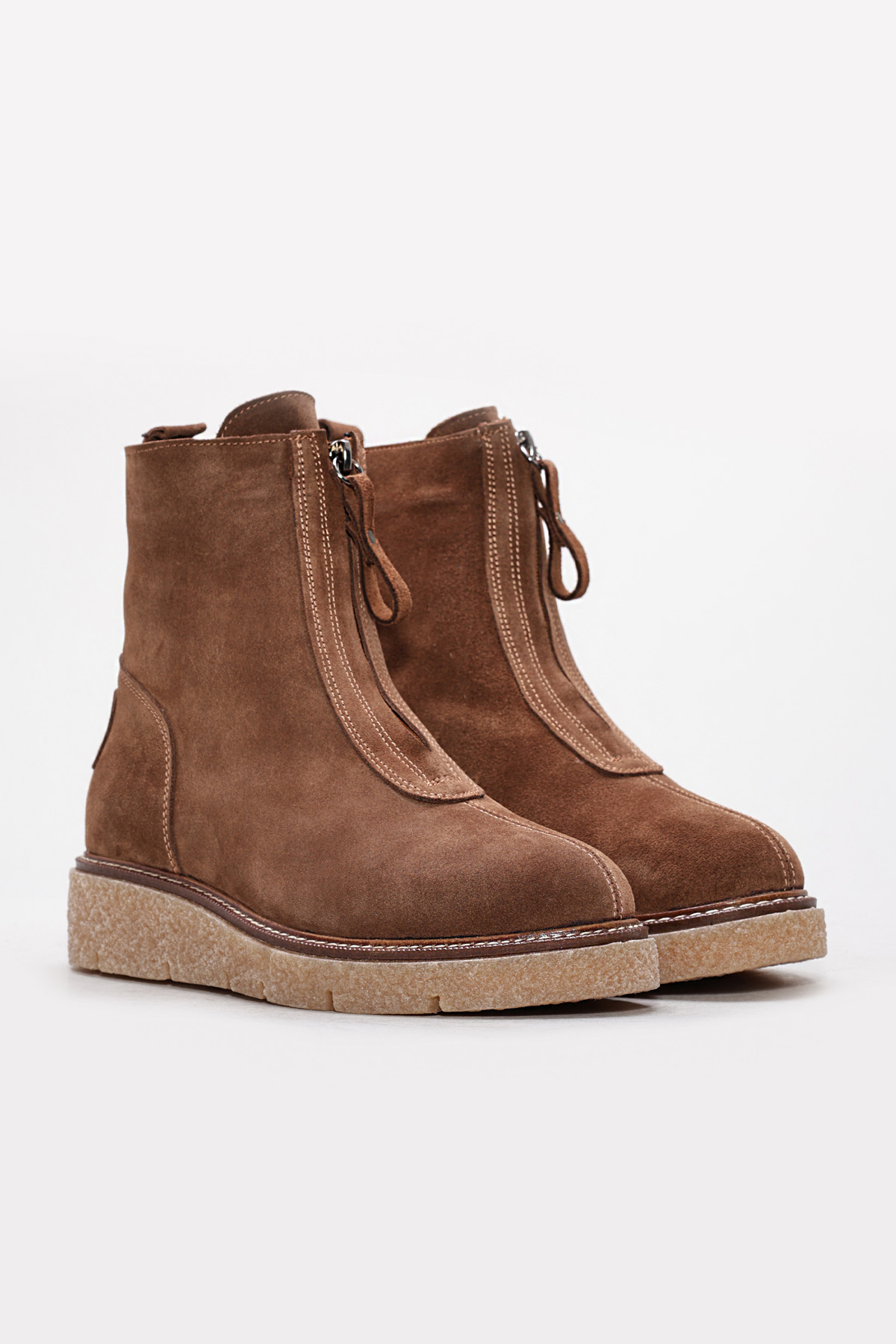 Tugerdi Taba Süet İçi Kürklü Hakiki Deri Kauçuk Taban Fermuarlı Tarz Kadın Bot TG09657112612912