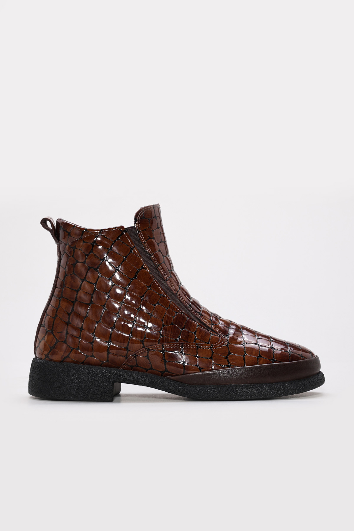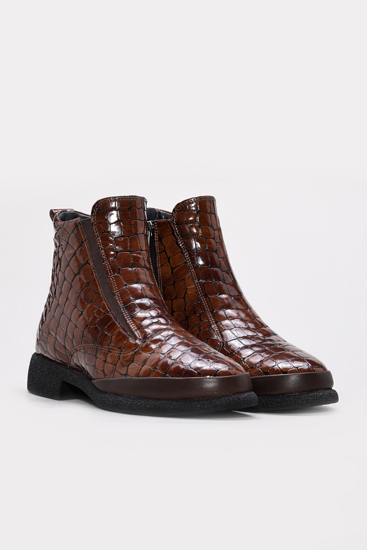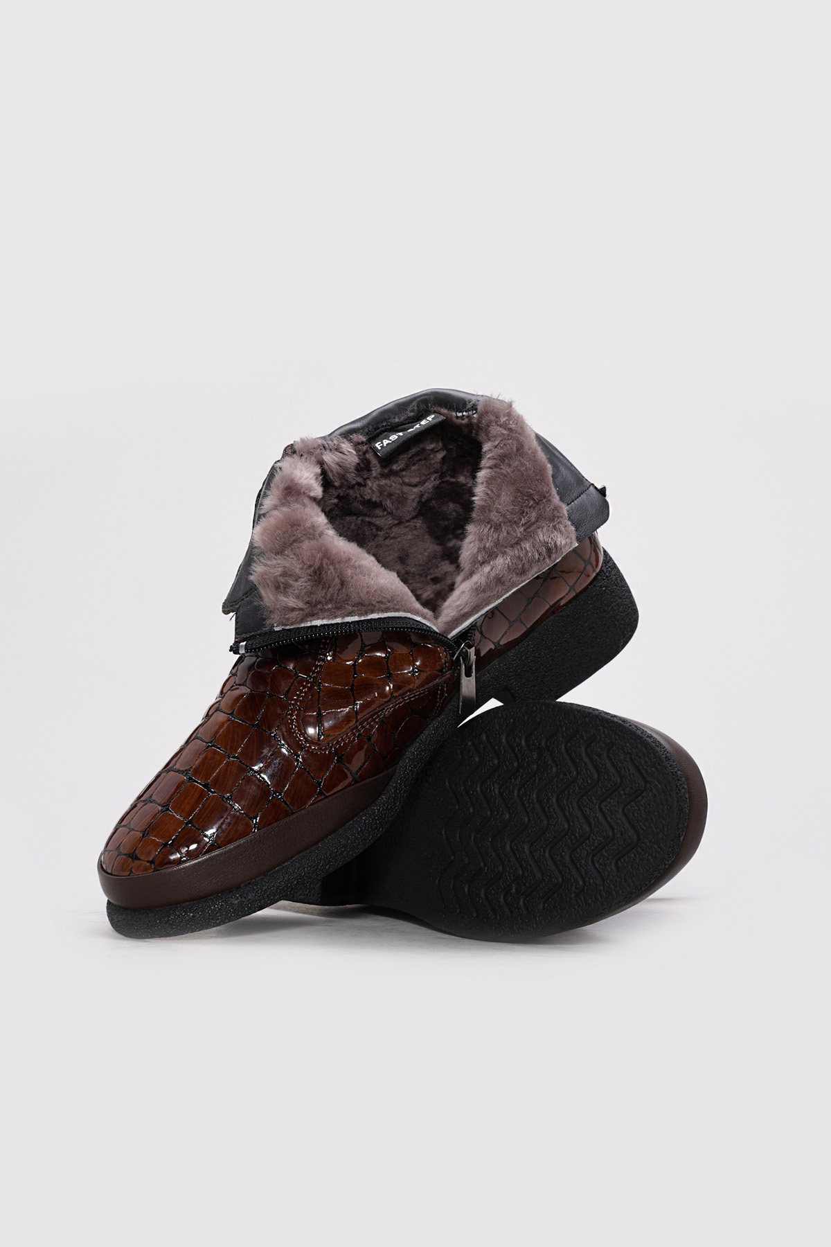 Tugerdi Kahve Kroko İçi Kürklü Hakiki Deri Fermuarlı Termo Taban Klasik Kadın Bot TG0921711261668664