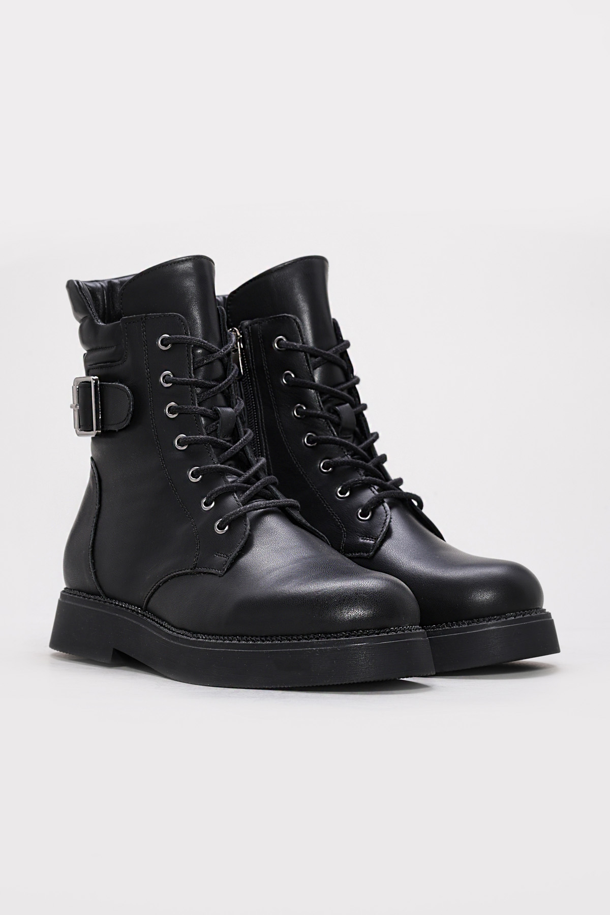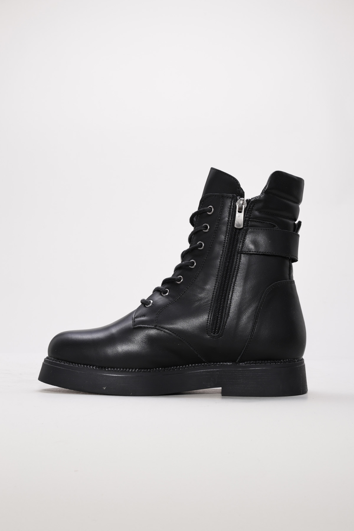 • Tugerdi Siyah İçi Kürklü Hakiki Deri Bağcıklı Fermuarlı Kauçuk Taban Kaliteli Kadın Postal Bot TG09657112612916