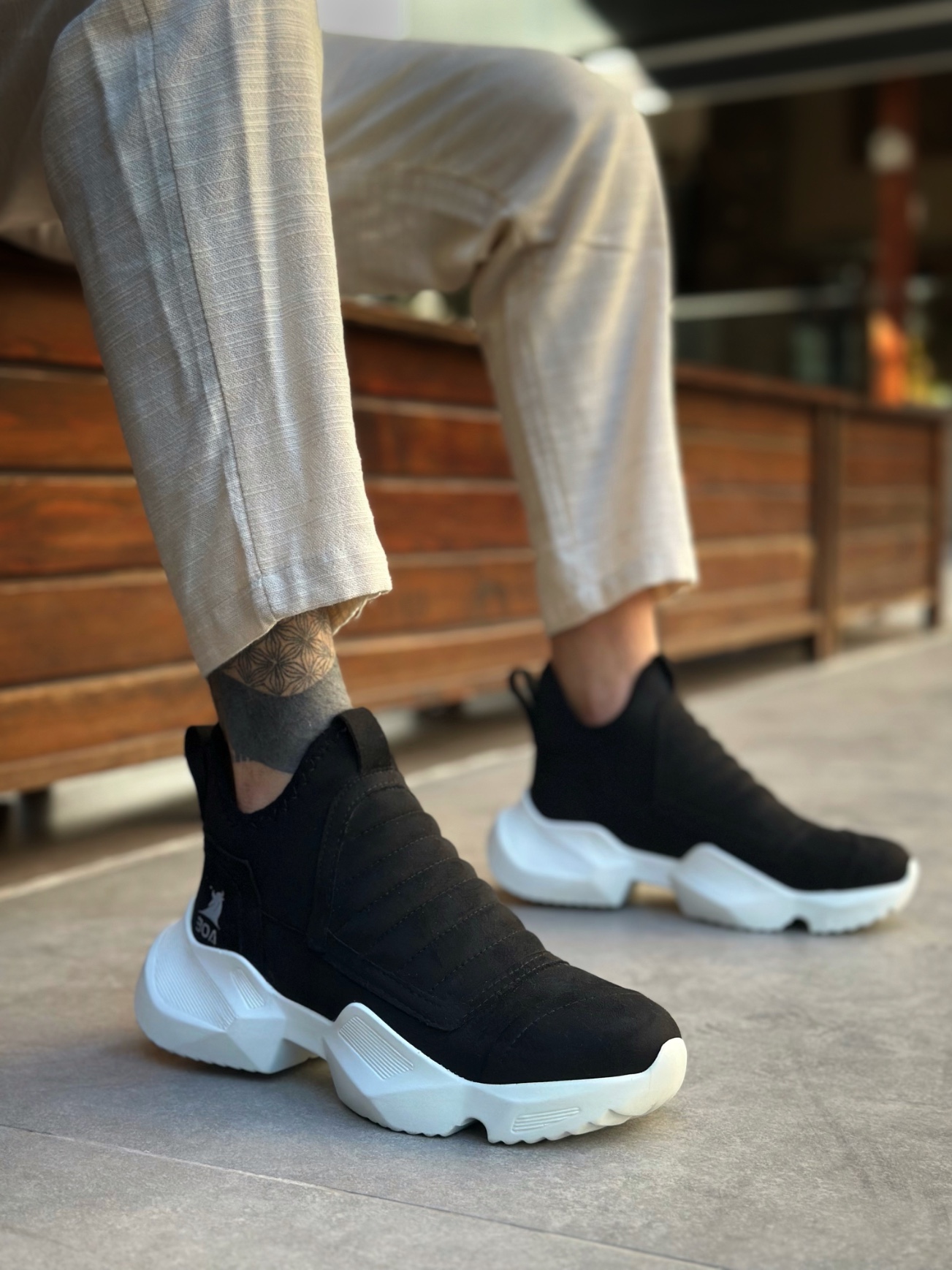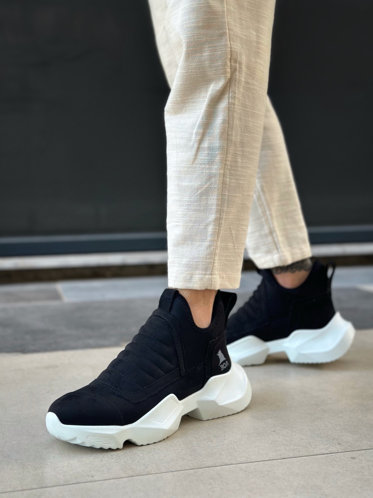 • Tugerdi Siyah Süet Hafif Yüksek Beyaz Taban Tarz Erkek Yarım Bilek Spor Bot TGE230551