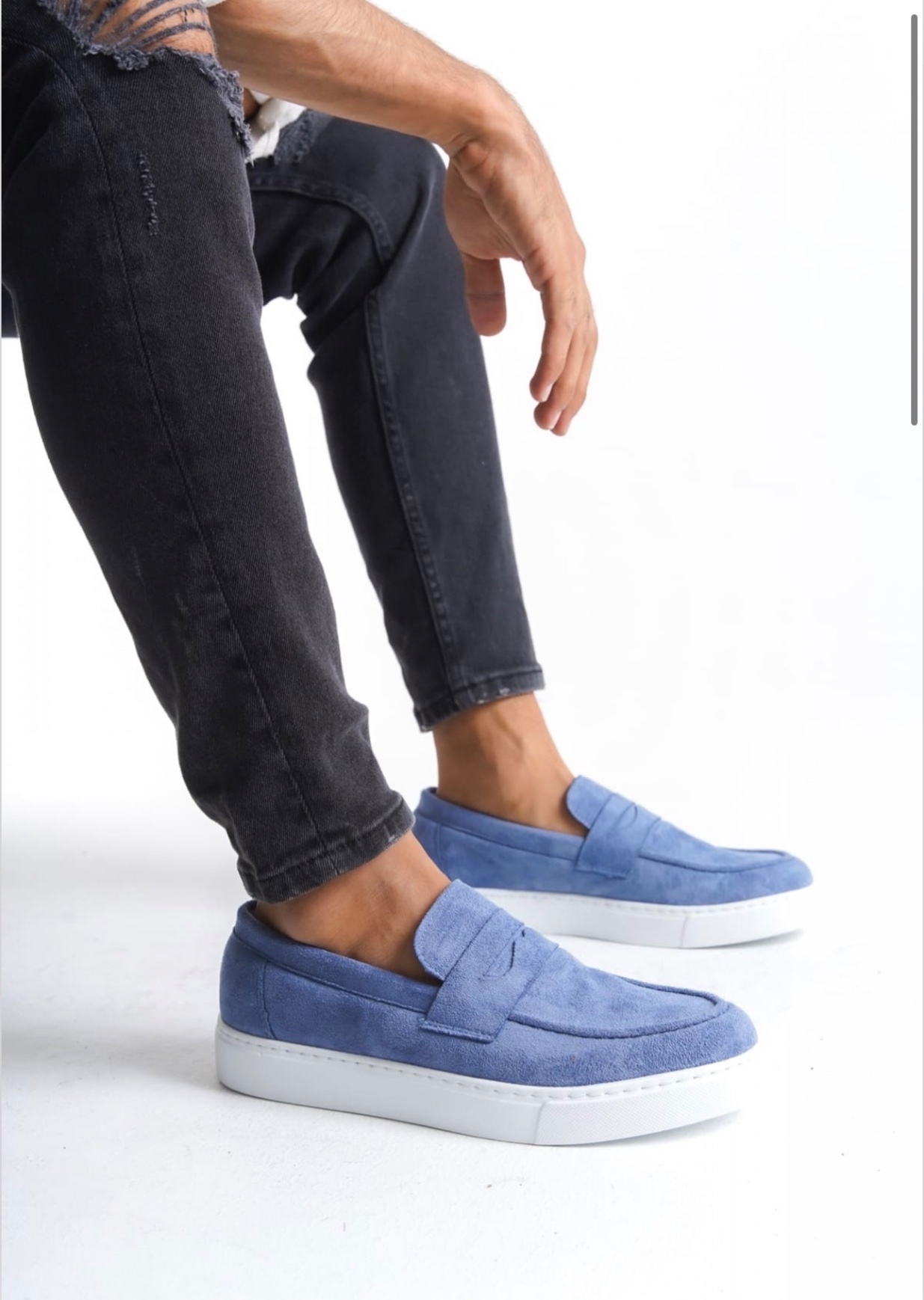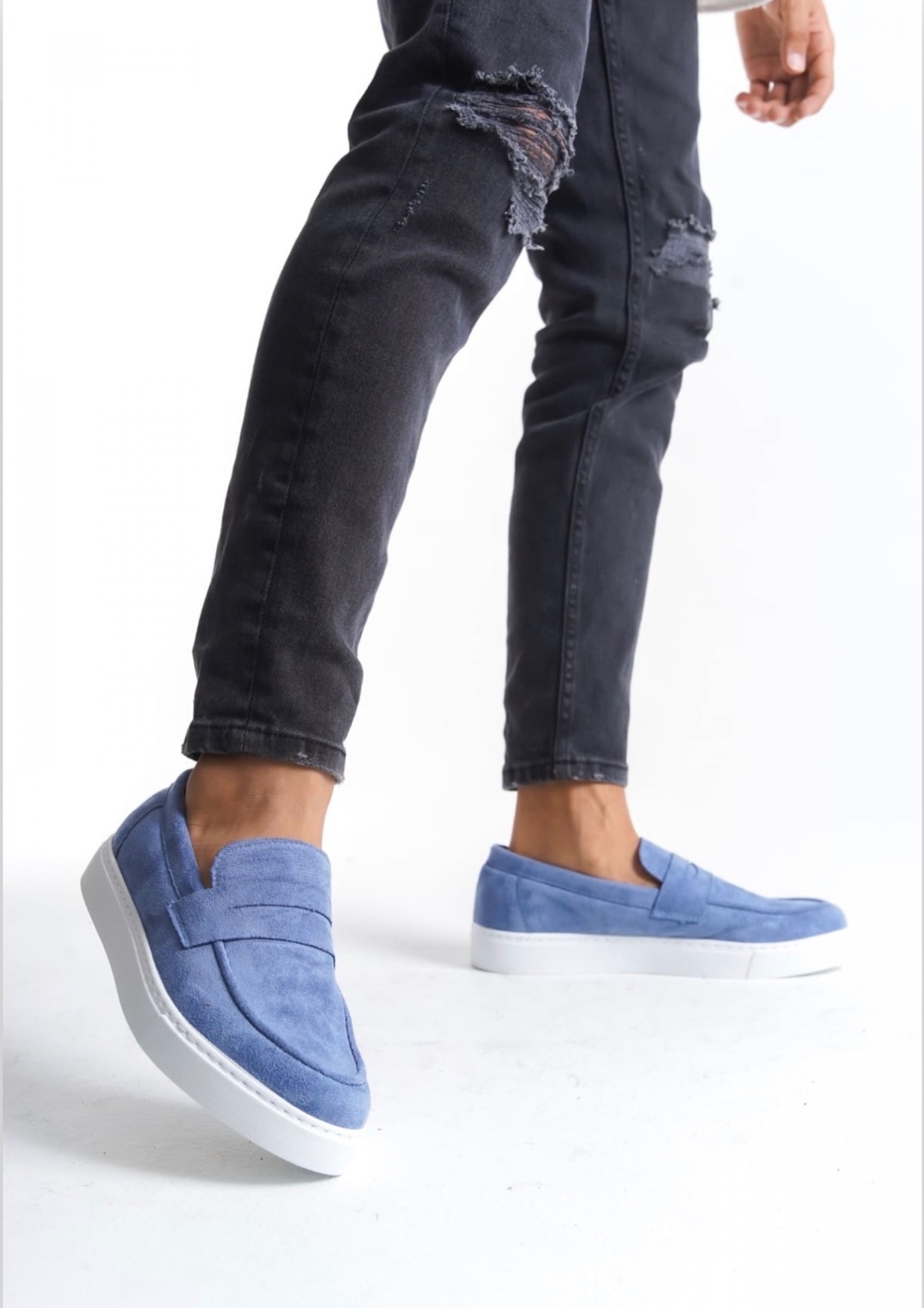 • TGE0580 Bağcıksız Kuşaklı Yüksek Taban Mavi Süet Erkek Ayakkabı