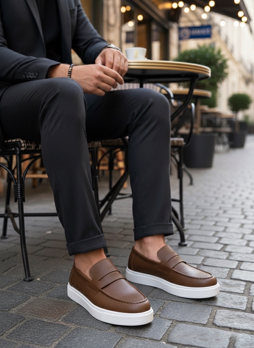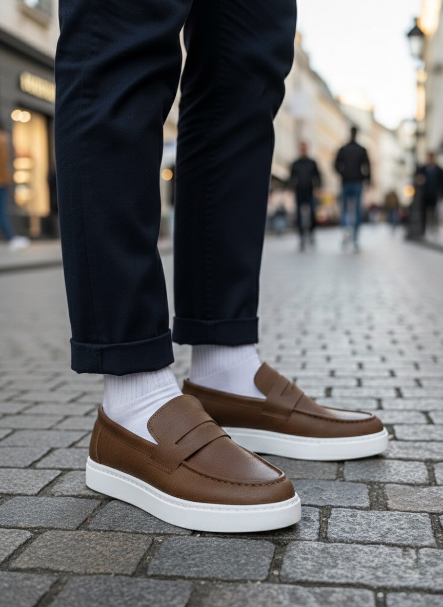 • TGE0580 Bağcıksız Kuşaklı Yüksek Taban Taba Cilt Erkek Ayakkabı