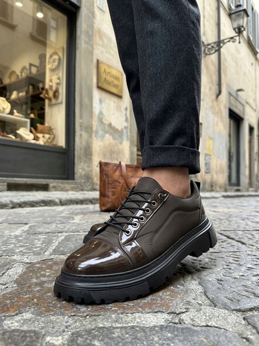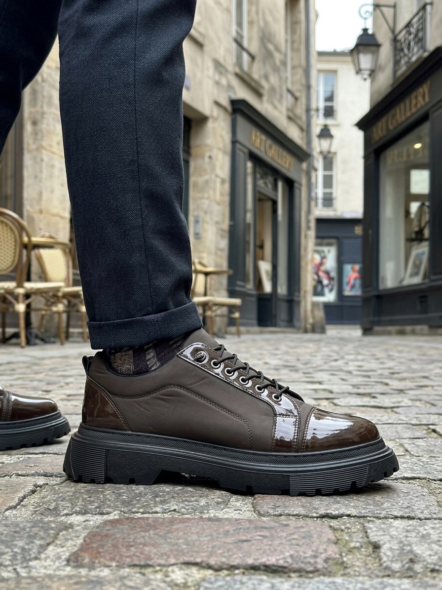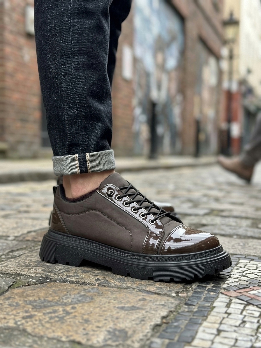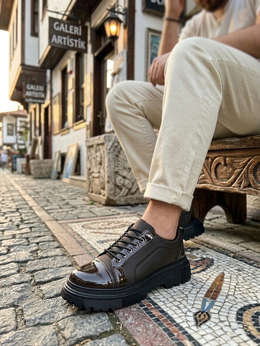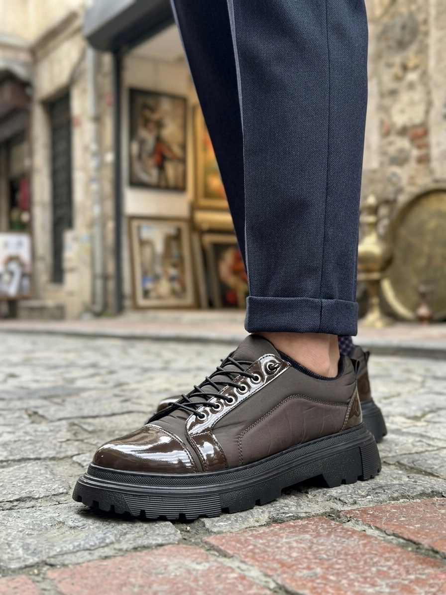 • Tugerdi Kahverengi Rugan Paraşüt Detay Akıllı Lastik Bağcık Yüksek Taban Tarz Erkek Ayakkabı TGE230395