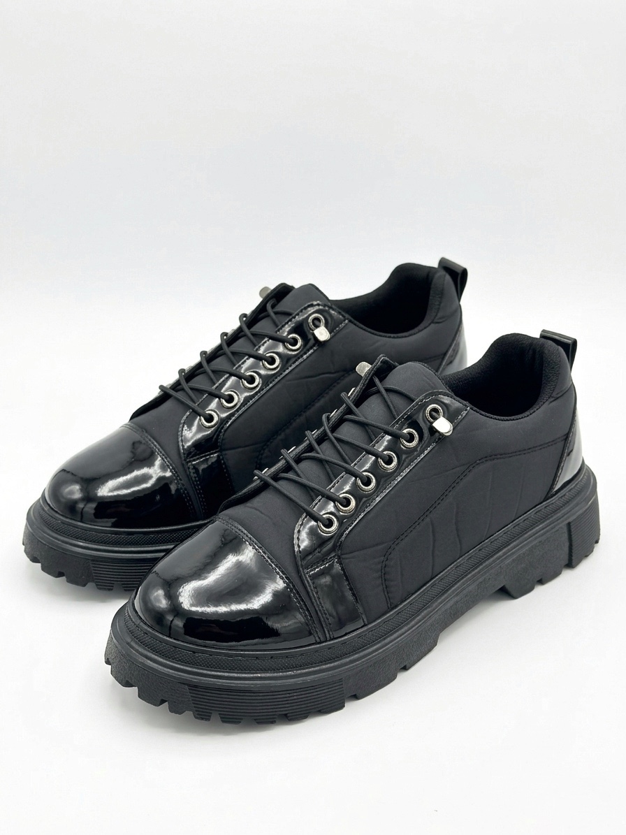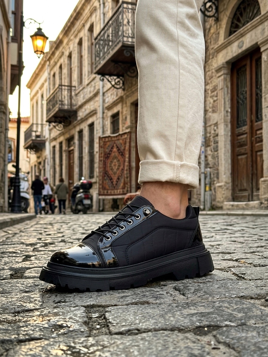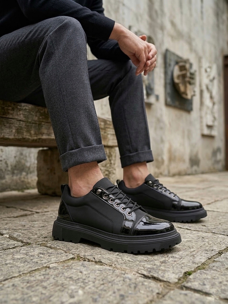 • Tugerdi Siyah Rugan Paraşüt Detayl Akıllı Lastik Bağcık Yüksek Taban Tarz Erkek Ayakkabı TGE230395