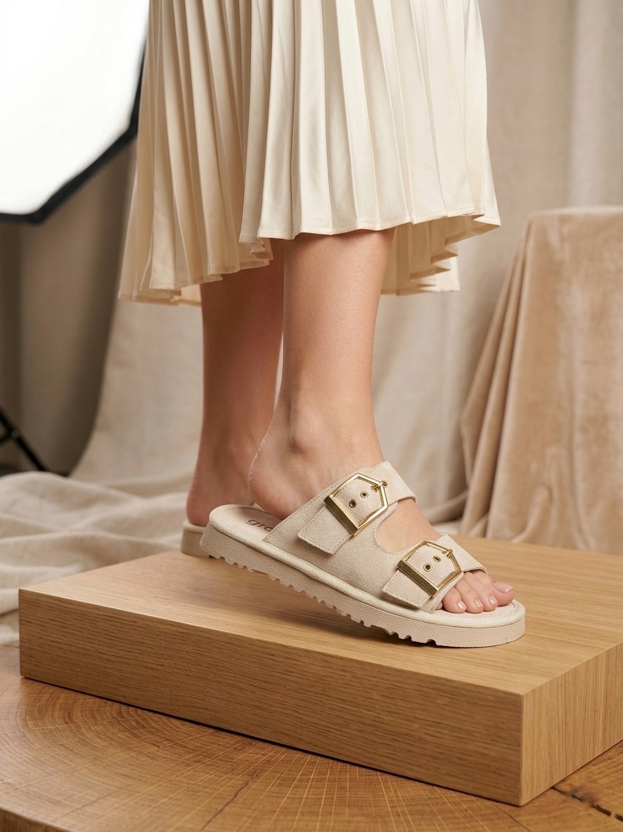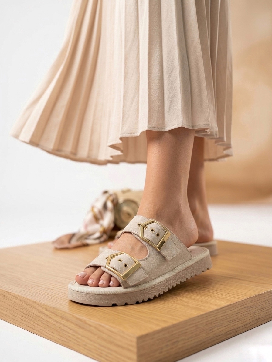 • Yazlık Kadın Bej İnce Taban Tokalı Terlik