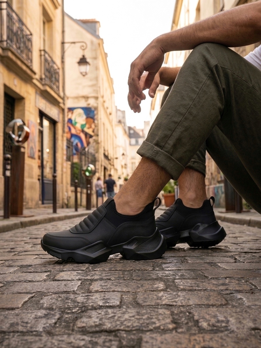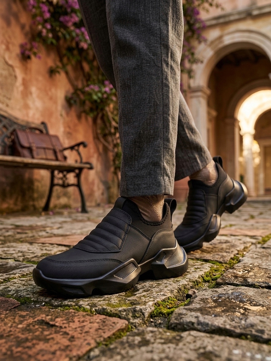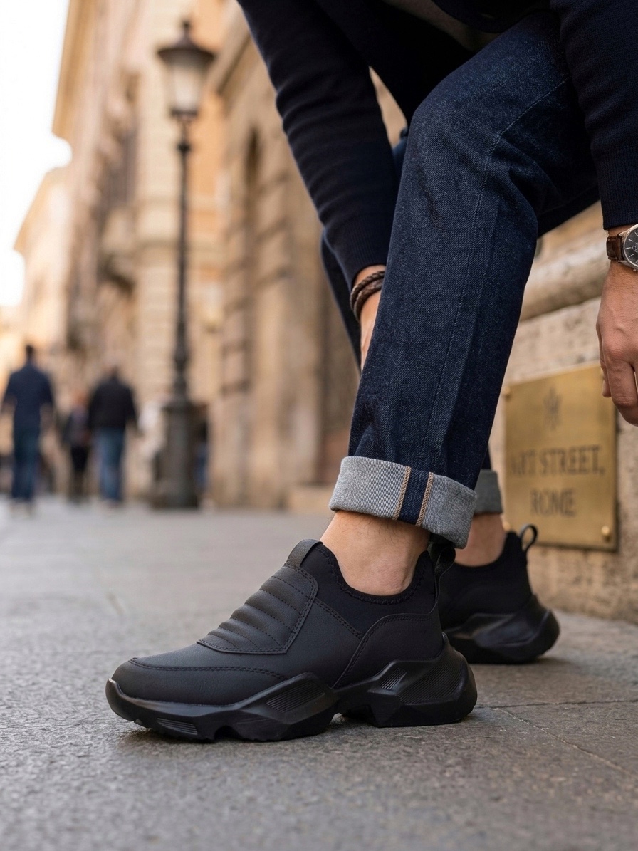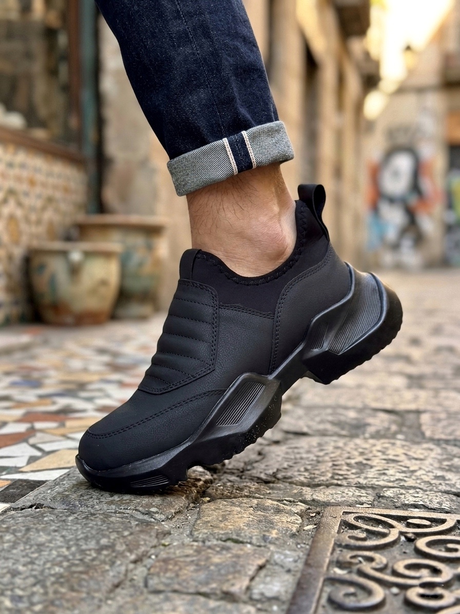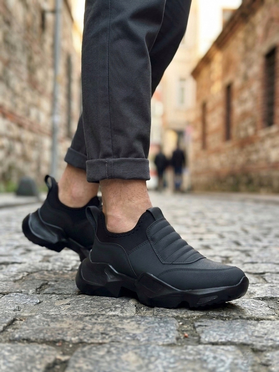 Tugerdi Siyah Bağcıksız Rahat Hafif Yüksek Siyah Taban Tarz Erkek Spor Yarım Bilek Bot TGE230552