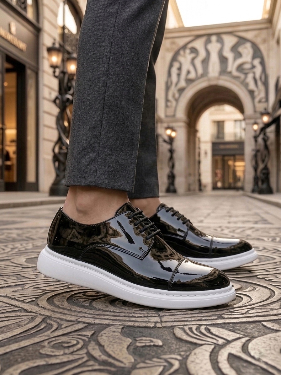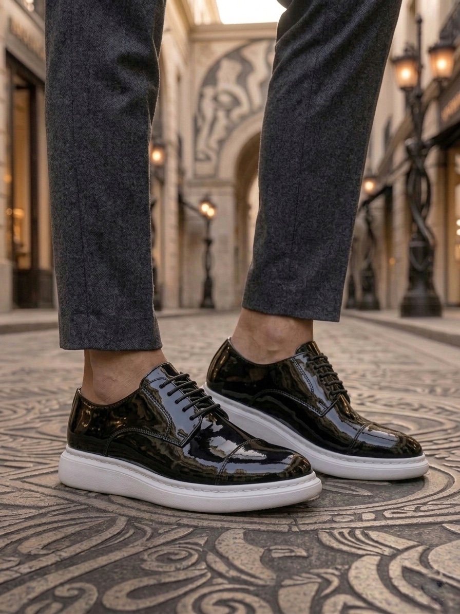 • Tugerdi Siyah Rugan Kapaklı Burun Bağcıklı Hafif Taban Oxford Erkek Ayakkabı TGE230153