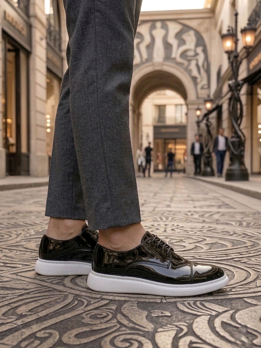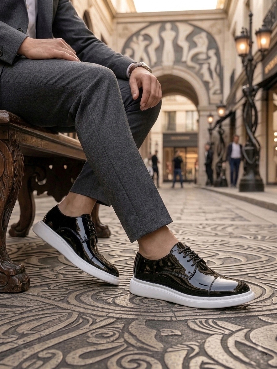 Tugerdi Siyah Rugan Kapaklı Burun Bağcıklı Hafif Taban Oxford Erkek Ayakkabı TGE230153