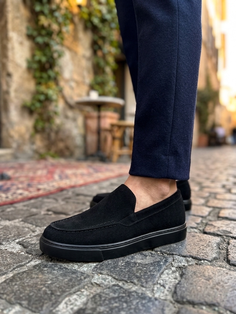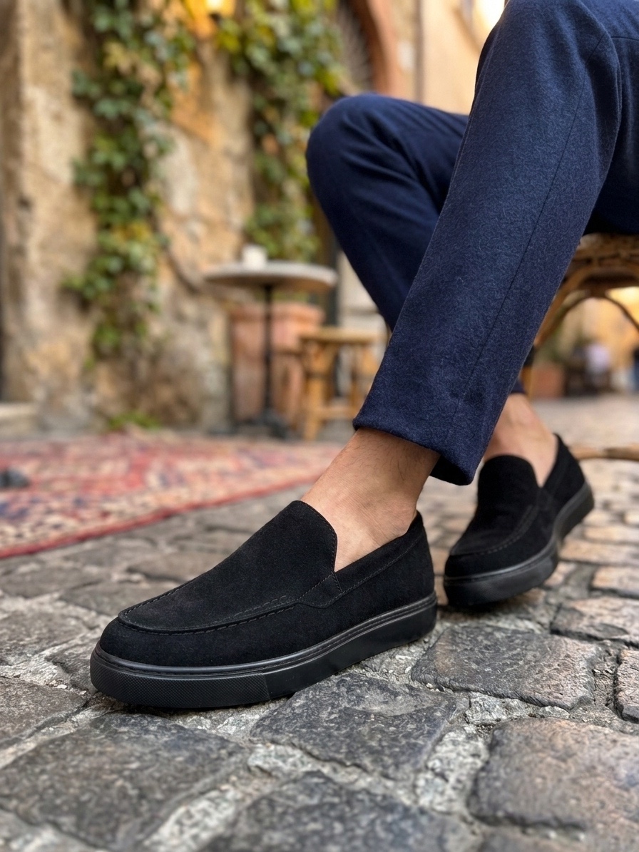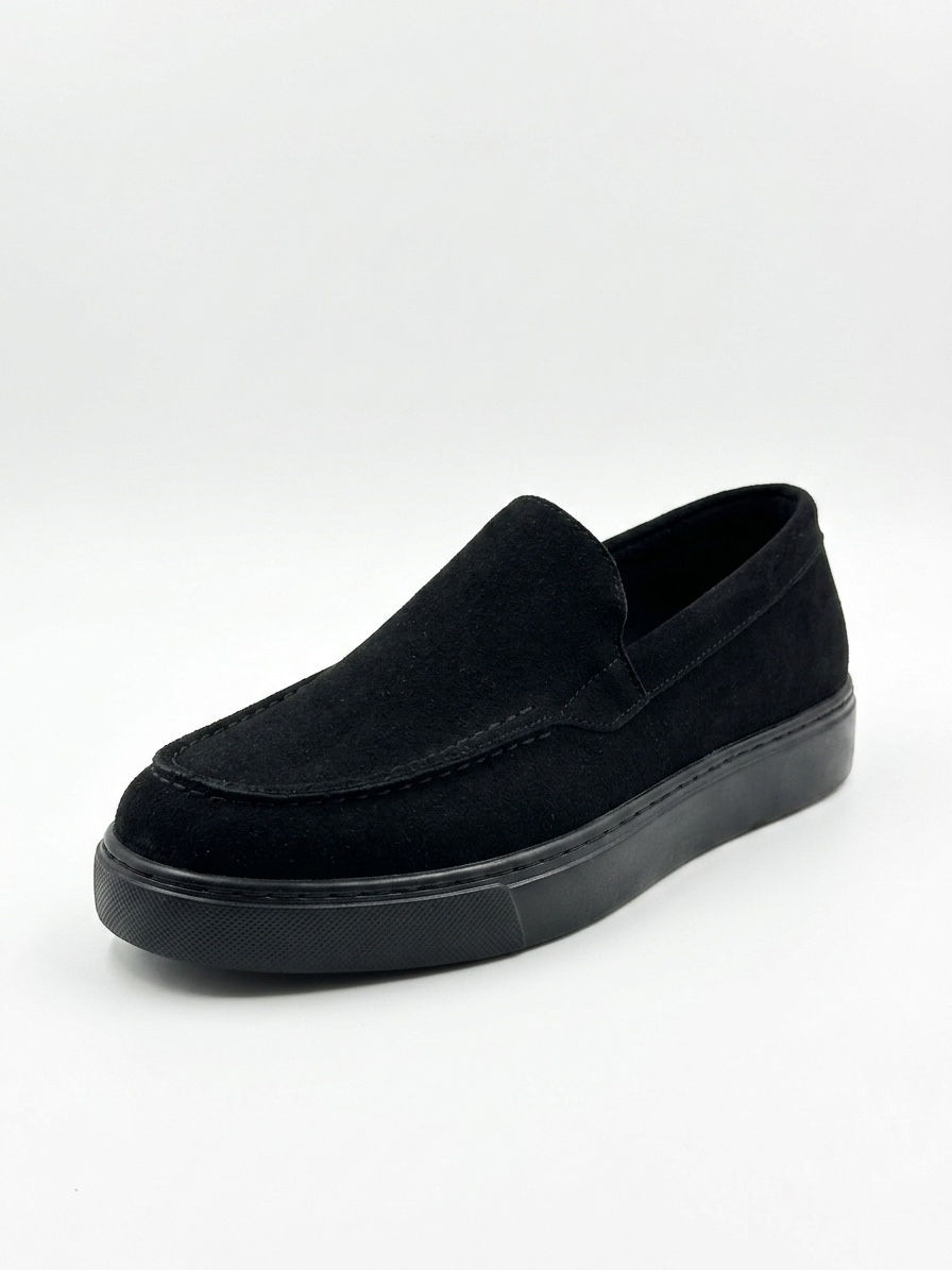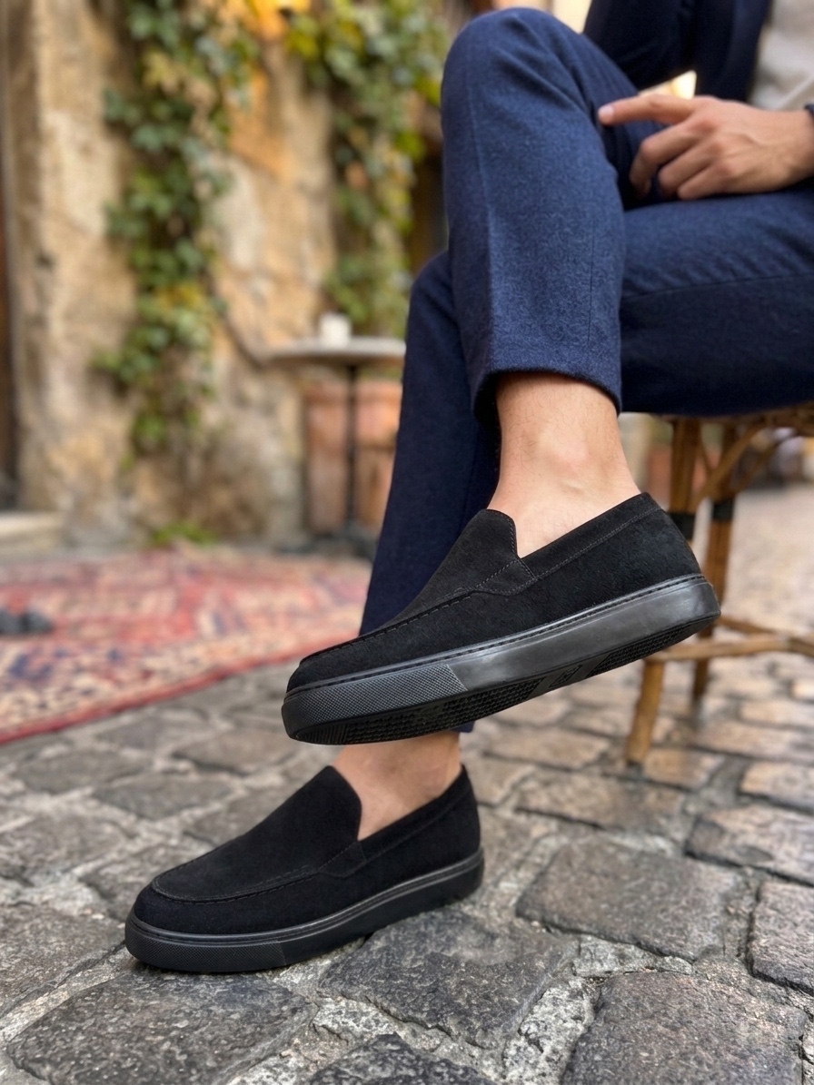 • Tugerdi Siyah Süet Bağcıksız Yüksek Hafif Taban Tarz Erkek Ayakkabı TGE230391